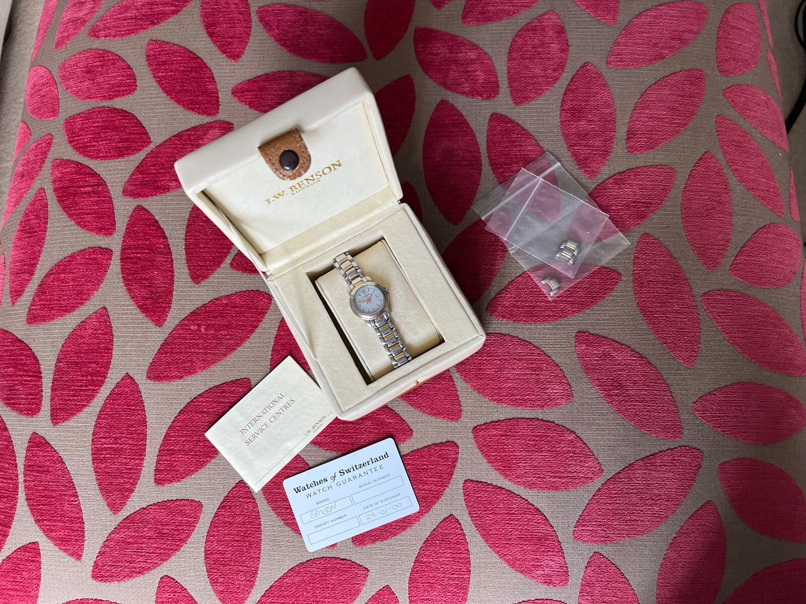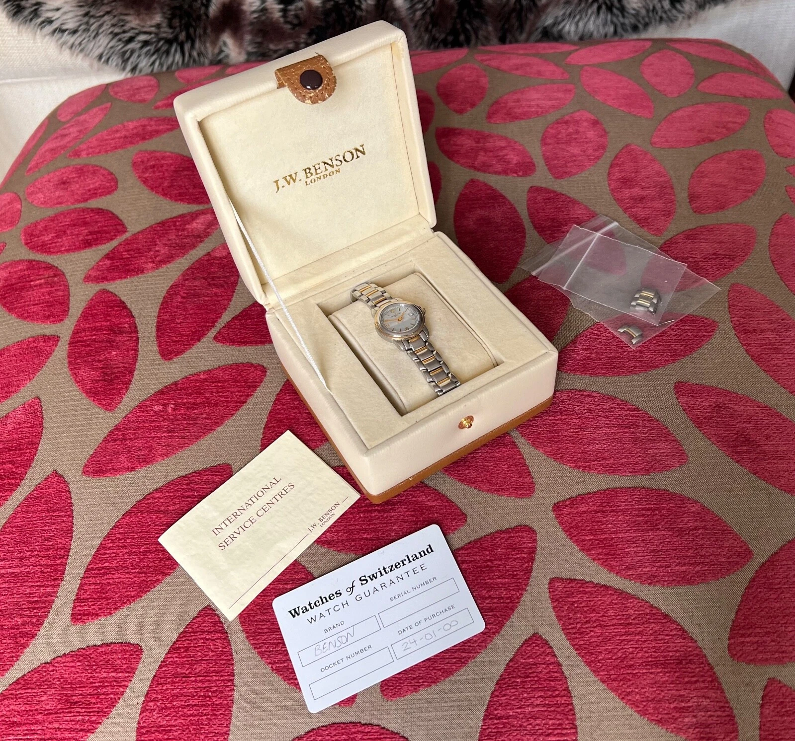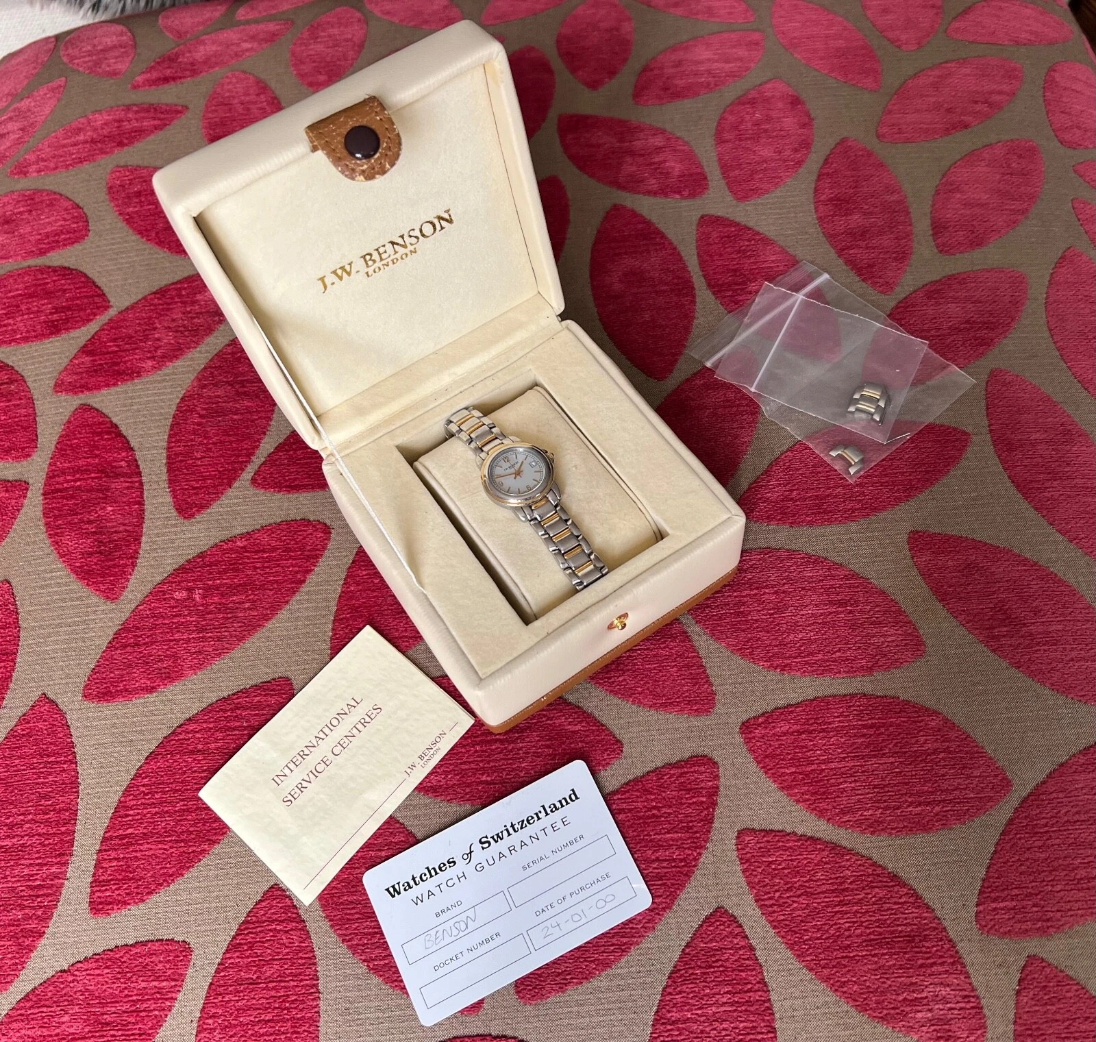 JW Benson Swiss ladies stainless steel vintage watch, original box & guarantee