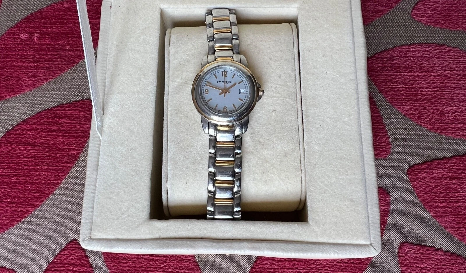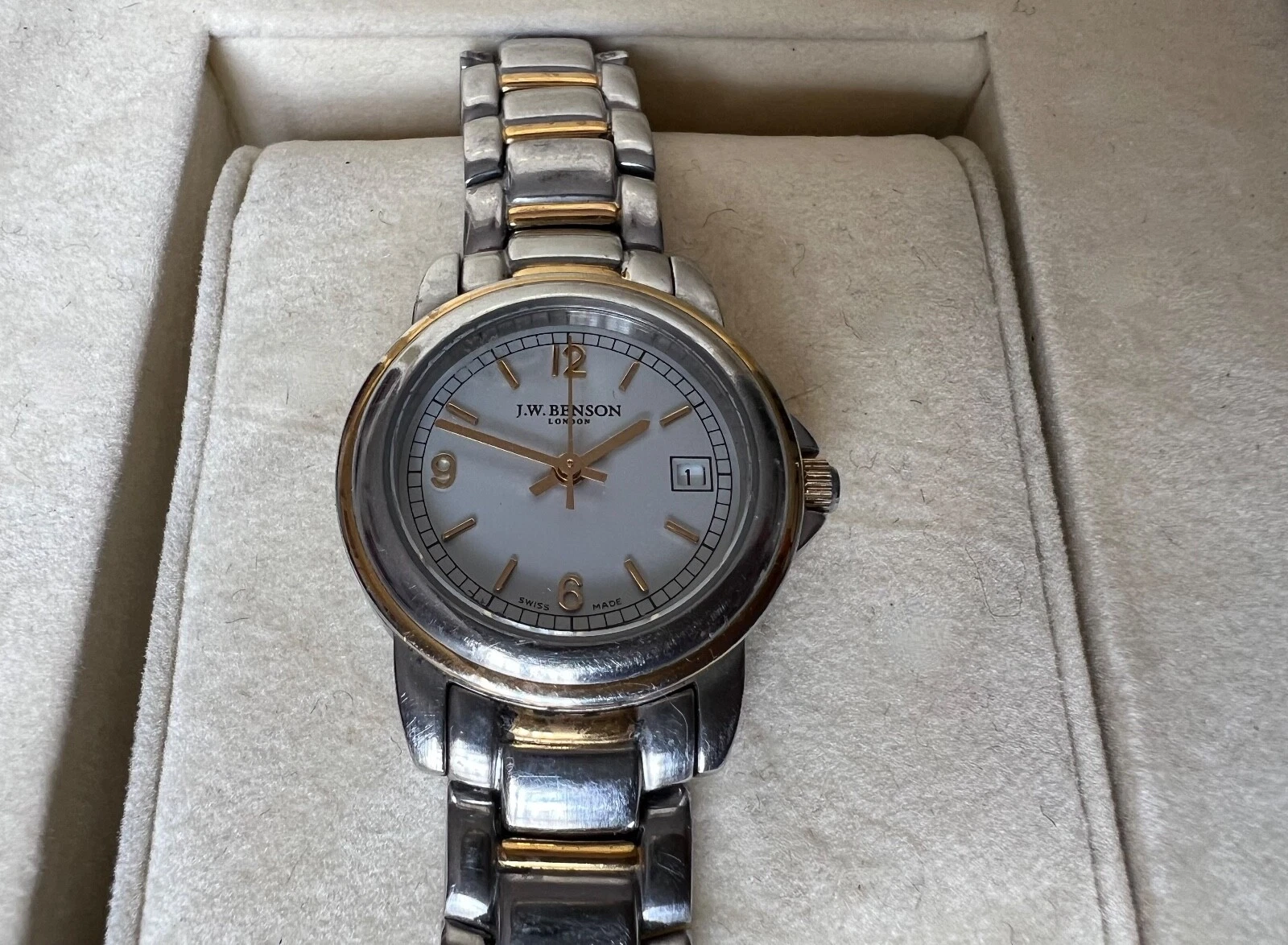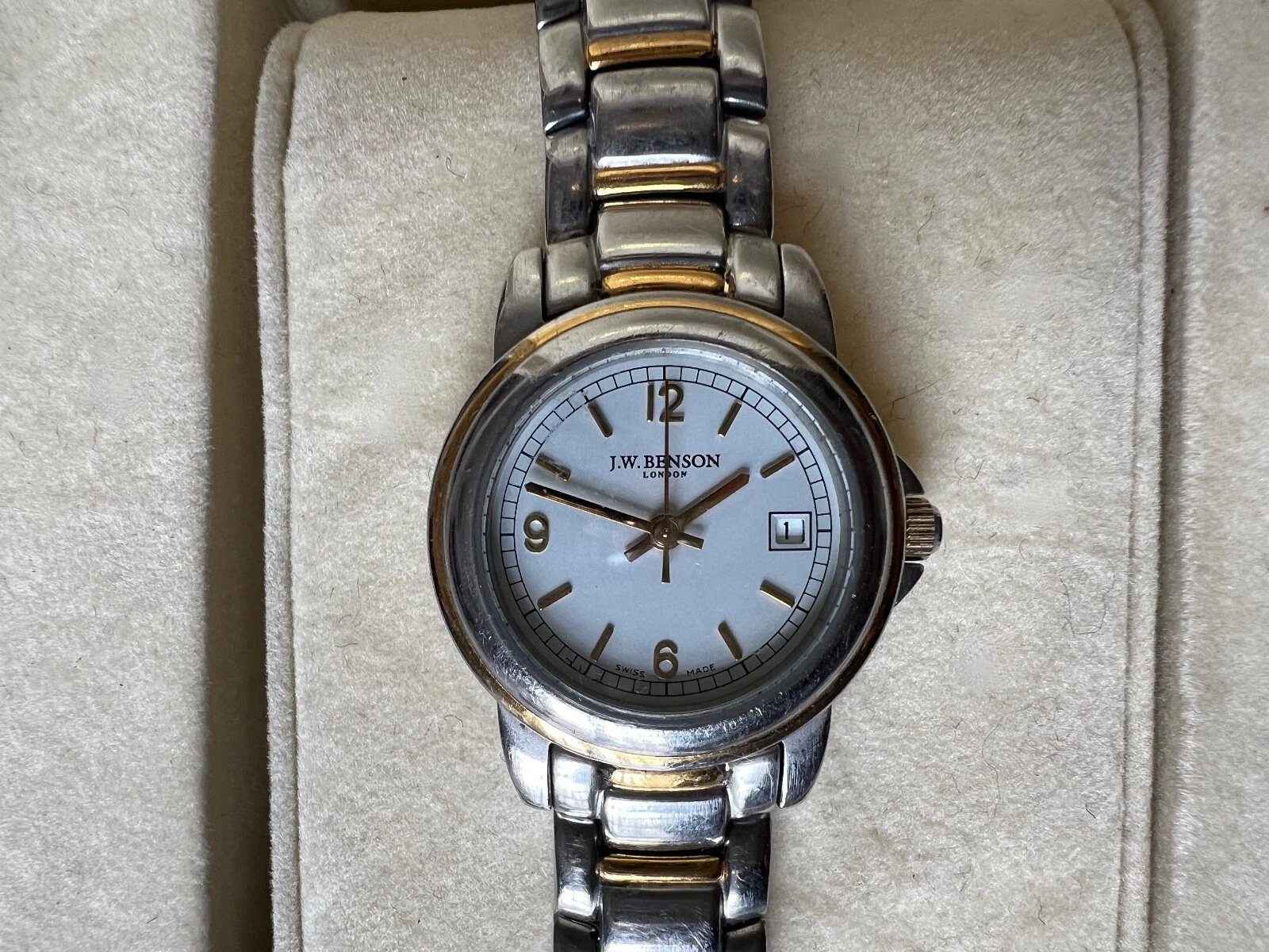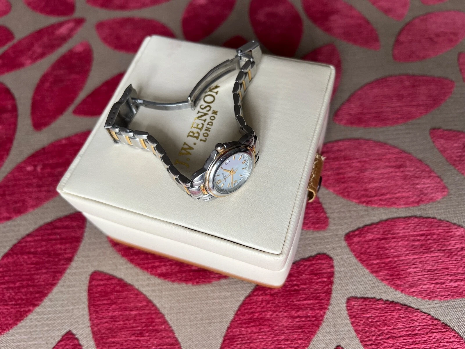 JW Benson Swiss ladies stainless steel vintage watch, original box & guarantee