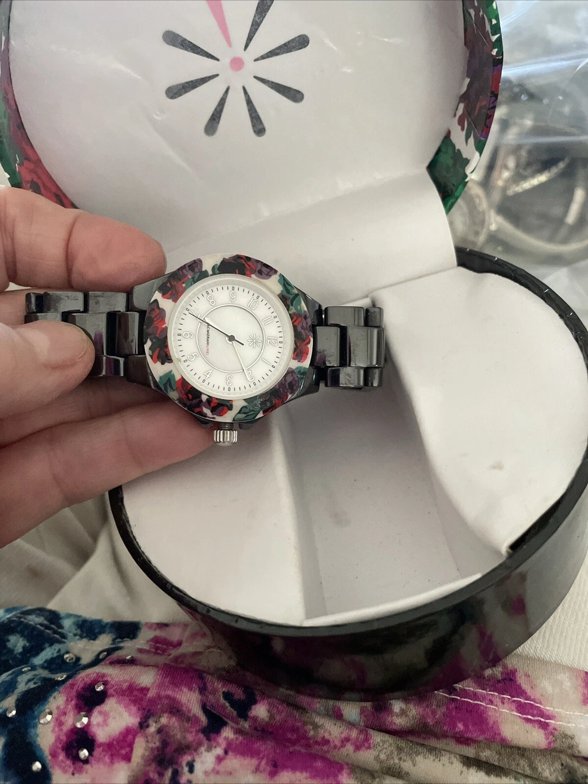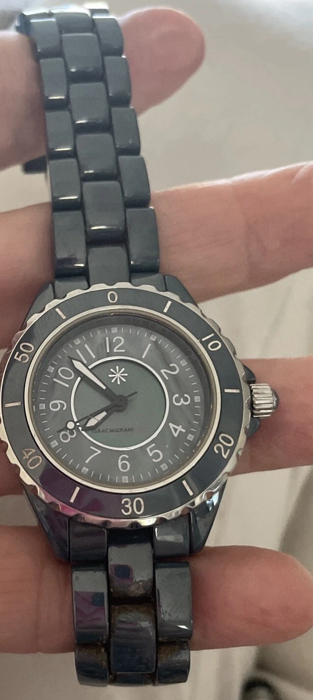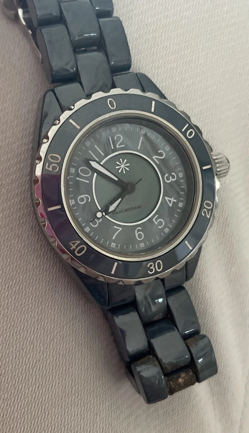 2 Isaac Mizrahi Ceramic Quartz Analog Women's Watch Est Sale Need Battery As Is