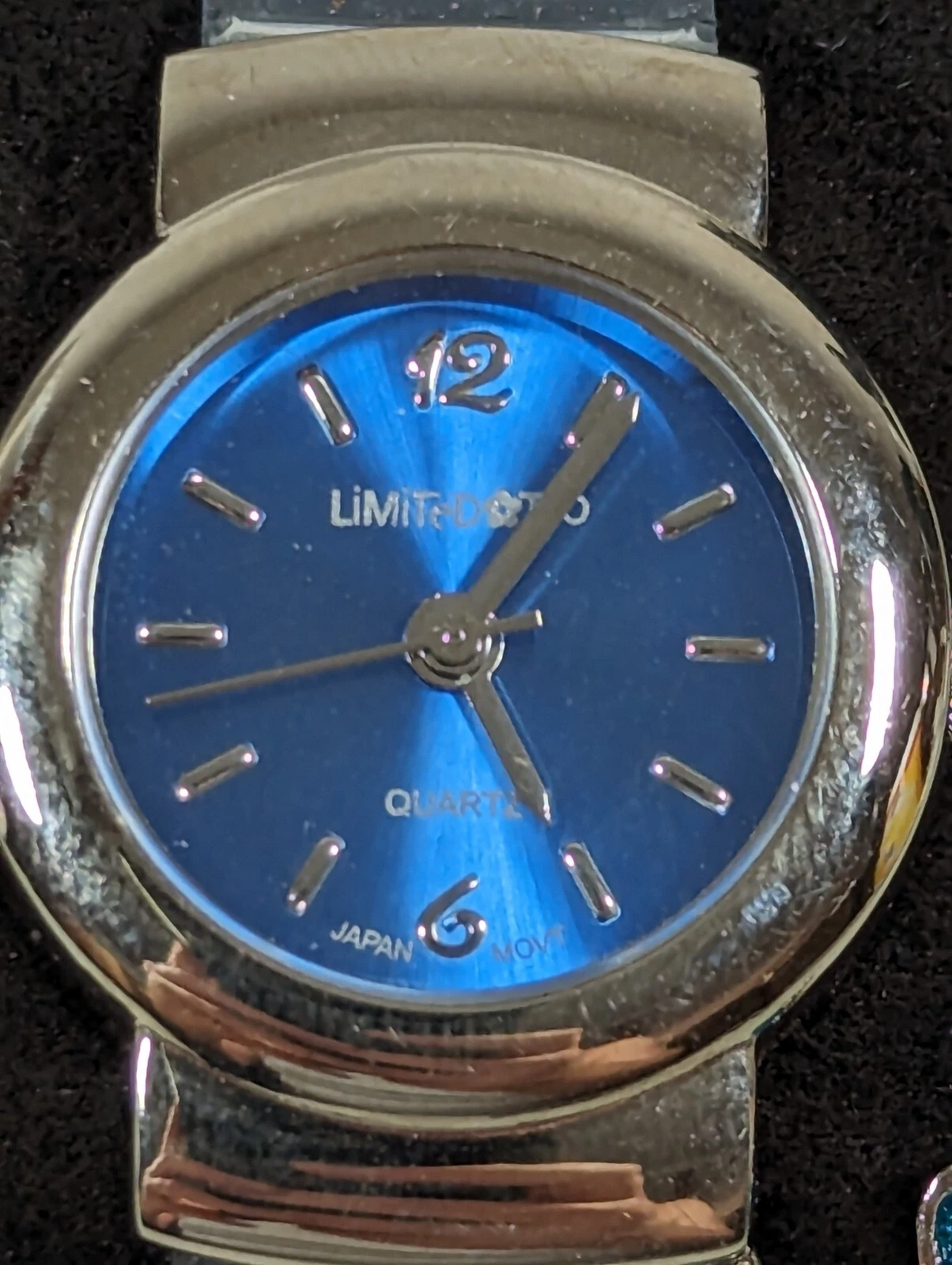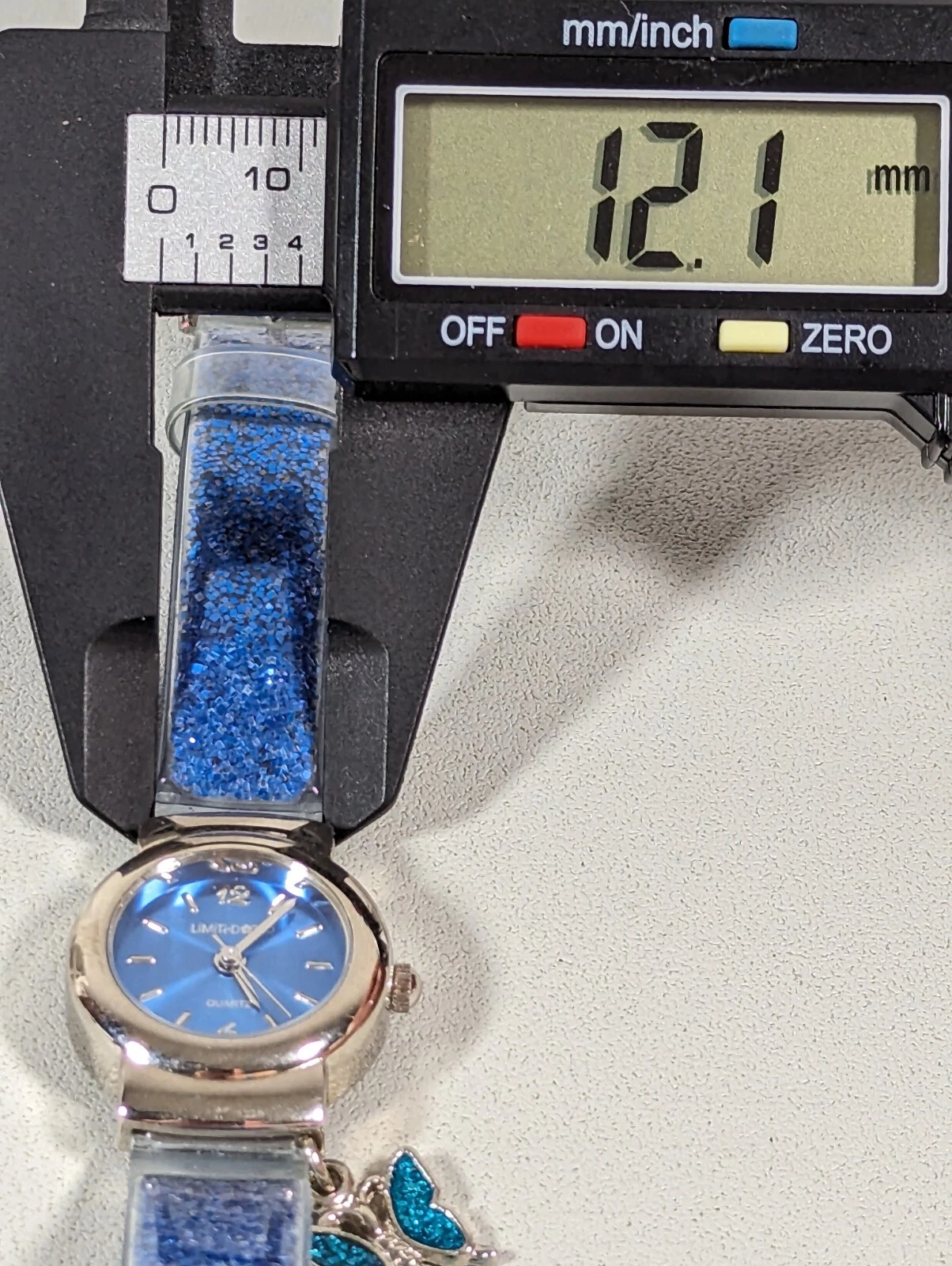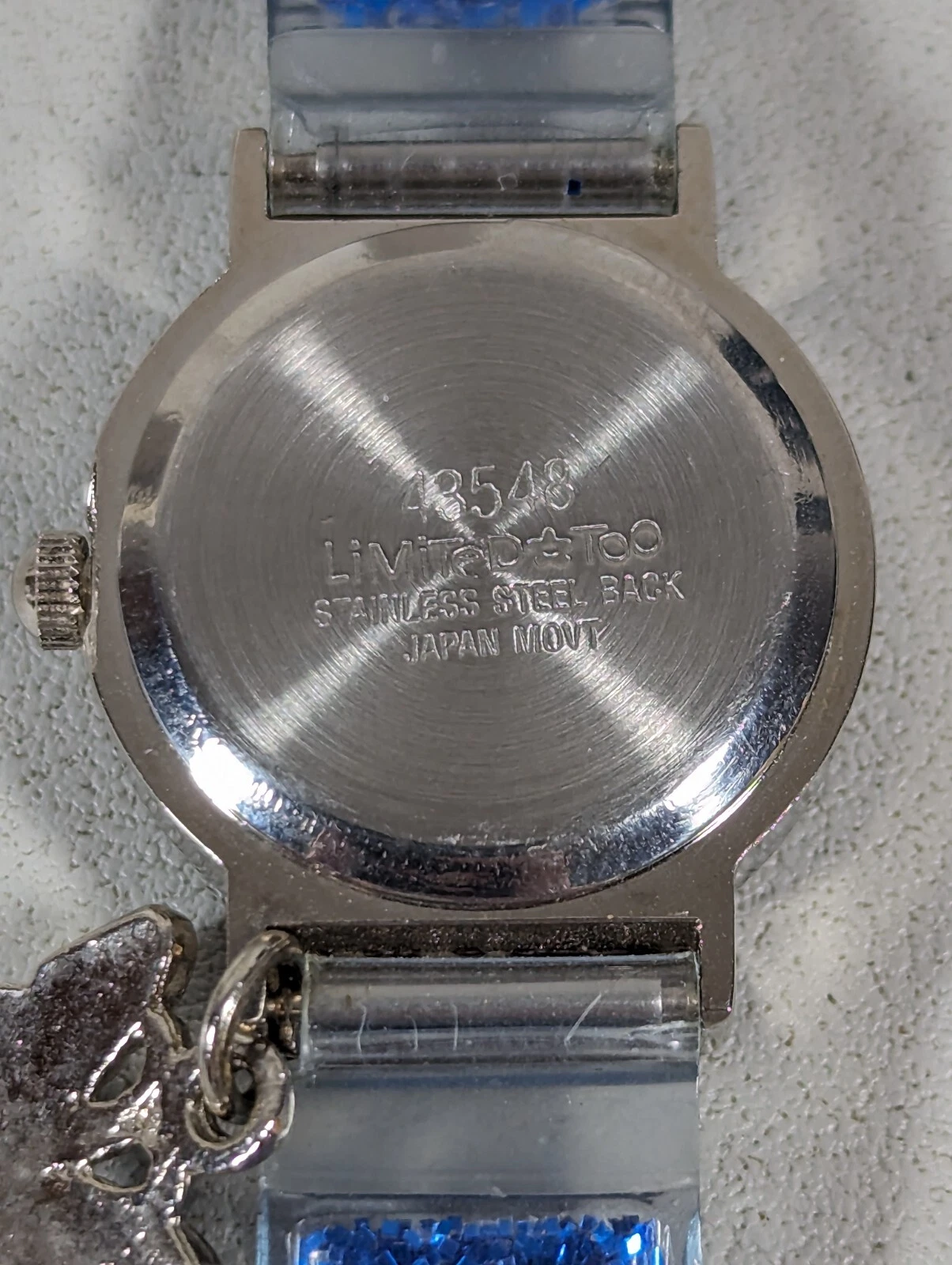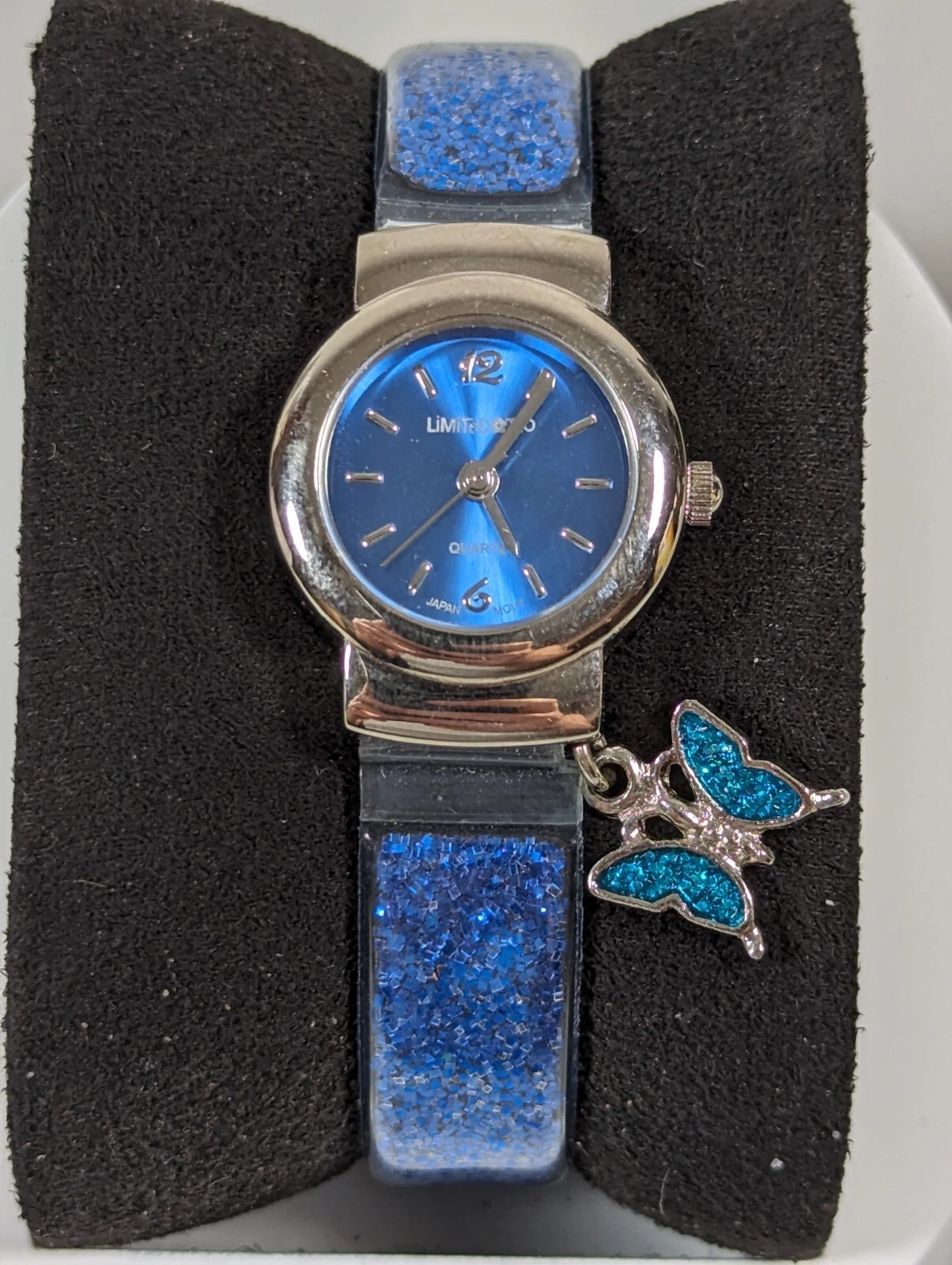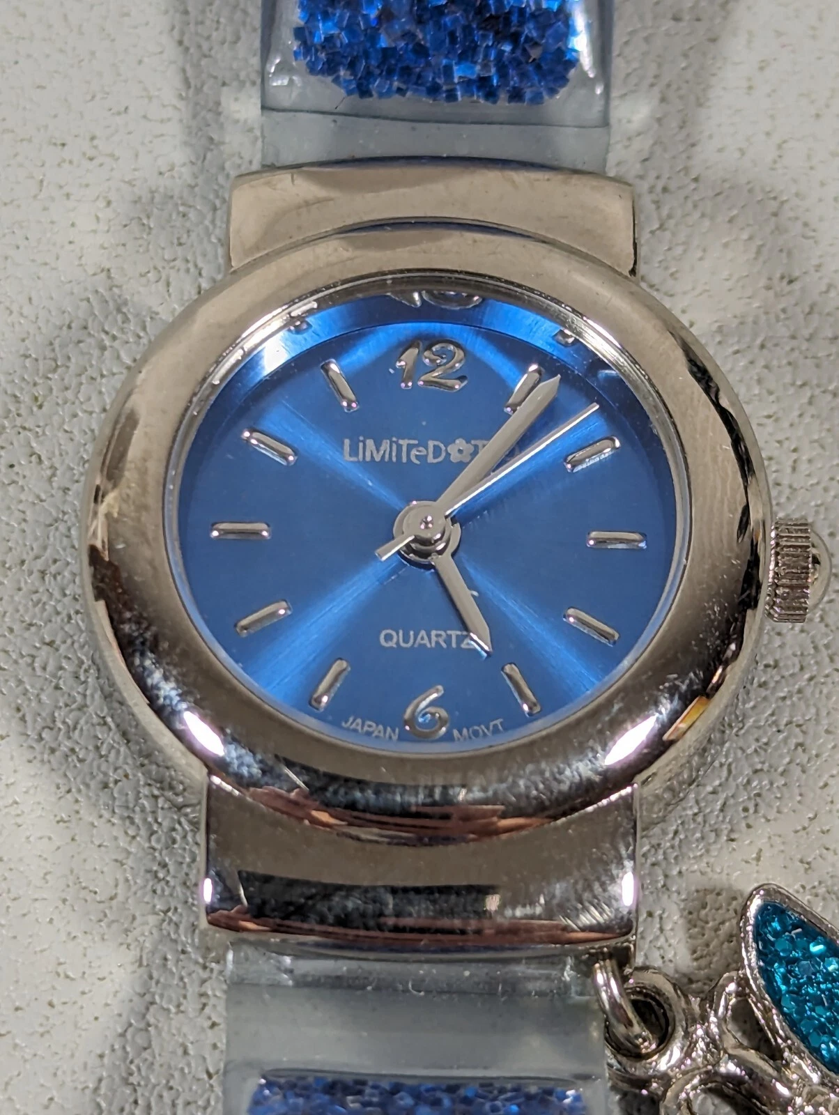 Limited Too Blue Dial Round Silver Tone Case Butterfly Charm Blue Band Watch