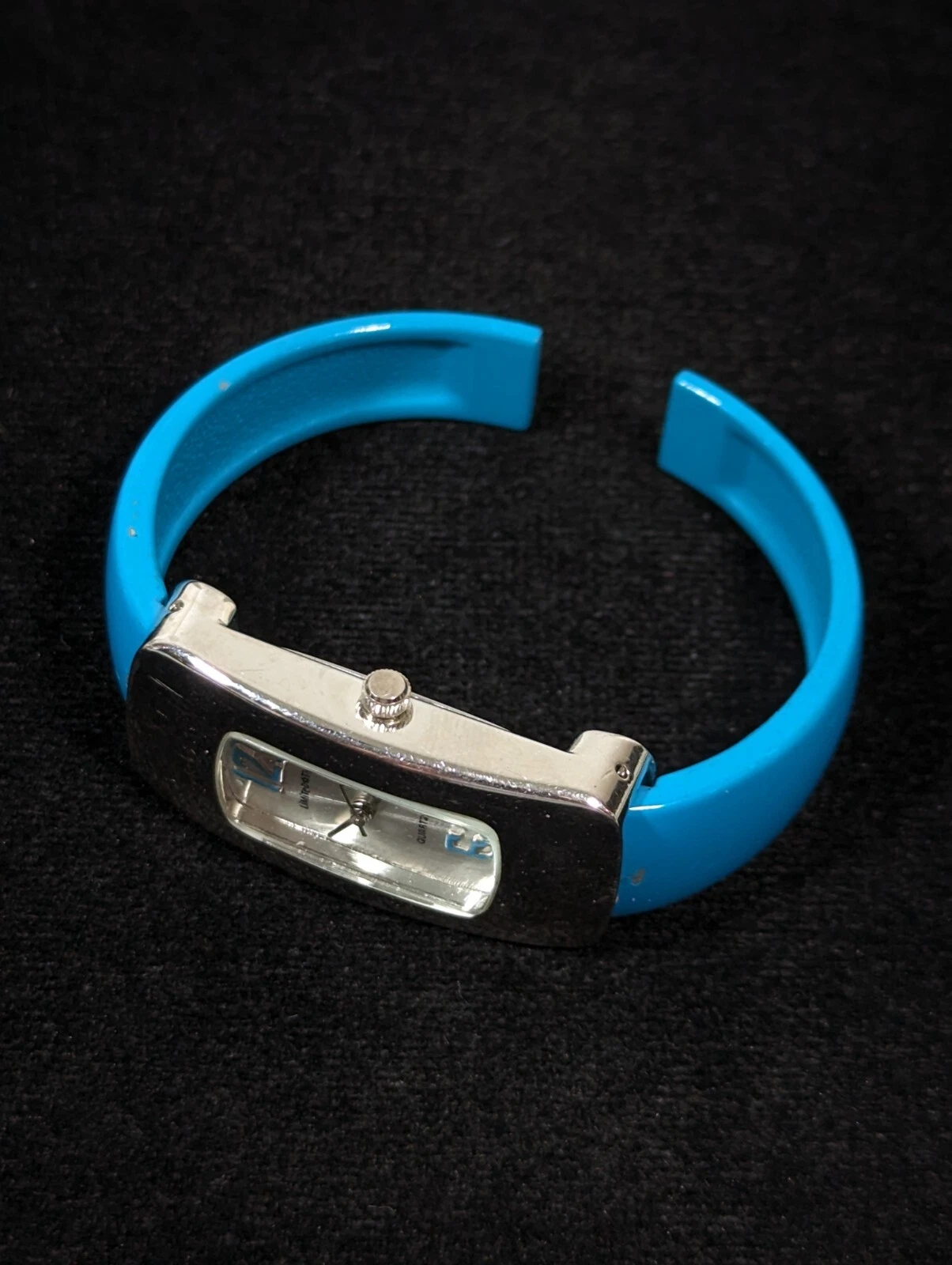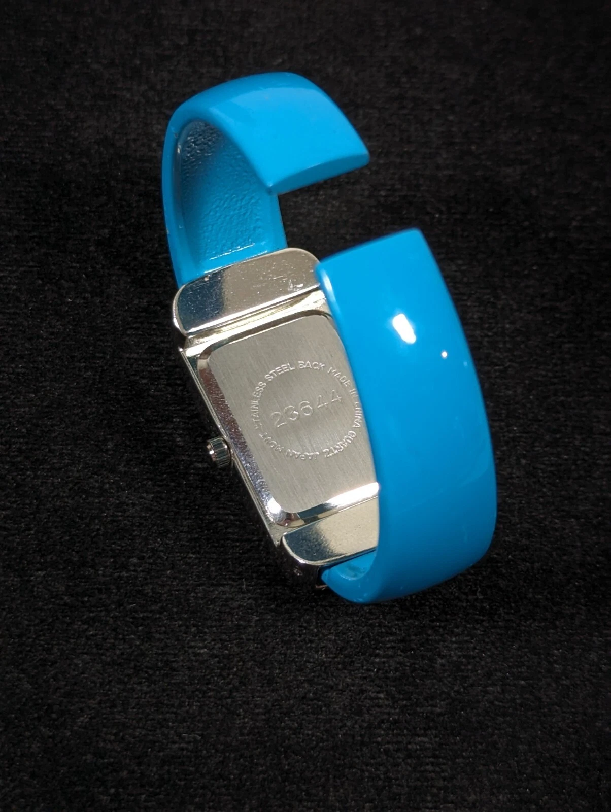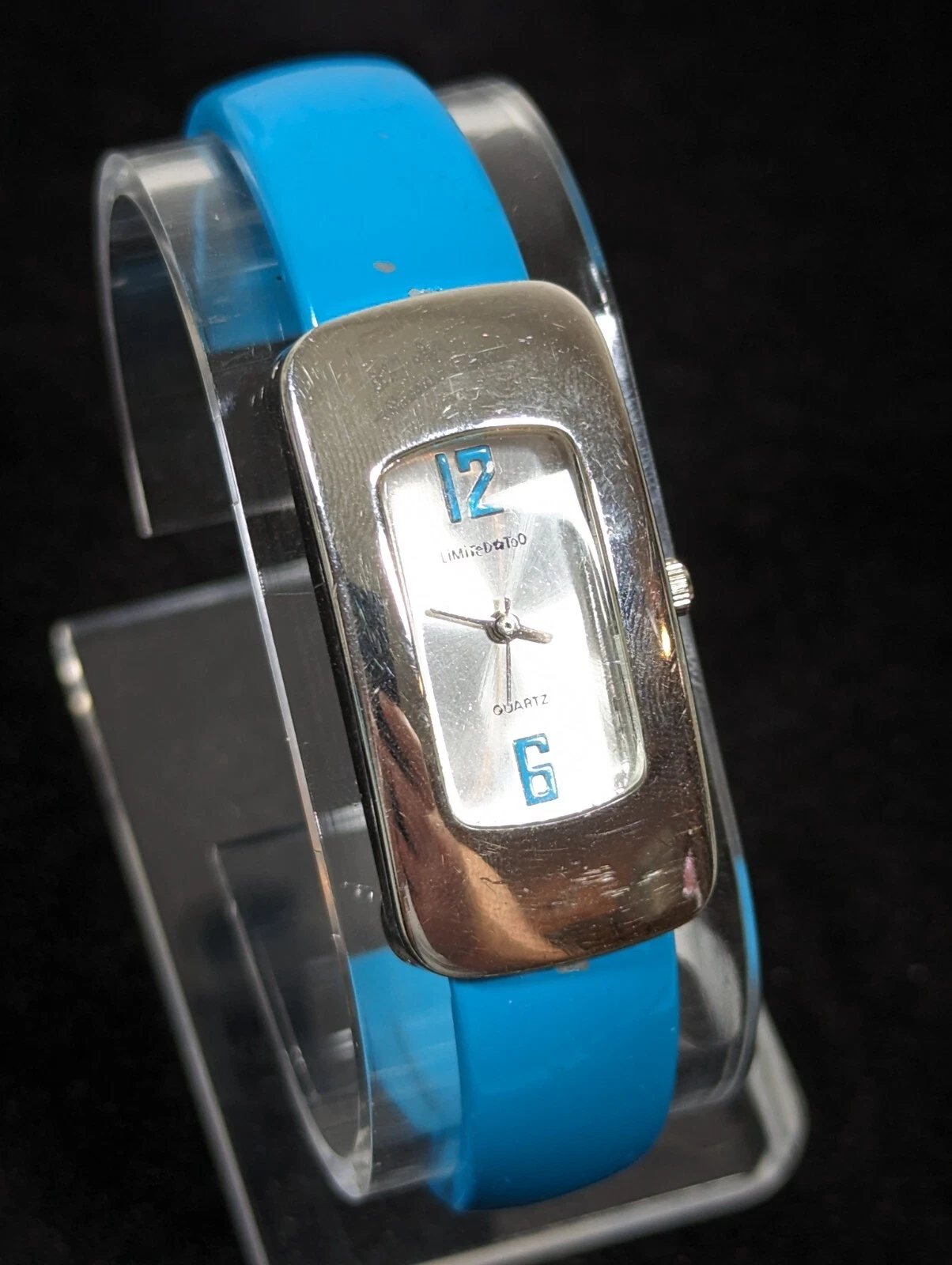 Limited Too Silver Tone Dial Rectangle Case Blue Hinge Open Cuff Watch Girls 6in