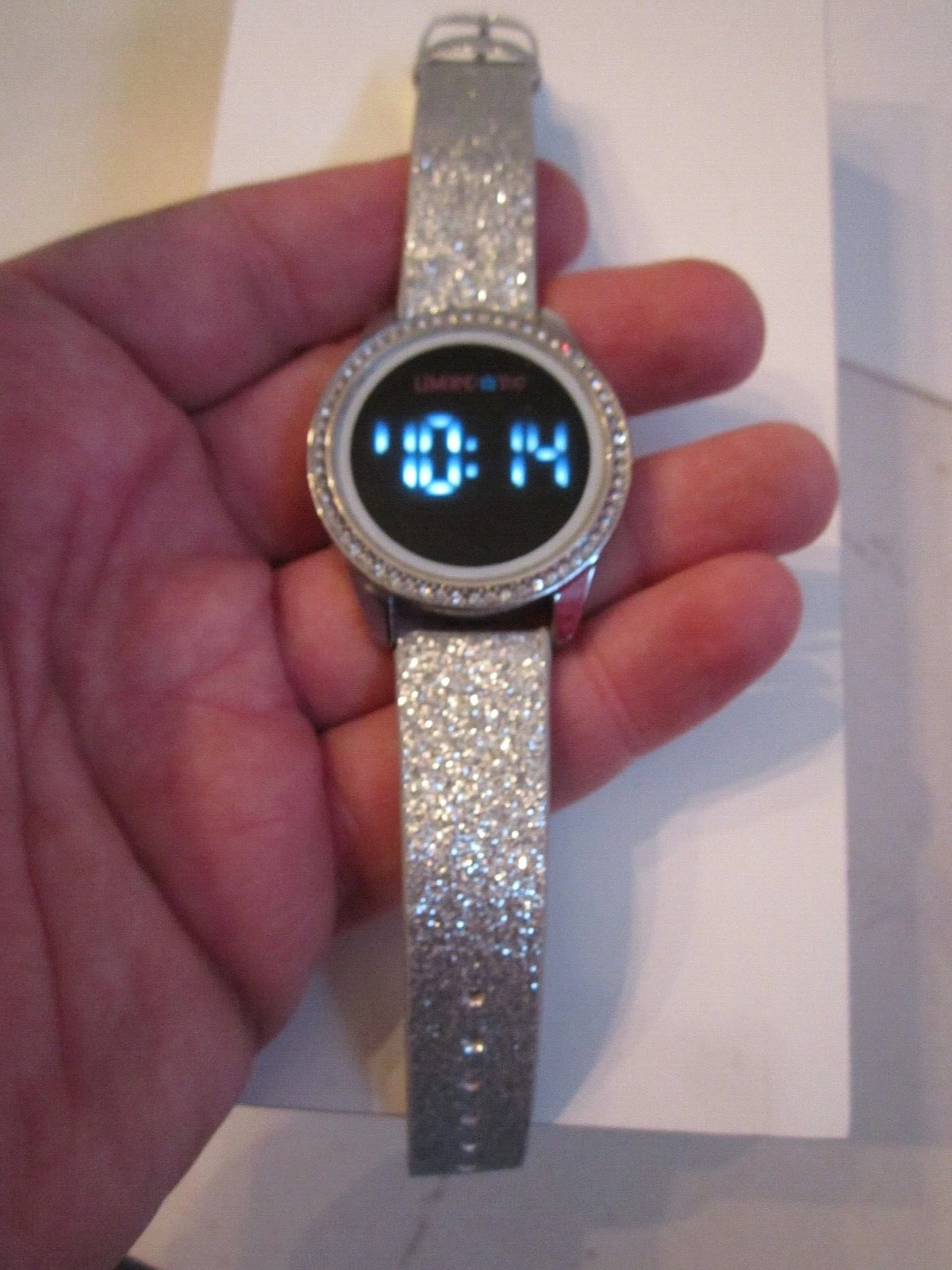 LIMITED TOO WATCH - SPARKLING SILVER GLITTER BAND - NUMBERS LIGHT UP -BBA-10