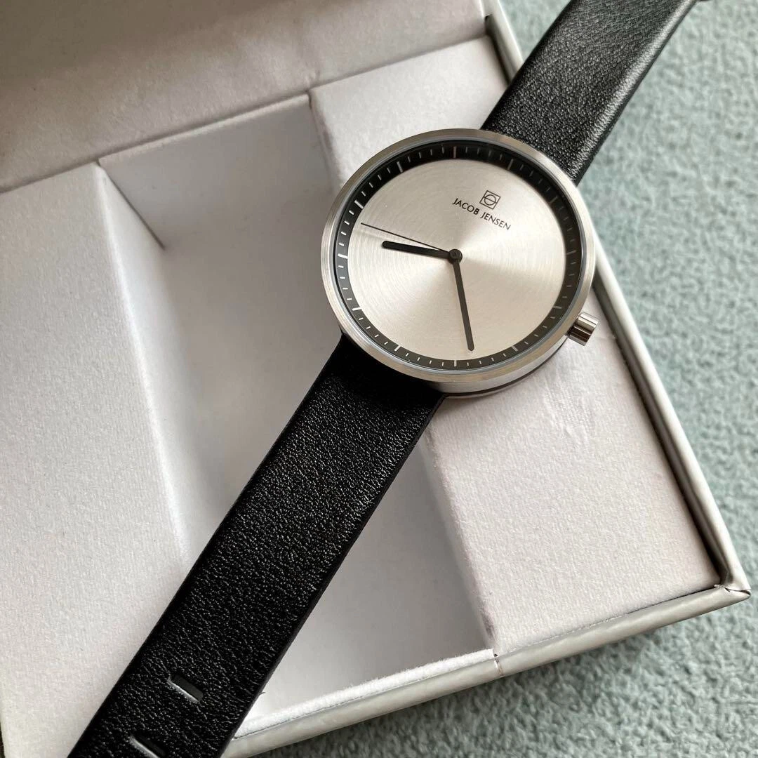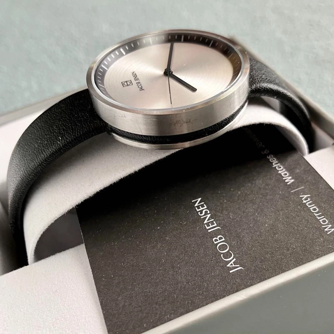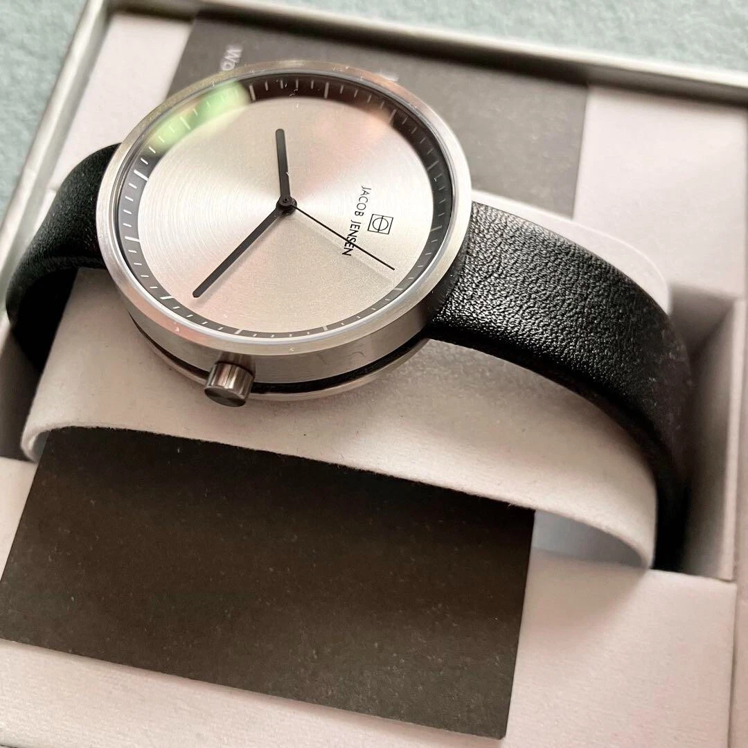 Jacob Jensen Design Analogue Watch Black Leather Strap 280 Silver Color Used
