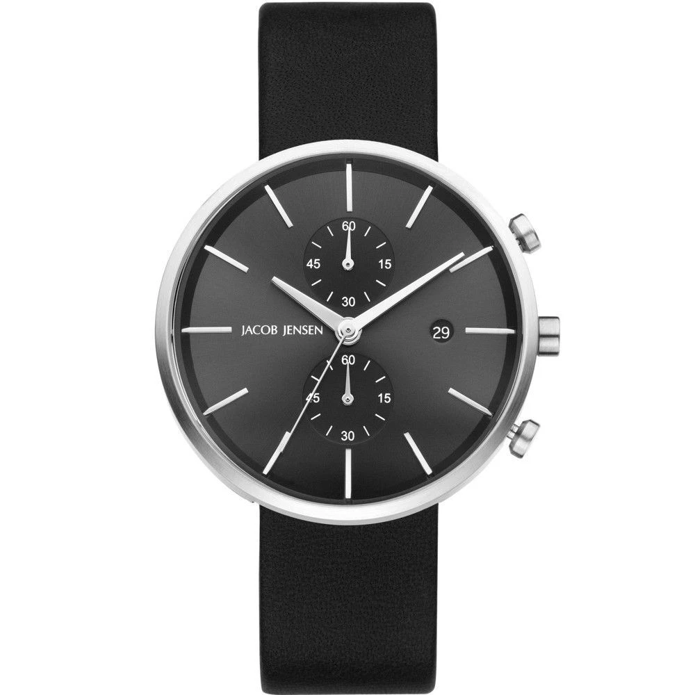 Jacob Jensen 615 Black Leather Chronograph Watch Jj615