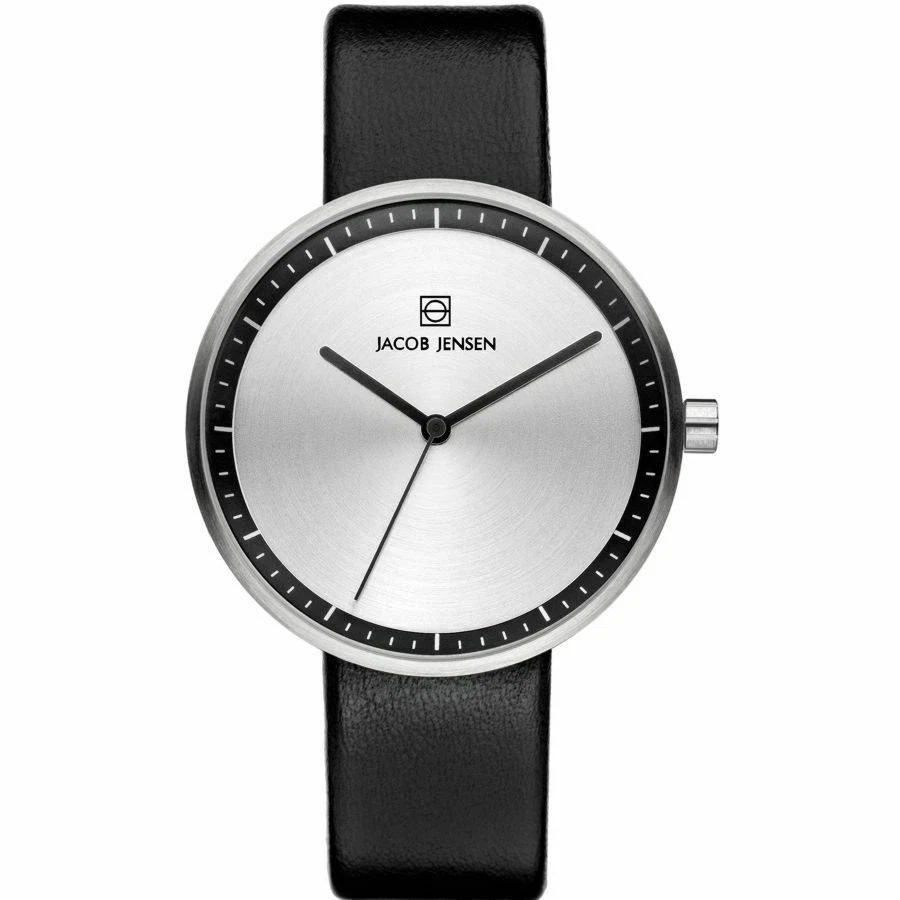 Jacob Jensen 280 Strata Ladies Black Leather Strap Watch w Box. NWT