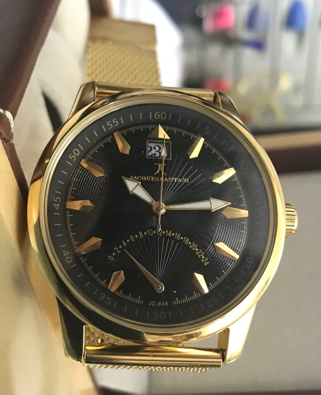 Jacques Cantani JC-945 Men's Watch Big Date GMT Hand Stainless Steel Gold Plated