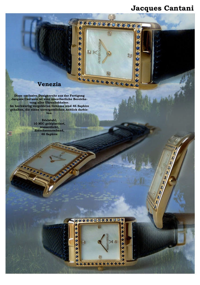 Jacques Cantani Venezia 46 Sapphire &4 Diamonds 10 Micron Gold Plated
