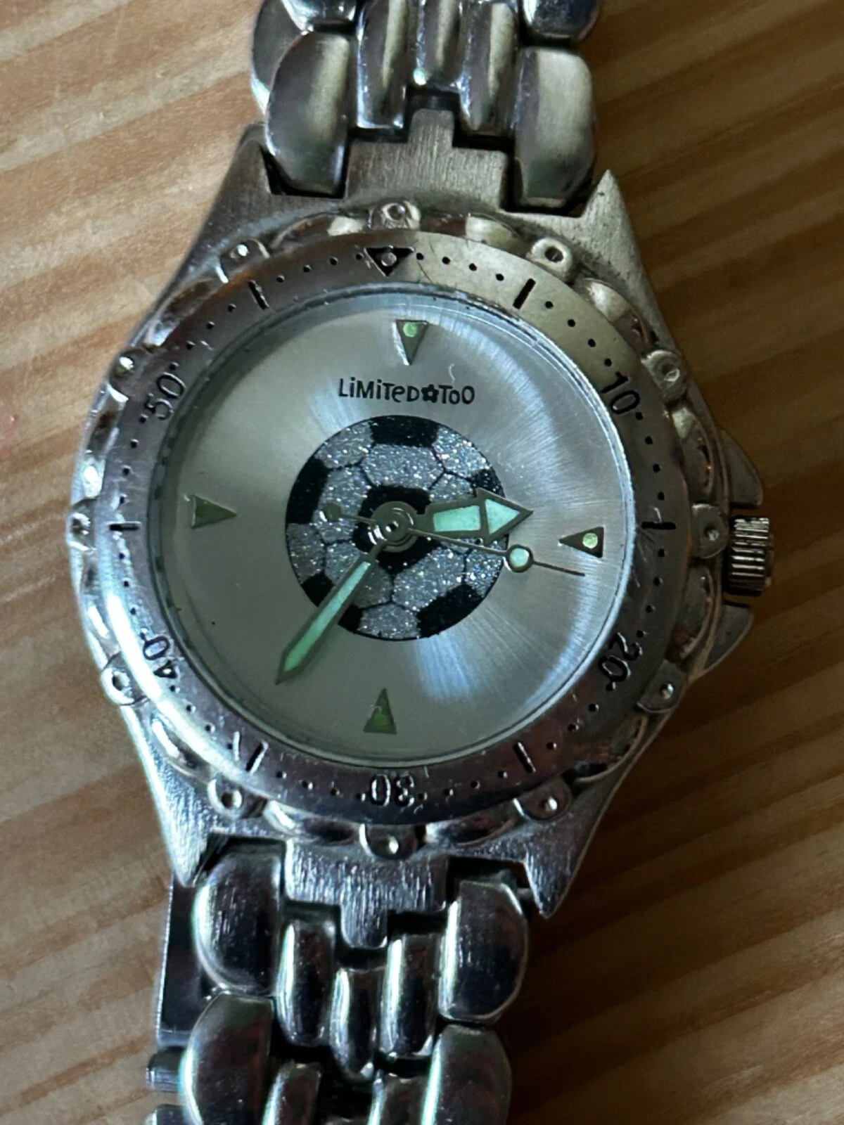 Girl’s Stainless Steel Limited Too Soccer Watch ~ Glitter Soccer Ball on Face
