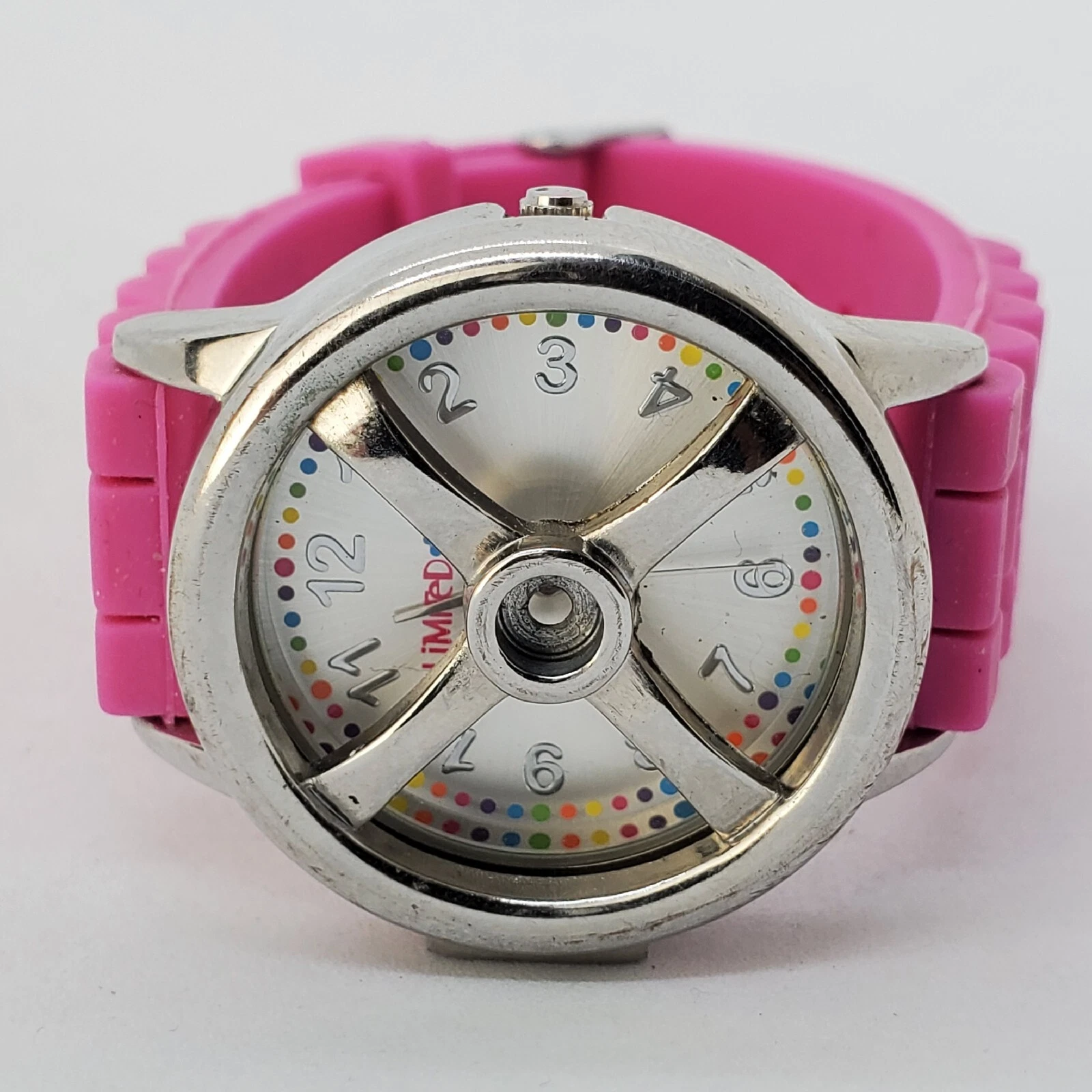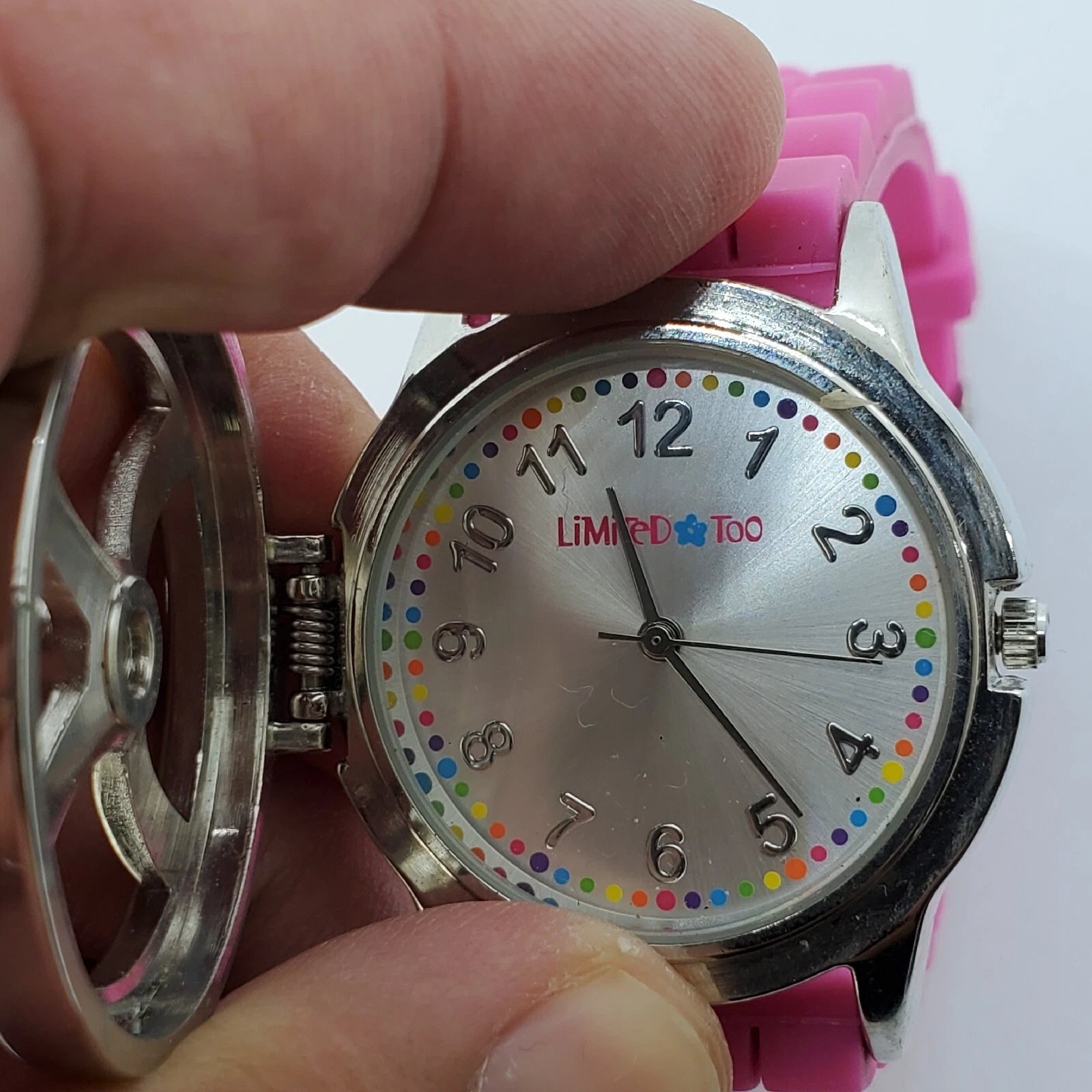Limited Too Girl's Watch 38MM Gray Case Dial Pink Plastic Bands New Battery