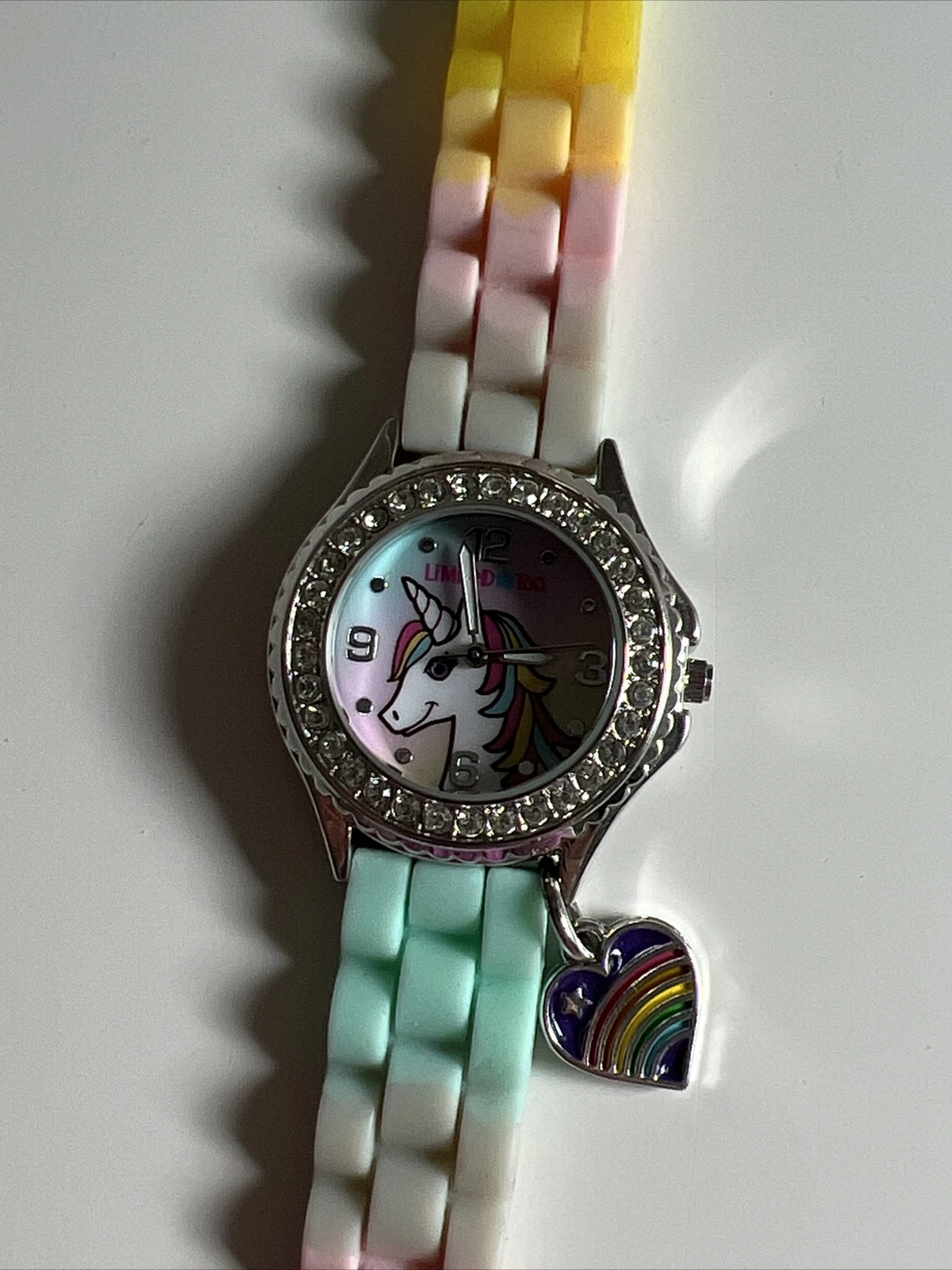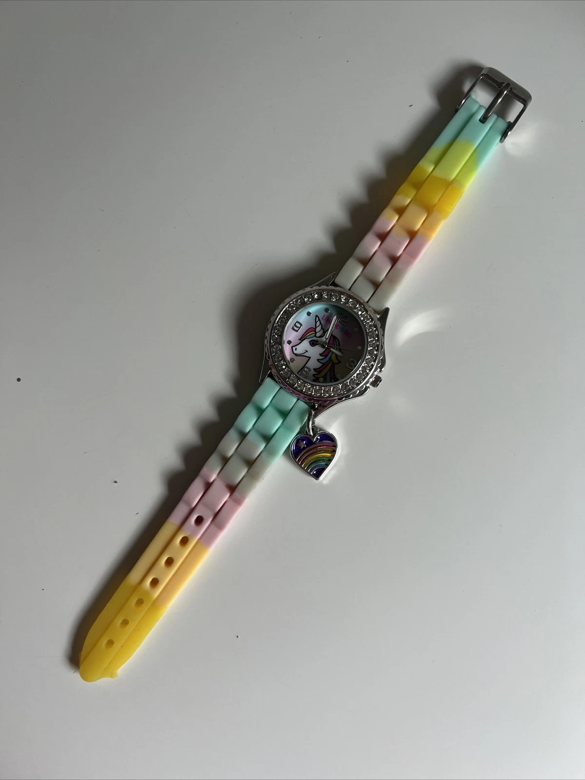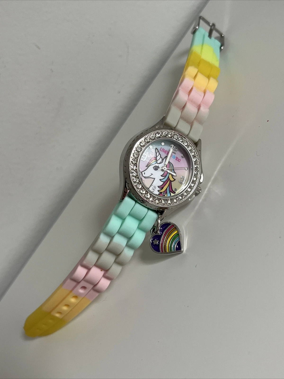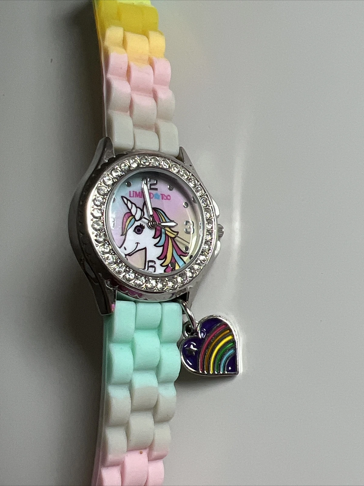 Limited Too Kids Unicorn Watch Works! Rhinestone Heart Charm Working Child Girl