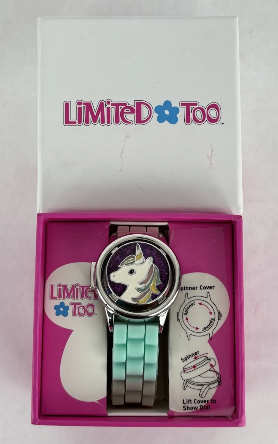 Limited Too Unicorn Spinner 38mm Silver Tone Quartz Watch w/Buckle Band &Battery