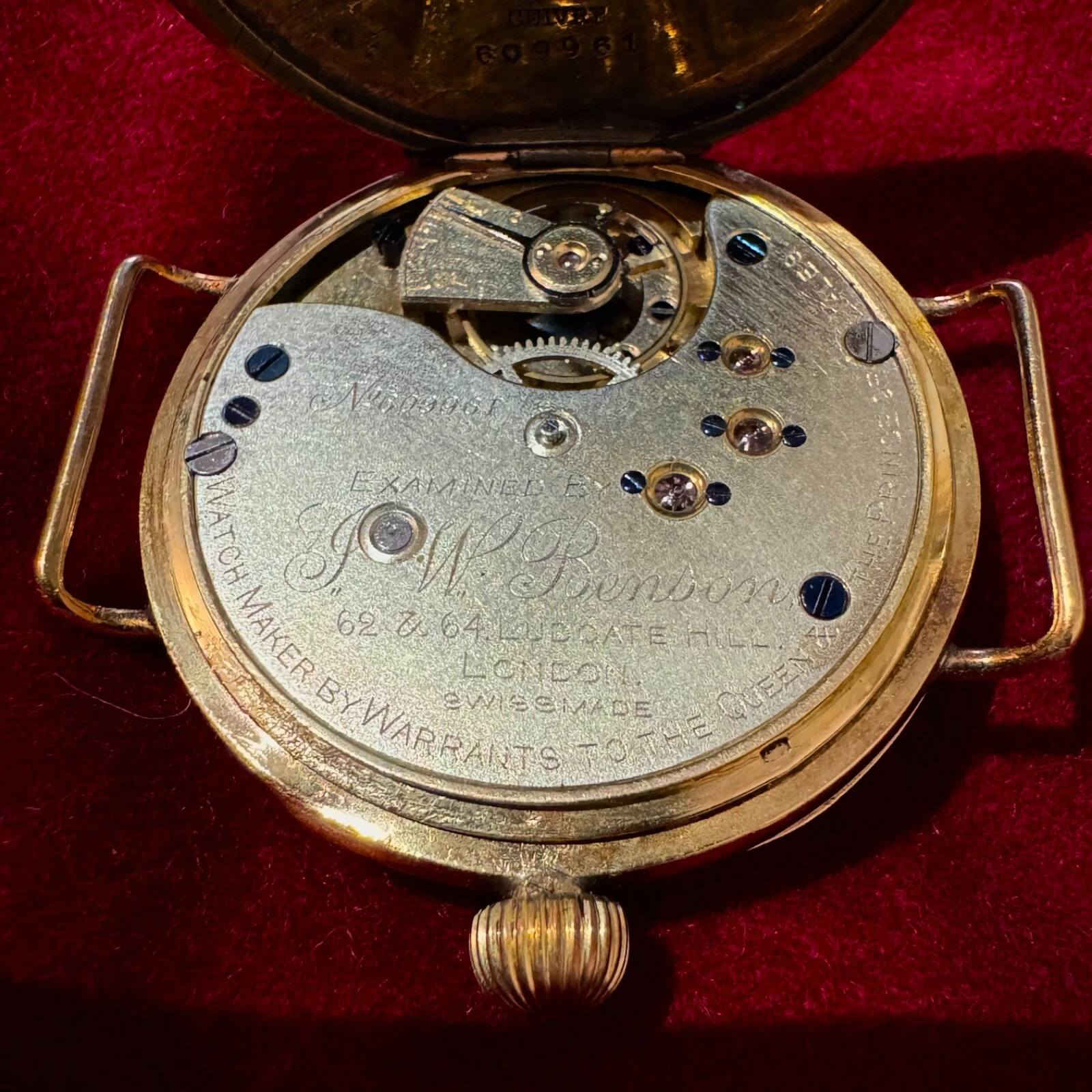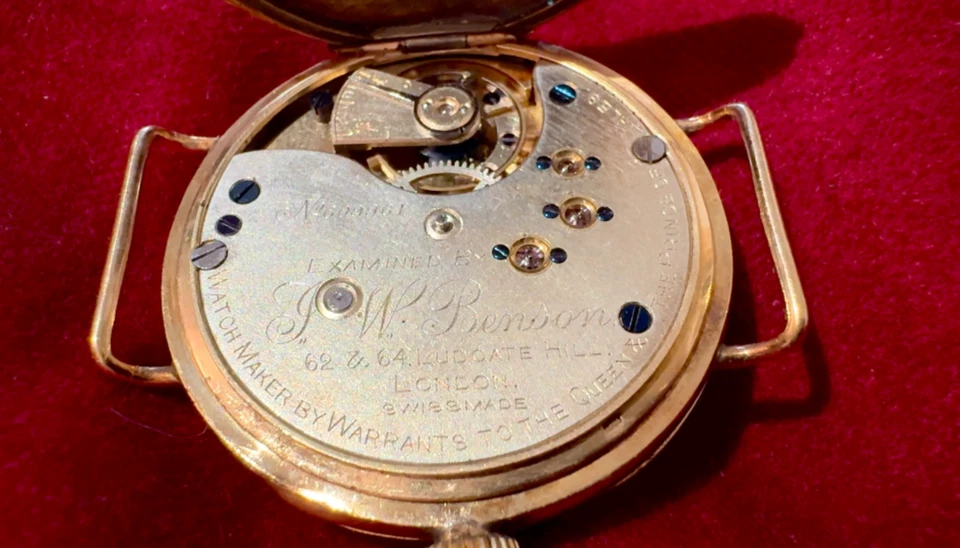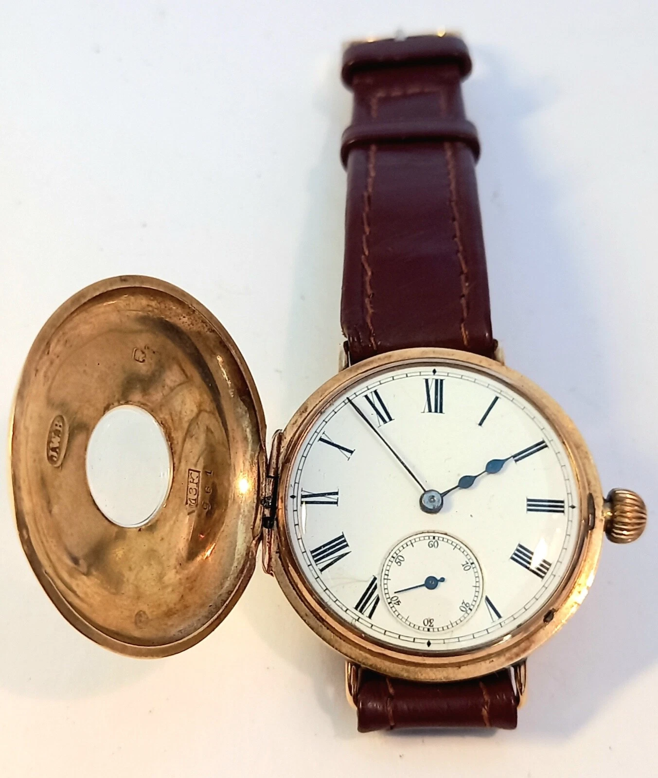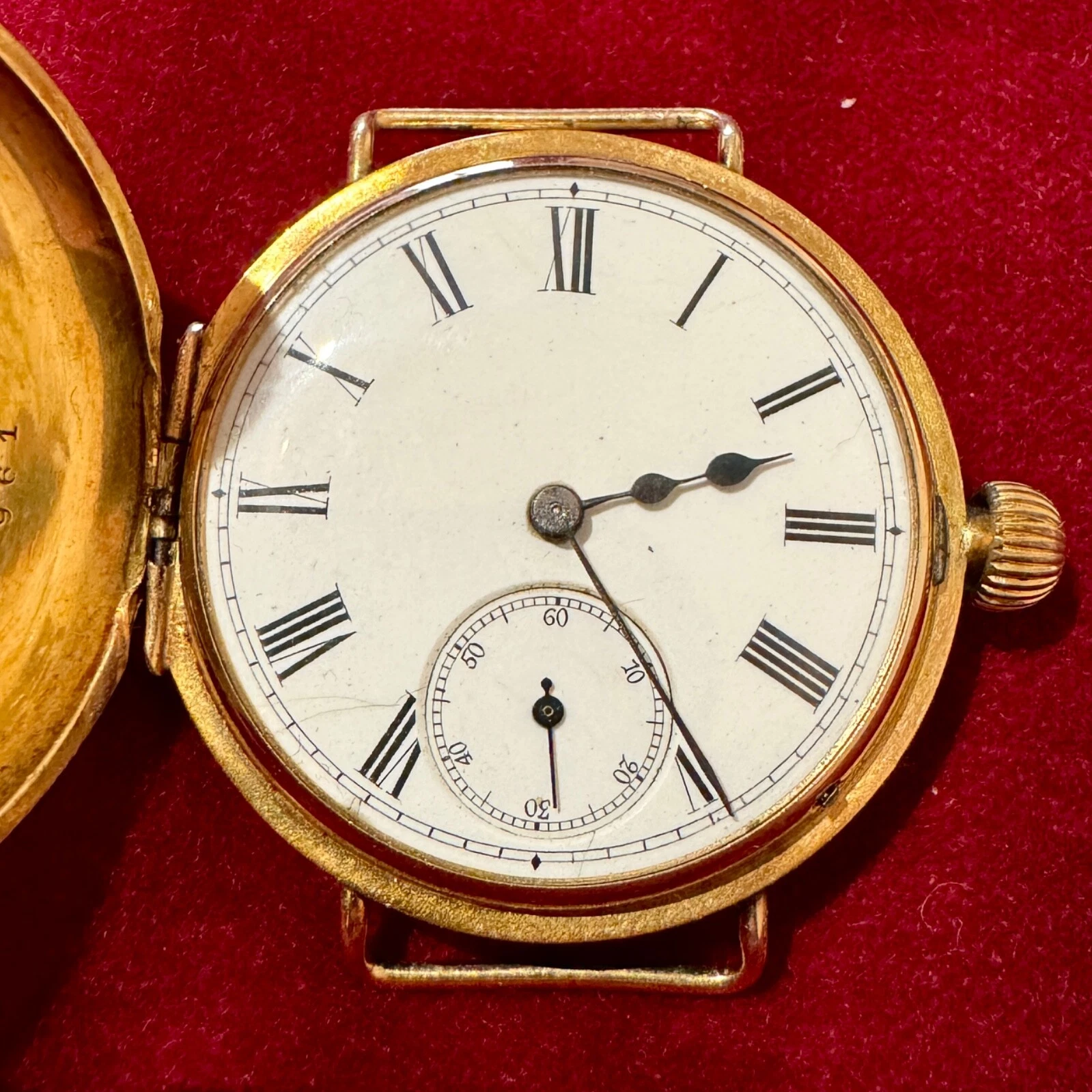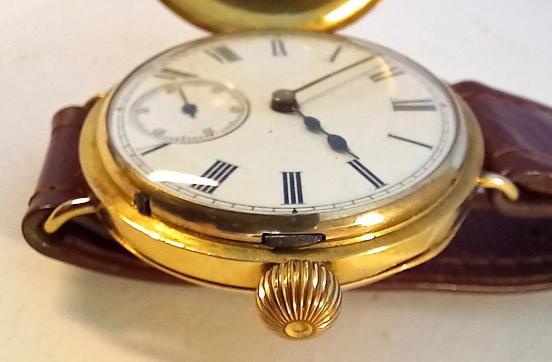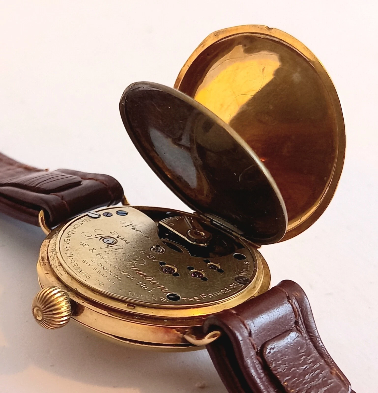 Large antique 18ct gold half hunter wristwatch by J.W. Benson, London - c.1900