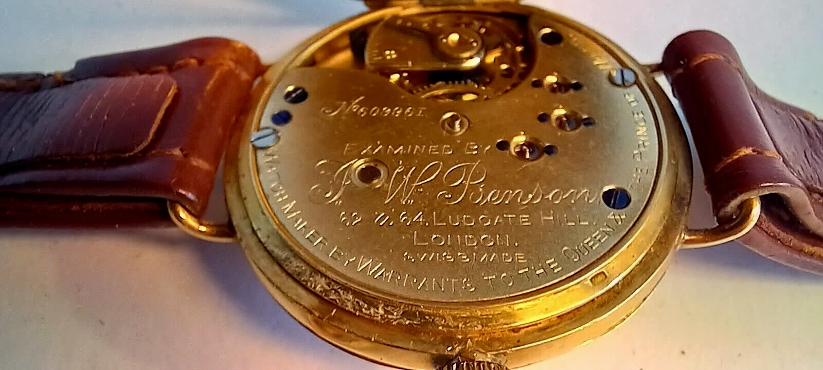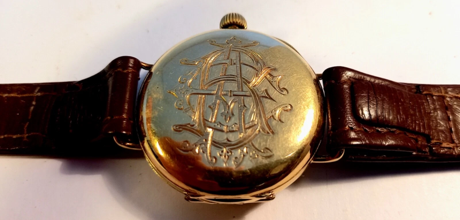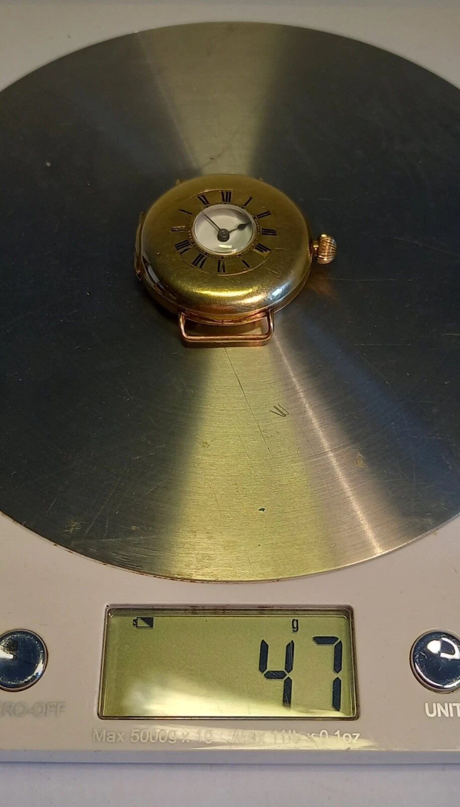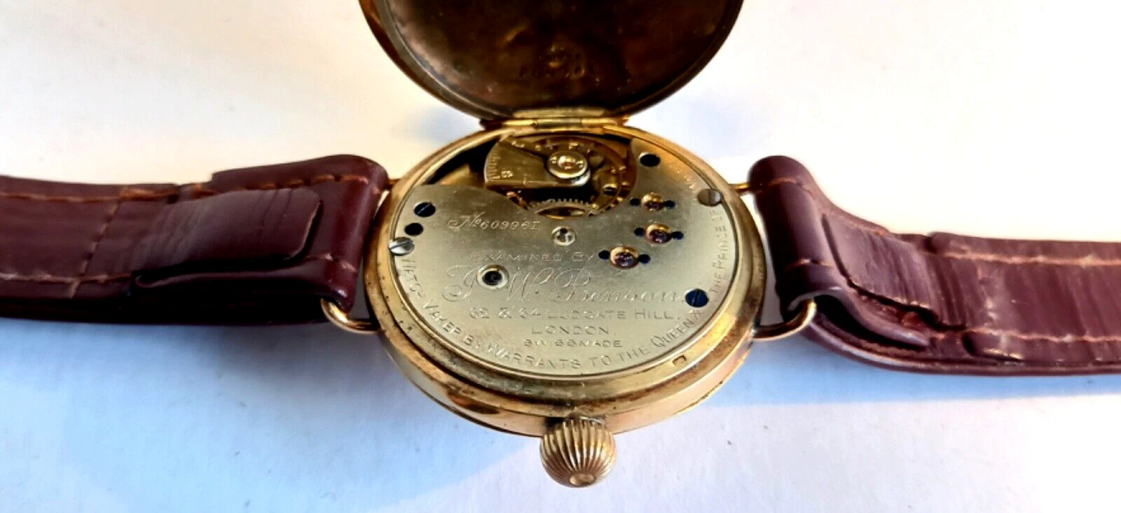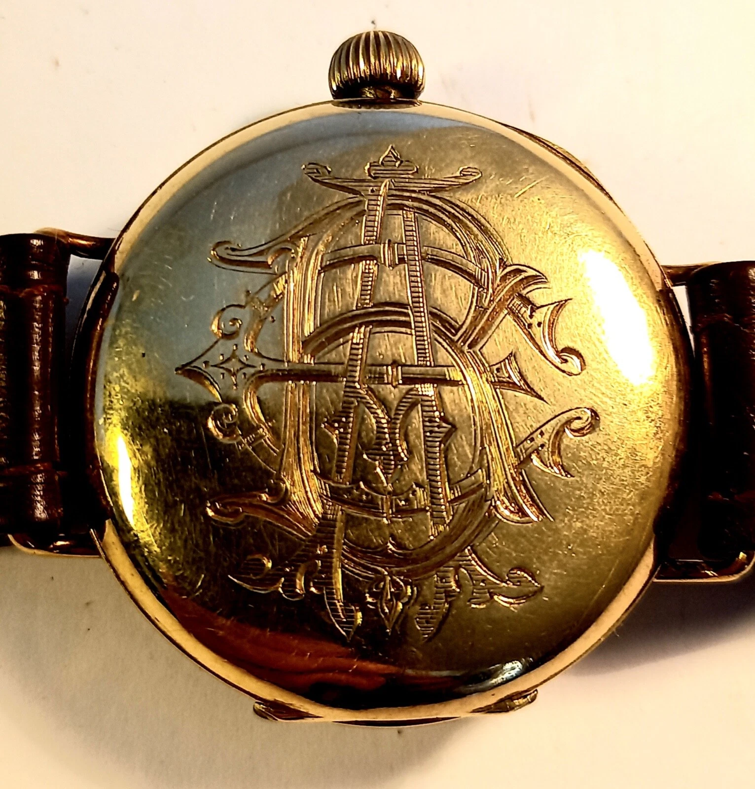 Large antique 18ct gold half hunter wristwatch by J.W. Benson, London - c.1900