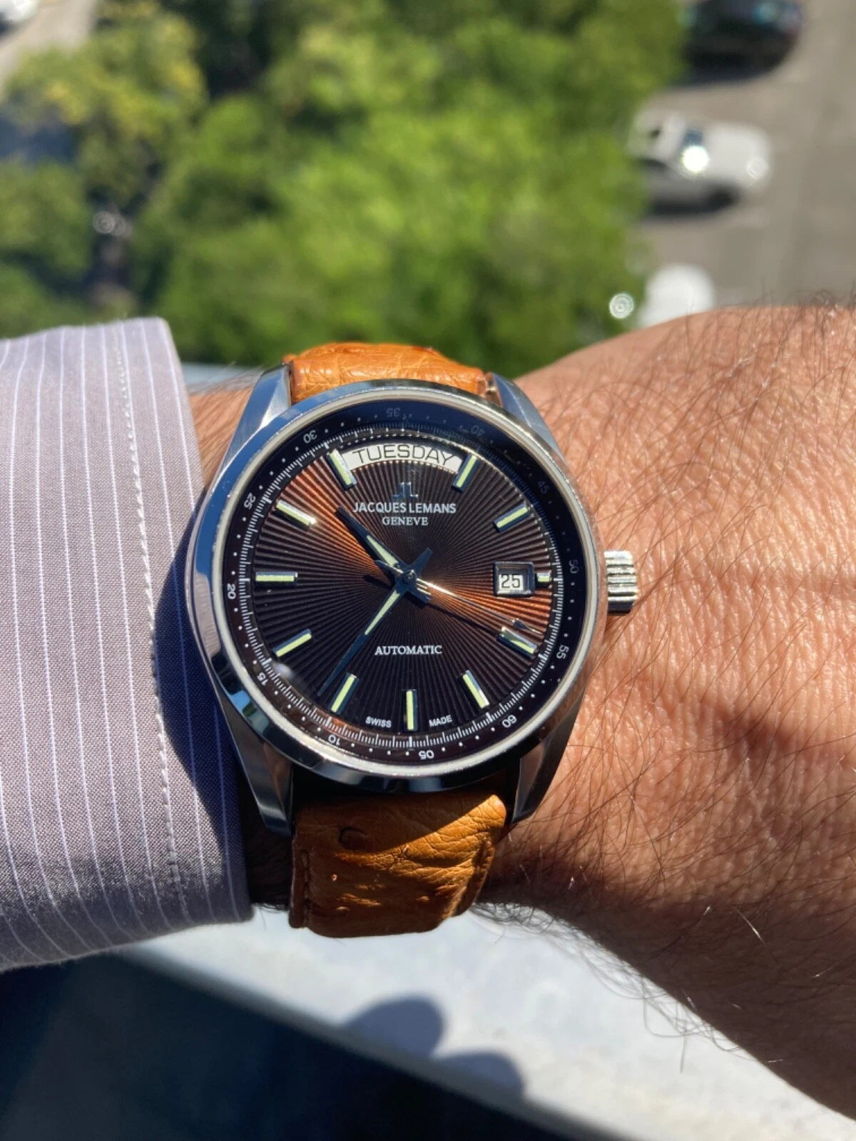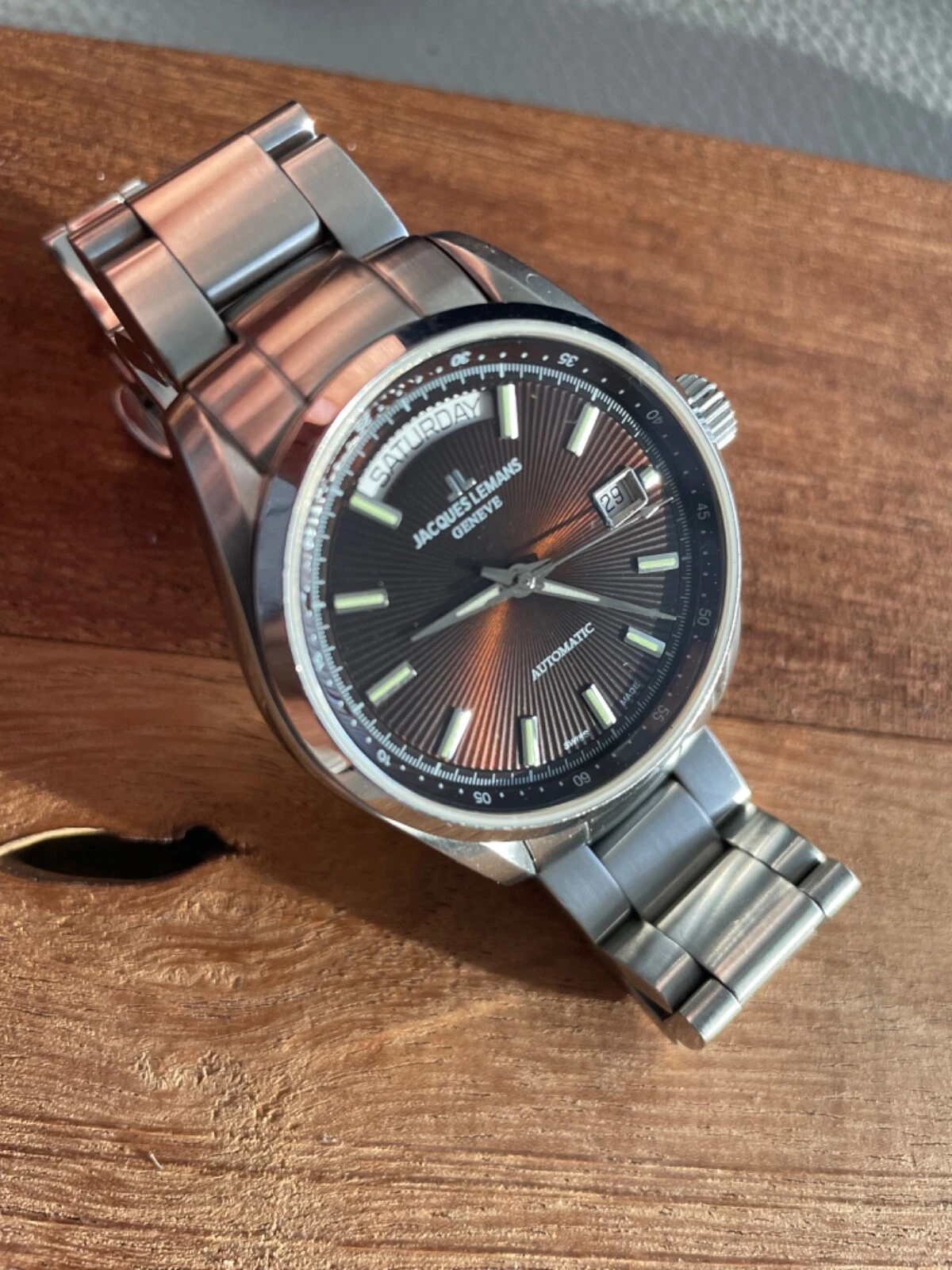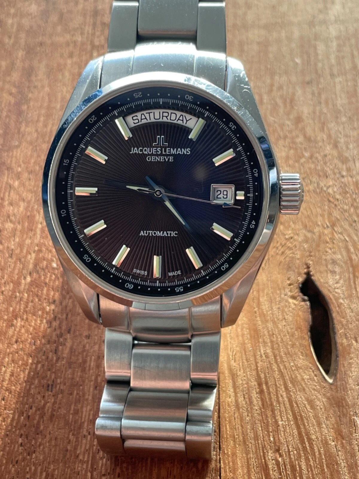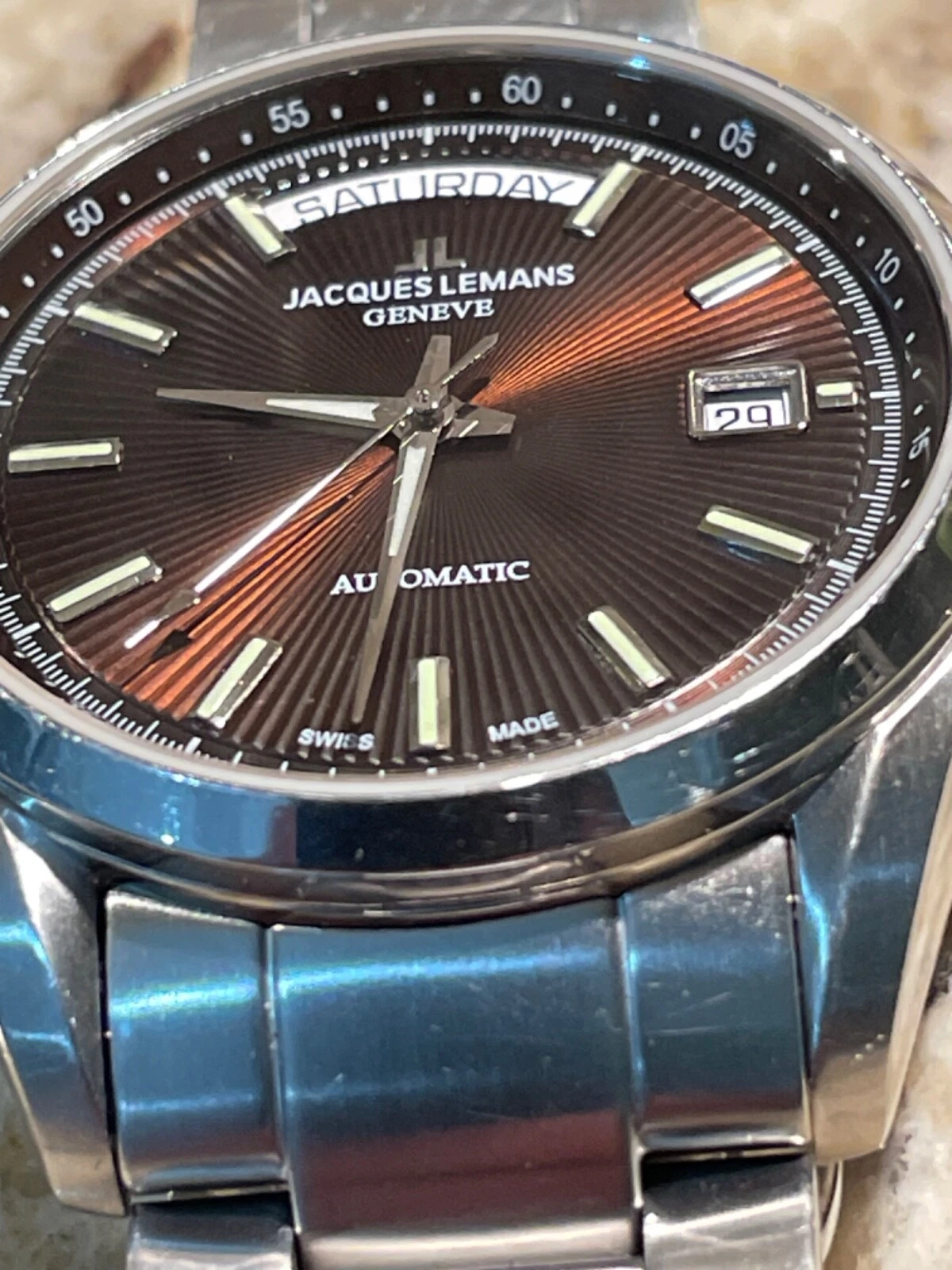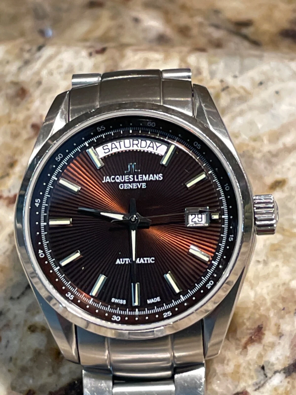 Jacques Lemans Geneve G137 w/ Sunburst Dial, Day-Date, Swiss Auto, Men's, RARE