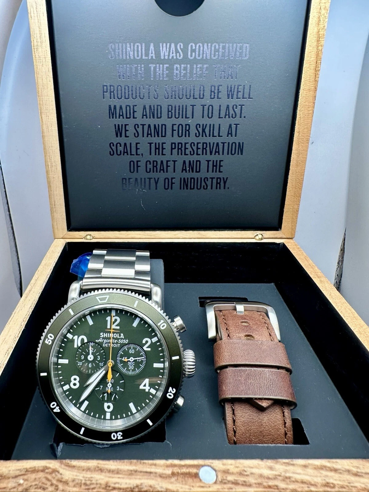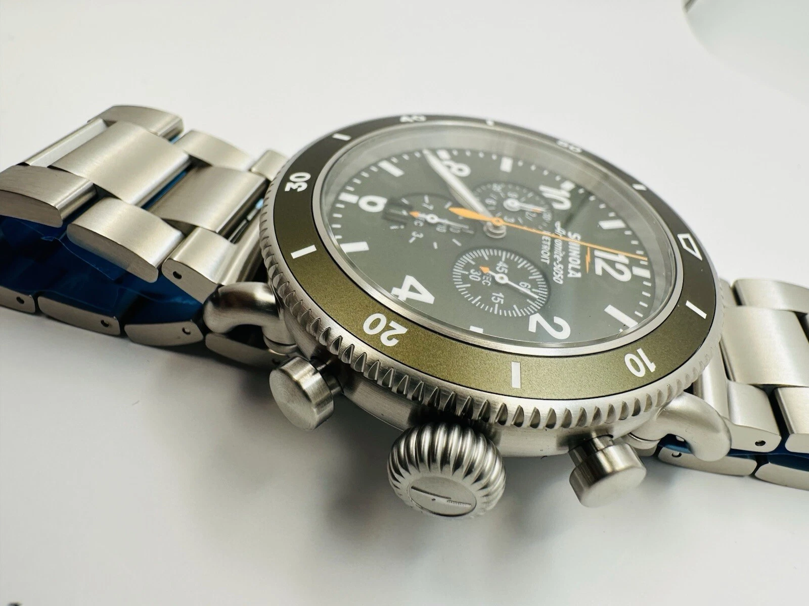 Shinola The Runwell Sport Chrono Olive Green Titanium 48mm Watch S0120282840