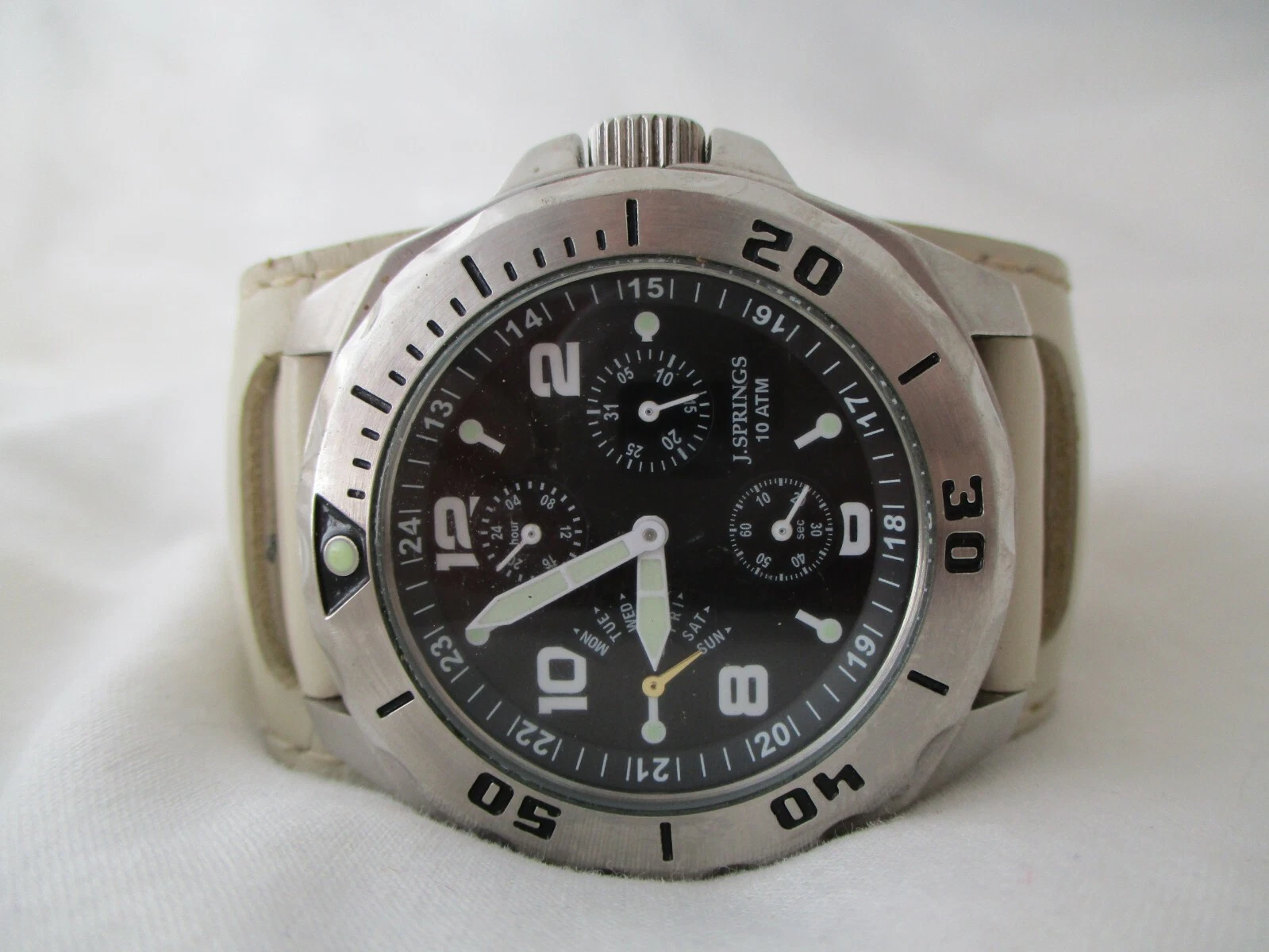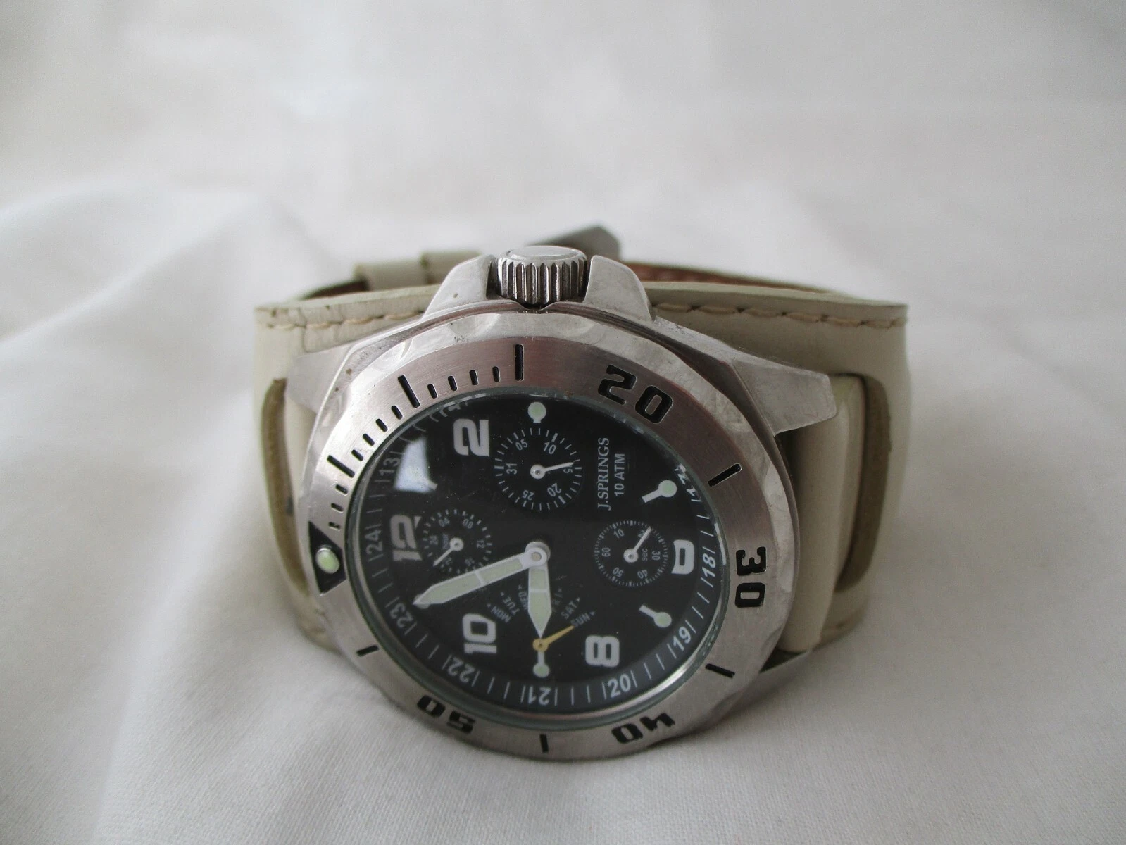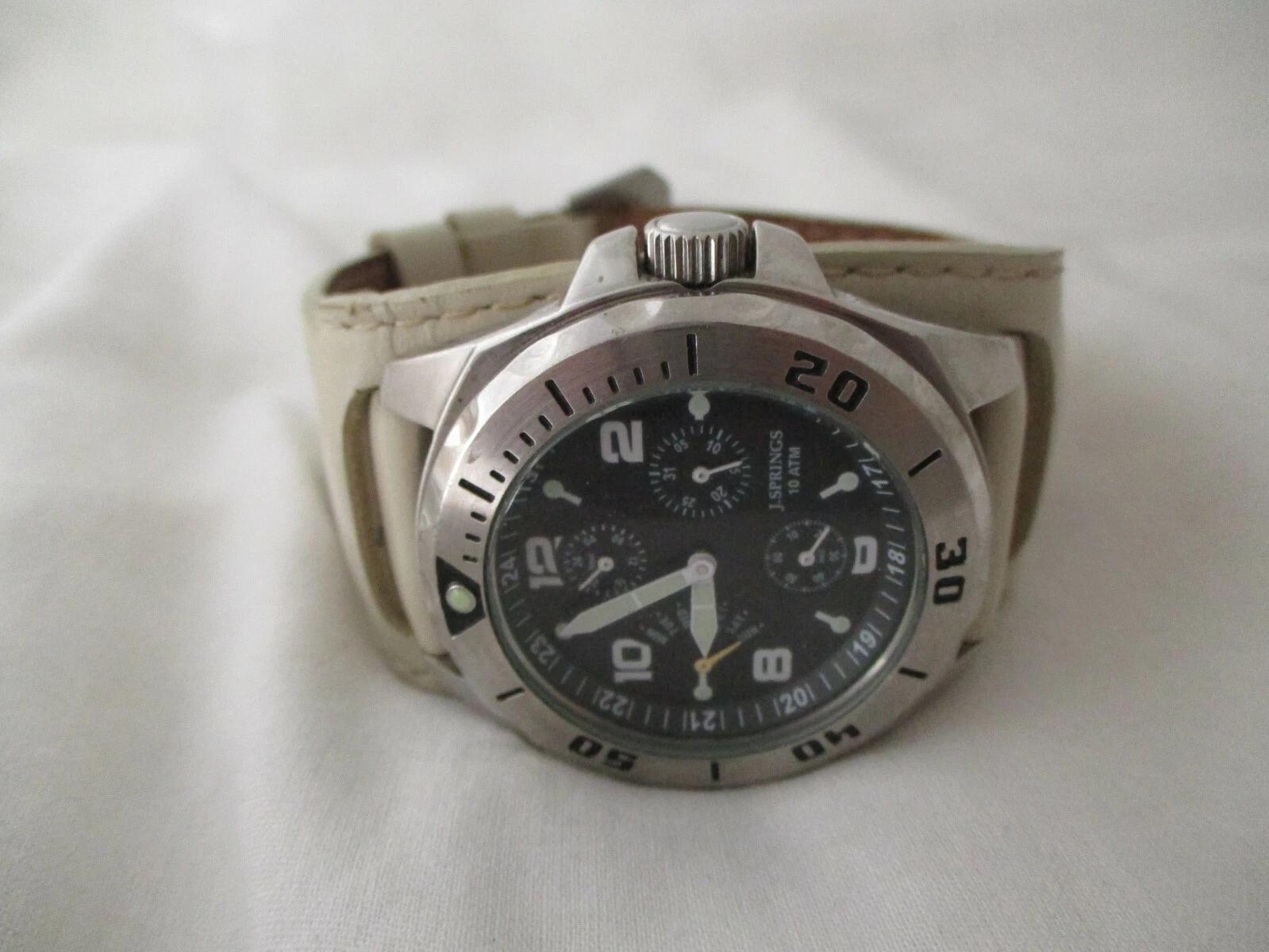 J Springs Men's Water Resist Beige & Silver Toned Wristwatch w/ Adjustable Band