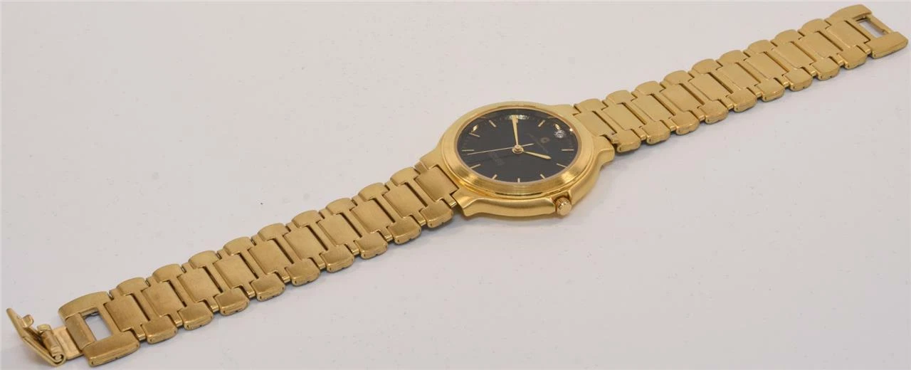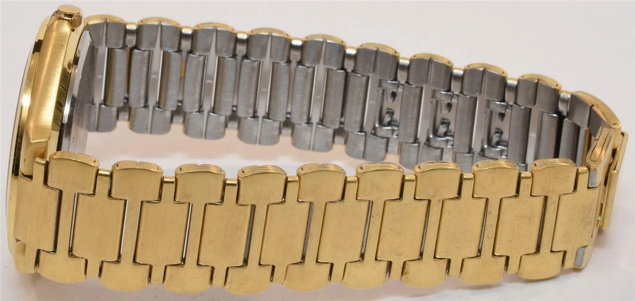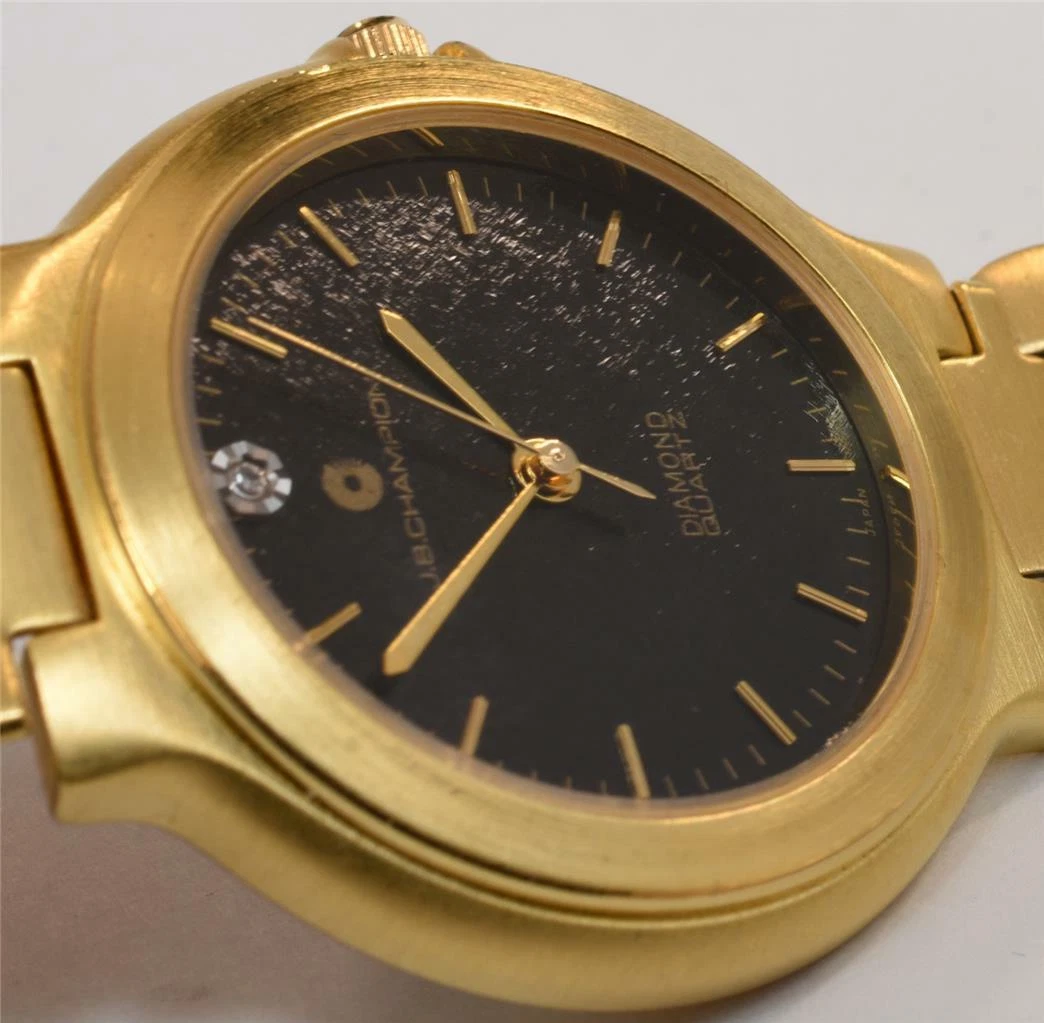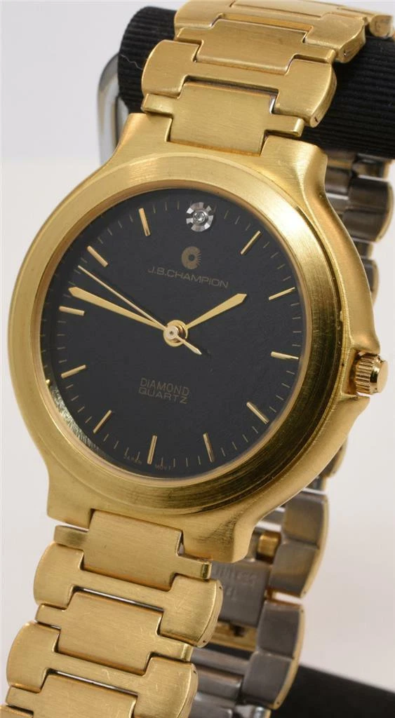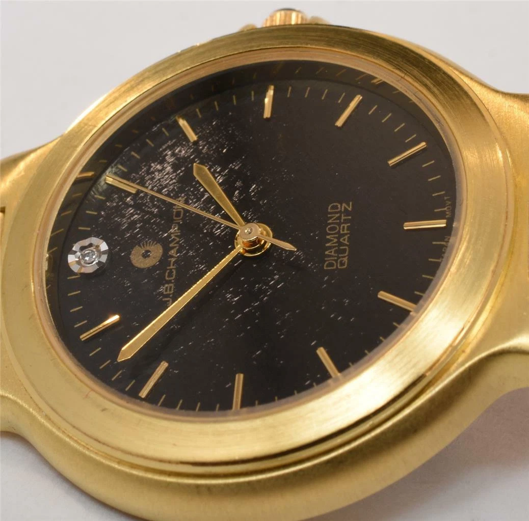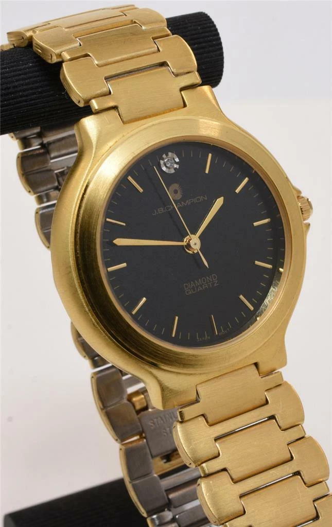 JB Champion Watch 35mm SERVICED Gold Bracelet Black Lacquer Textured Dial NOS