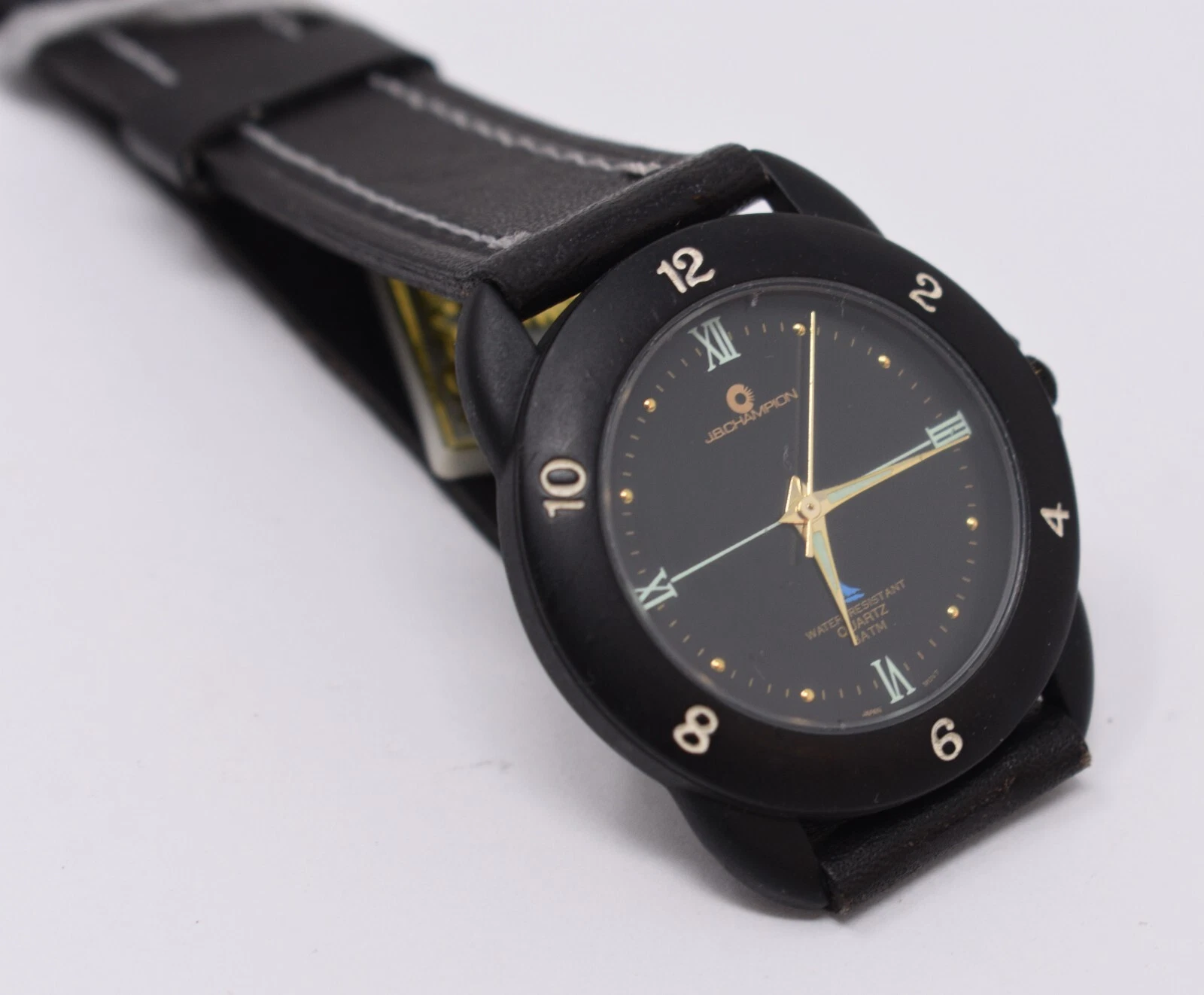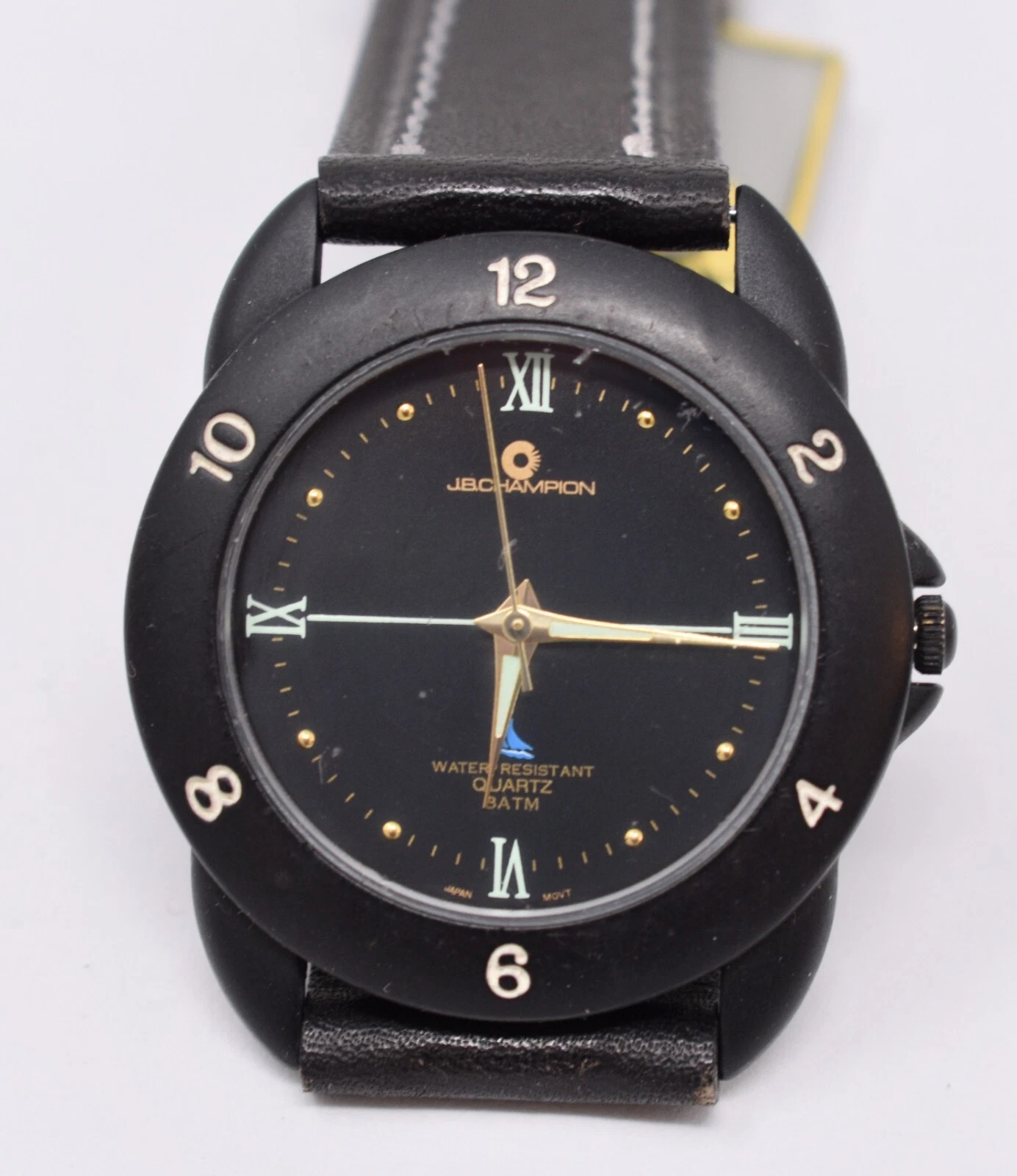 Vintage 1980s JB Champion NOS Mens Blacked Out Sailboat 30m Quartz Wristwatch