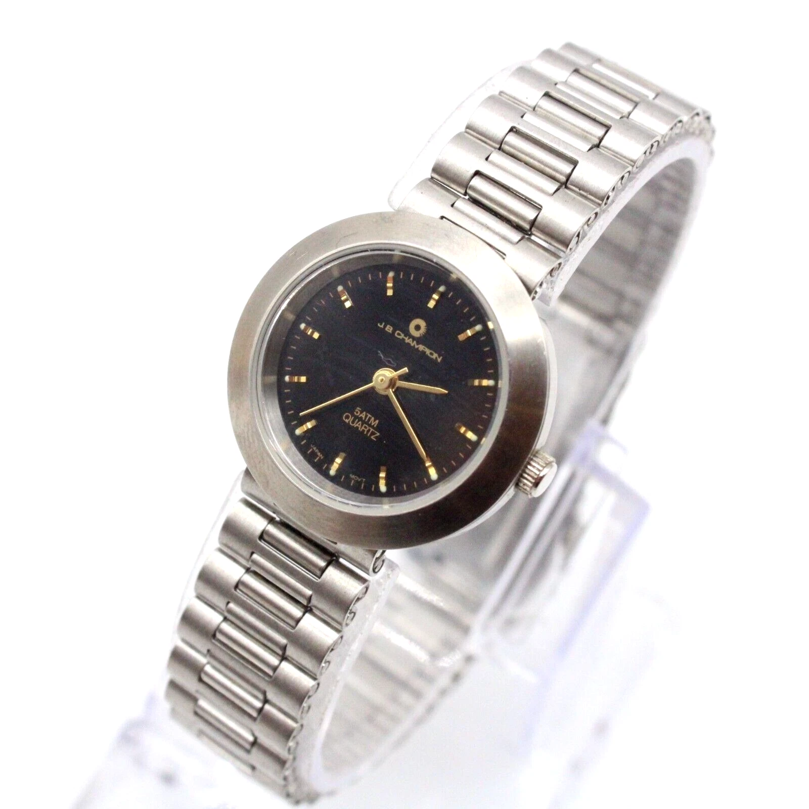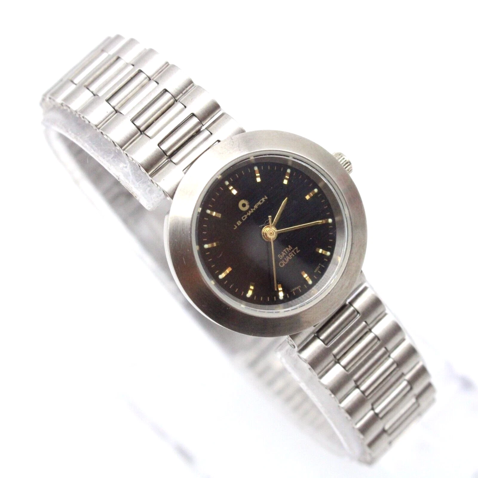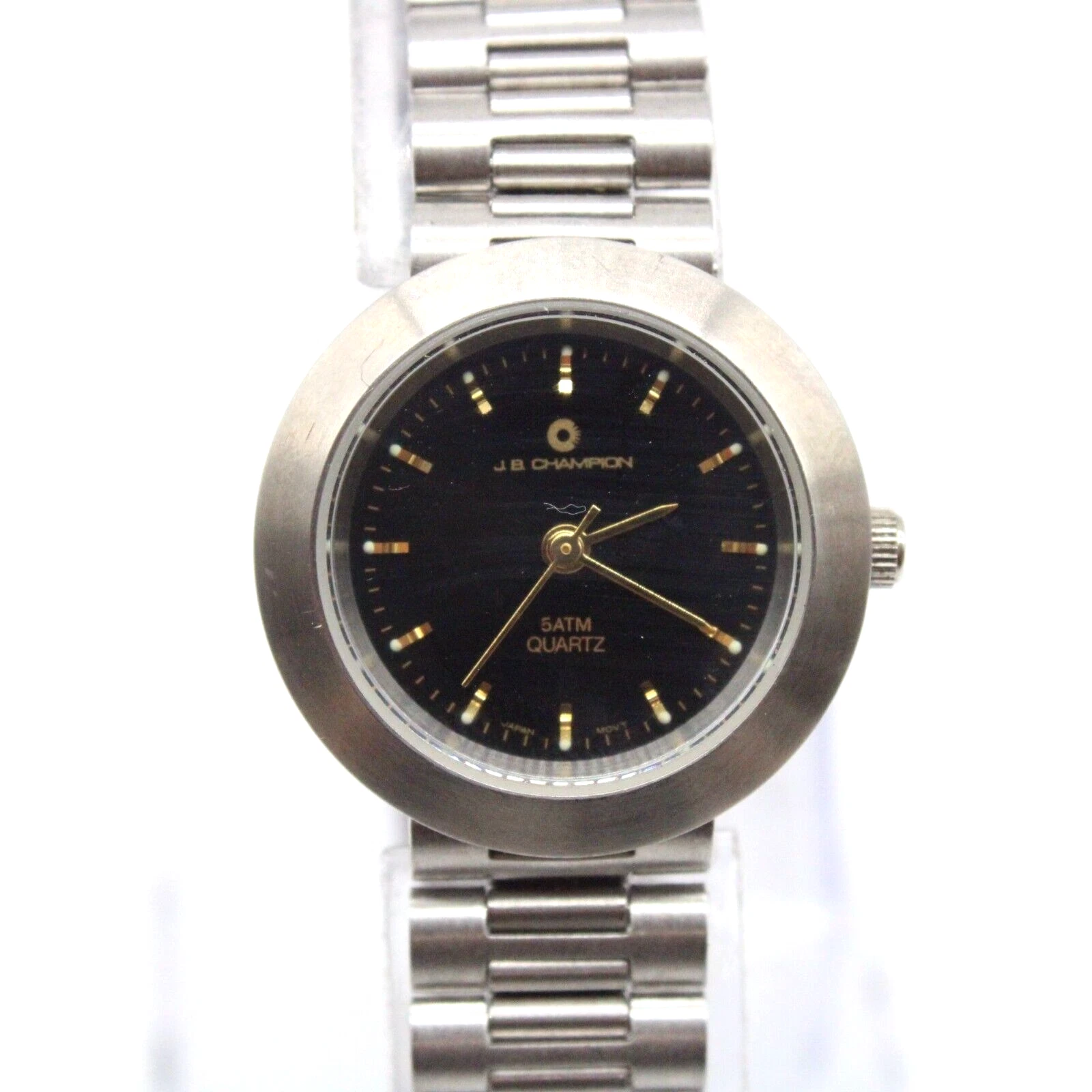 J.B Champion Watch Womens Silver Tone Stainless Steel Classic Black Dial