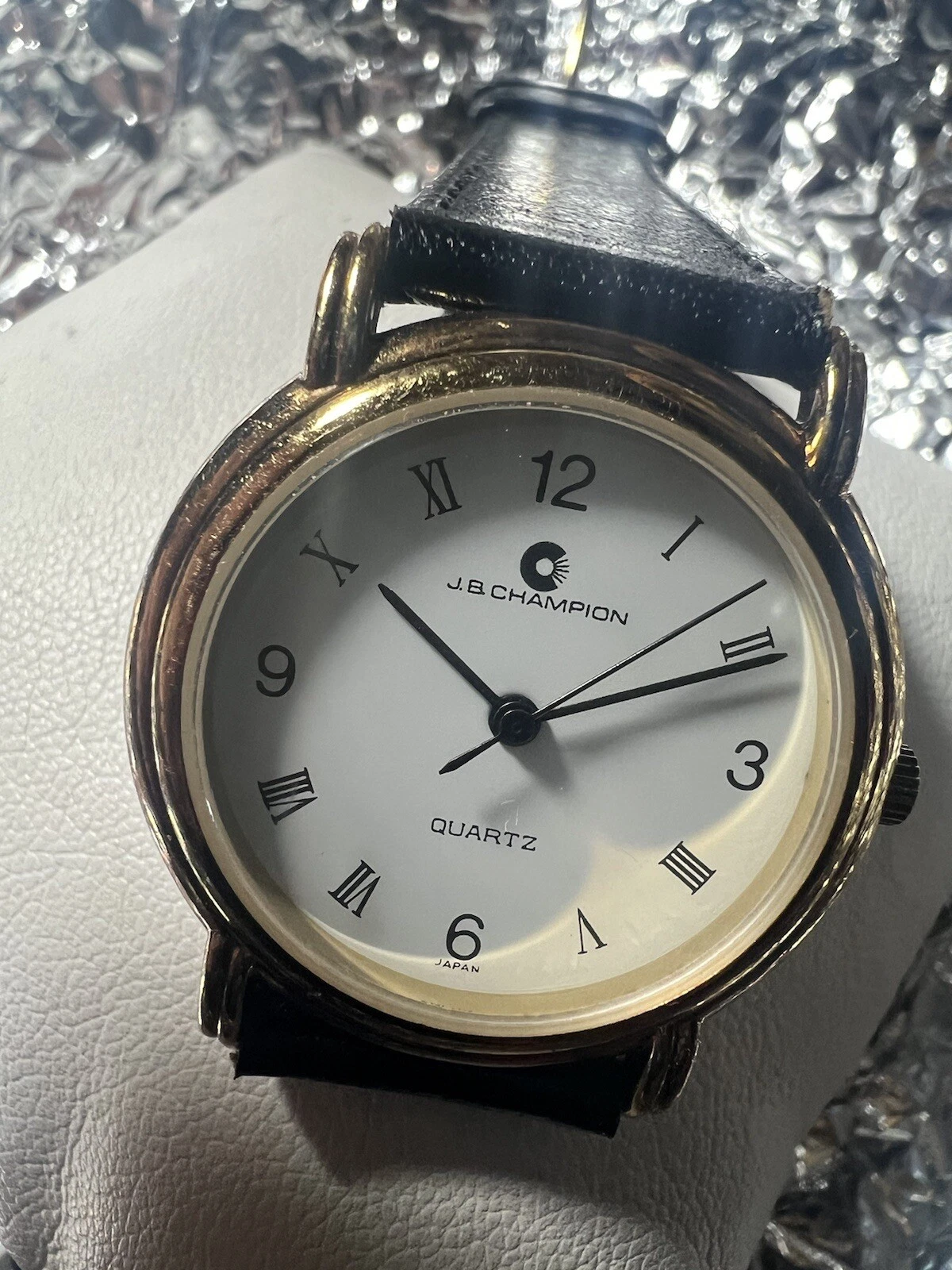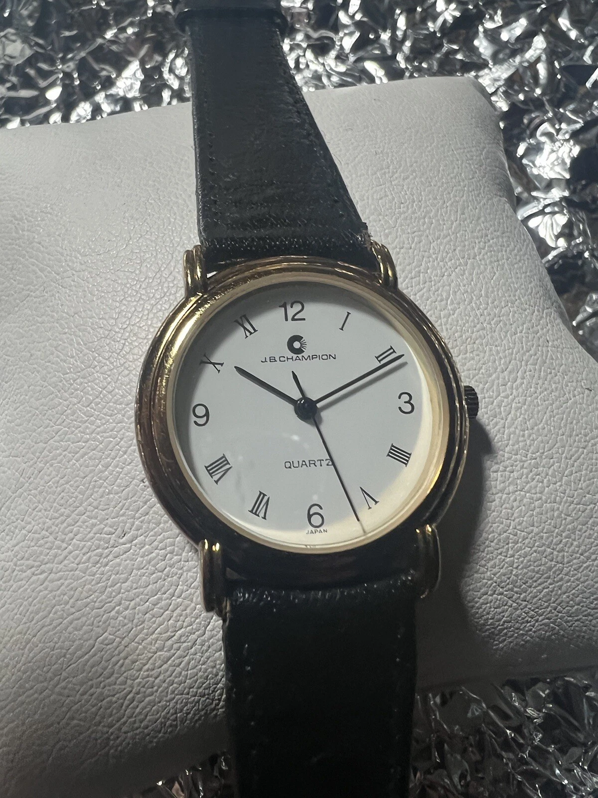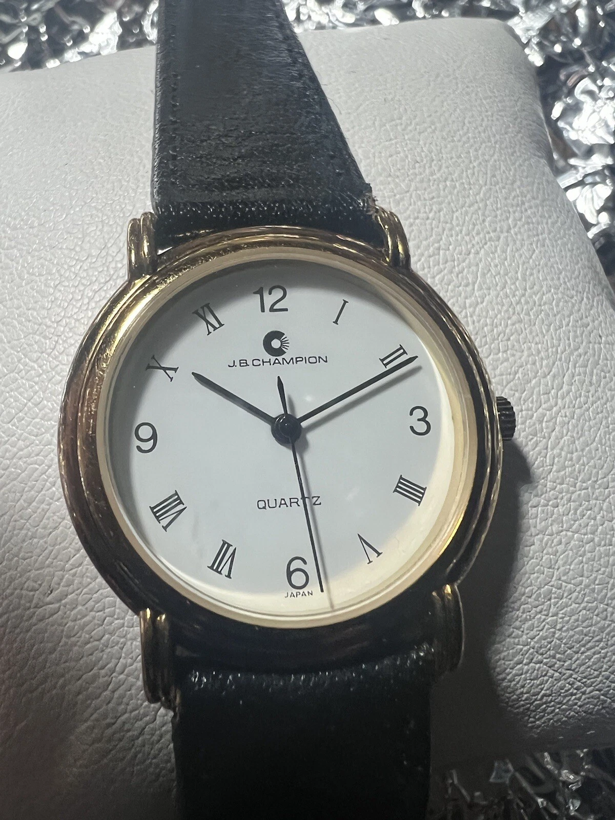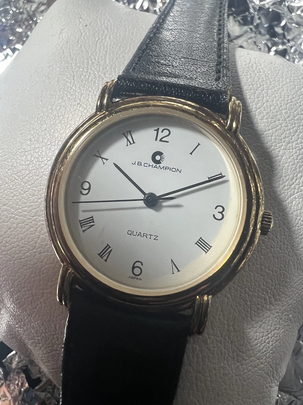 JB Champion Quartz ladies watch, White Face, Roman Number,31mm Case,BL/leather