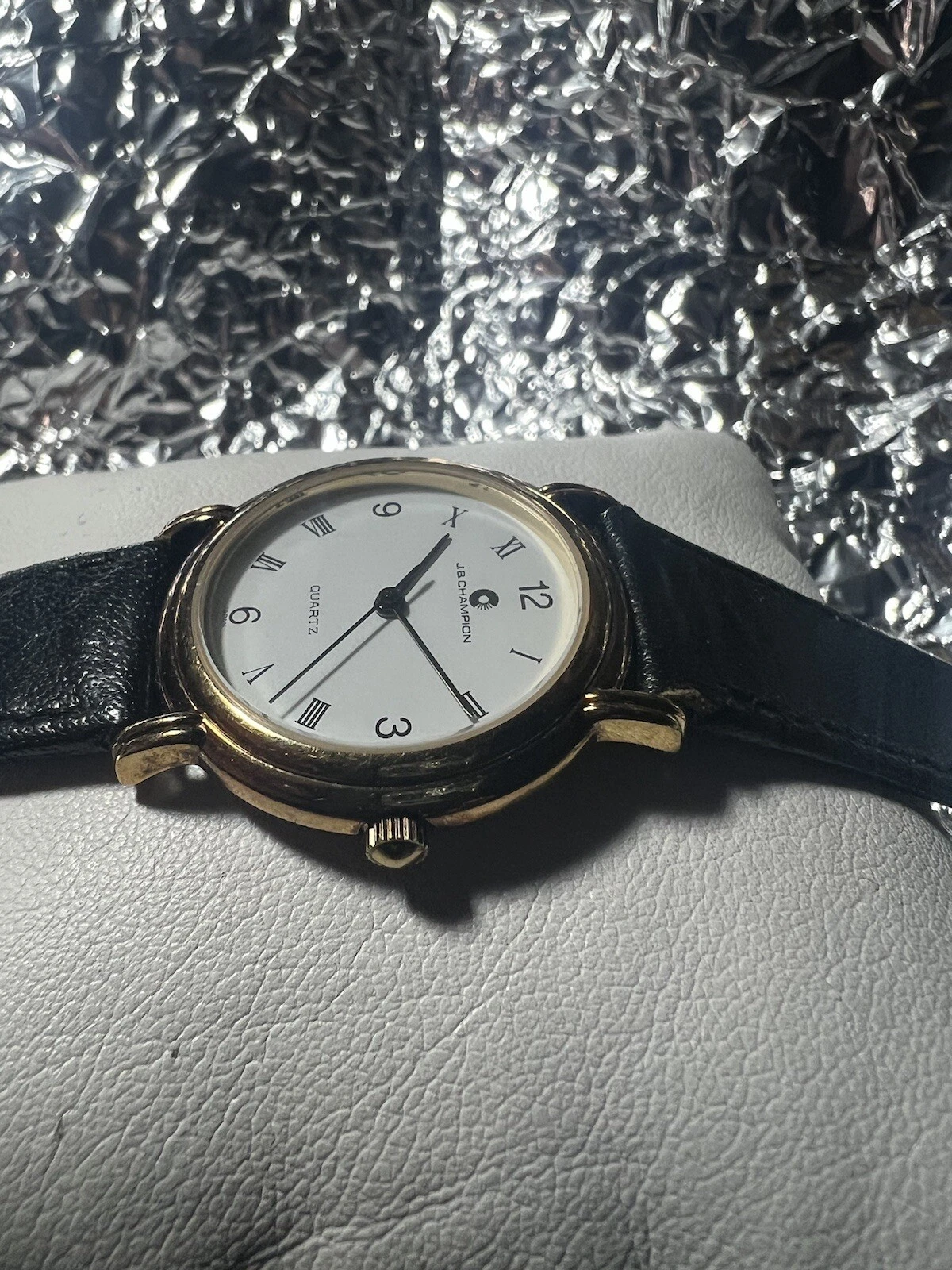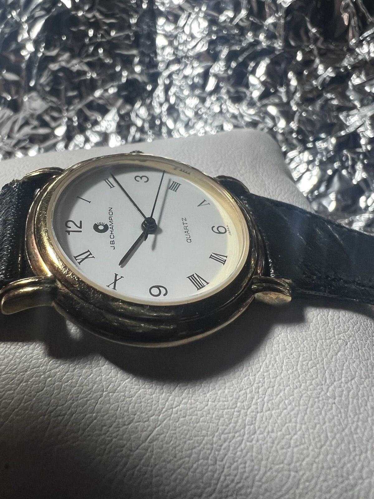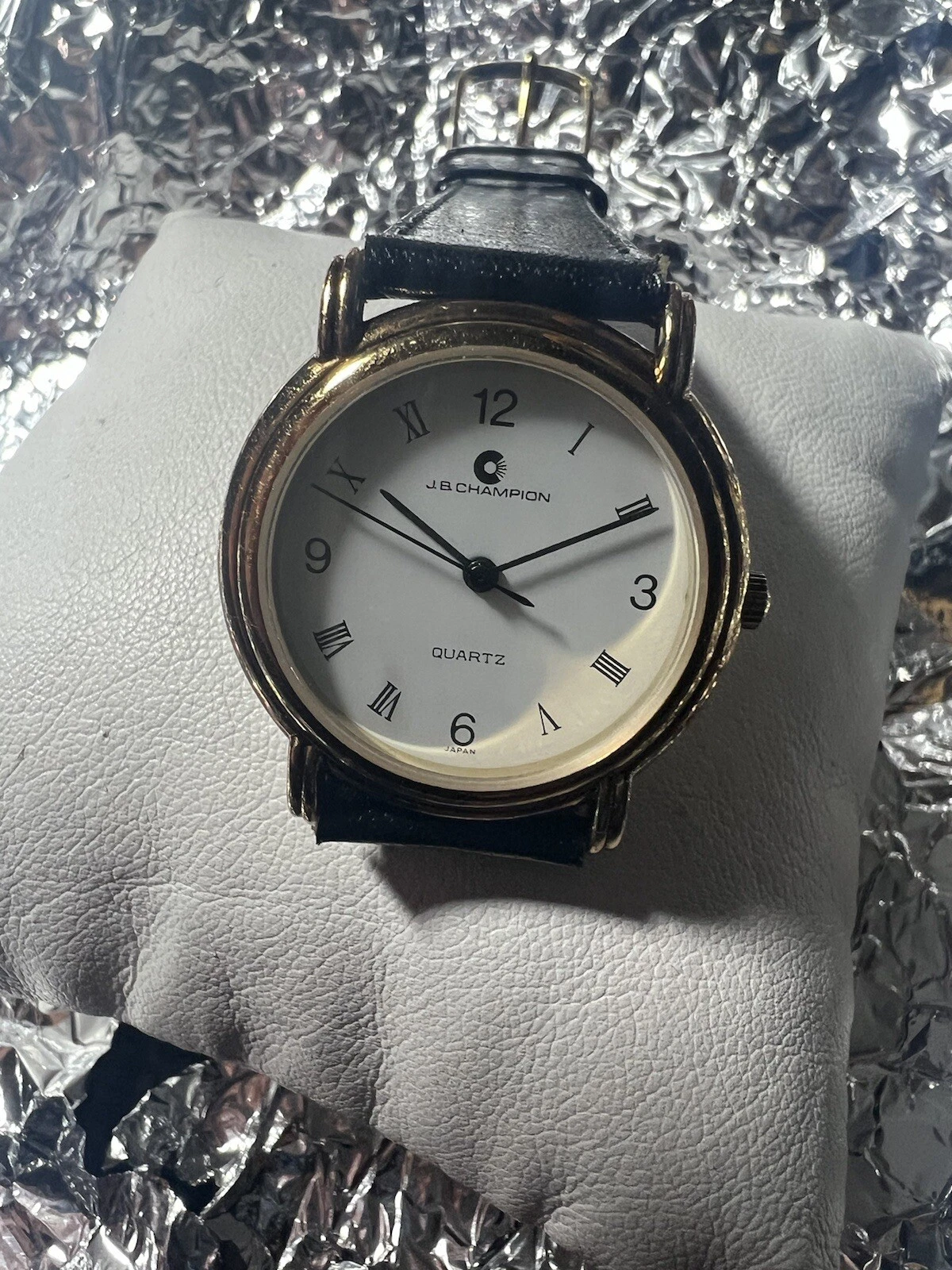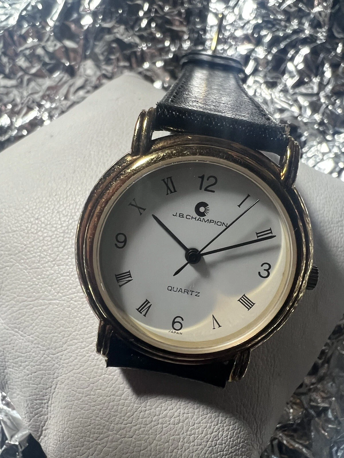 JB Champion Quartz ladies watch, White Face, Roman Number,31mm Case,BL/leather
