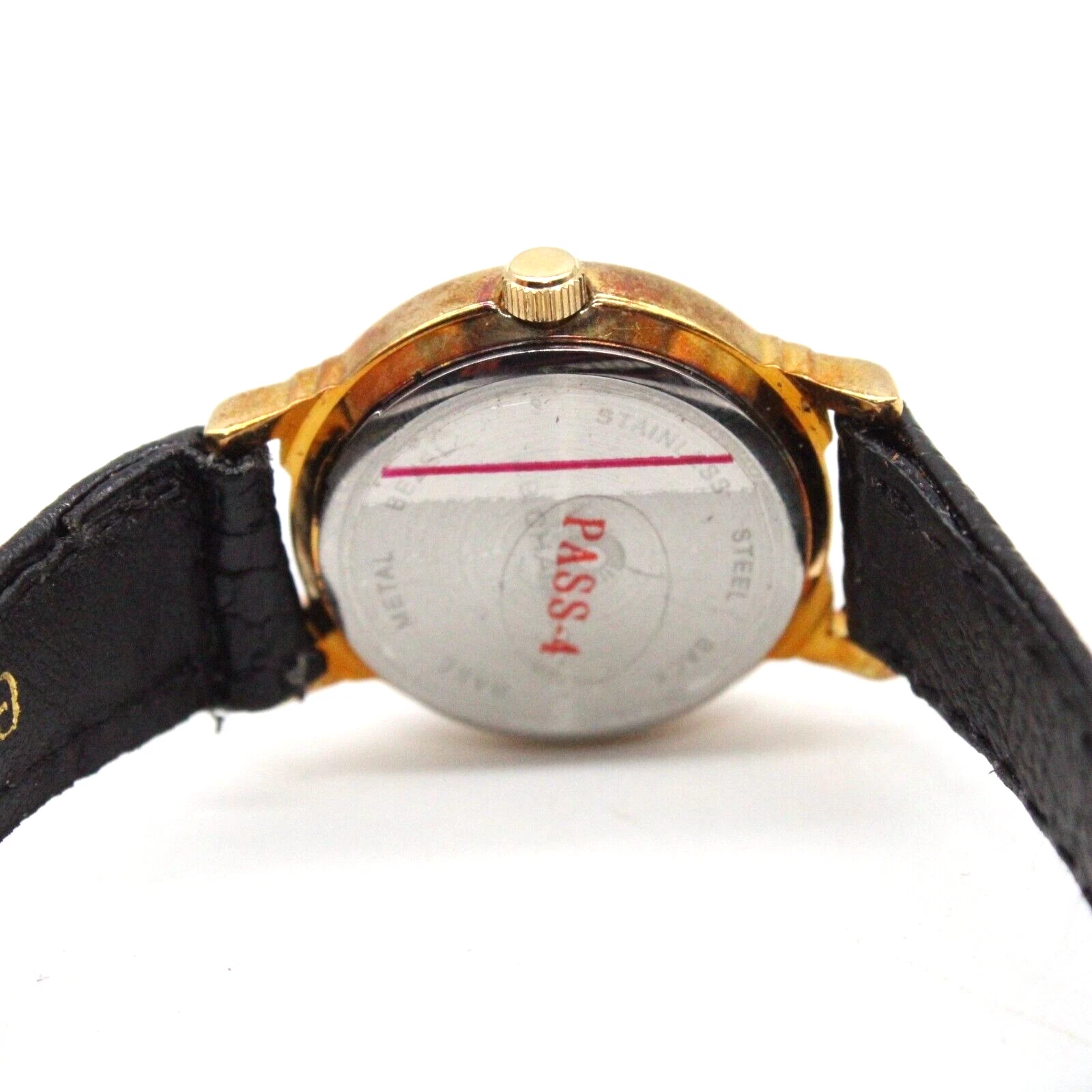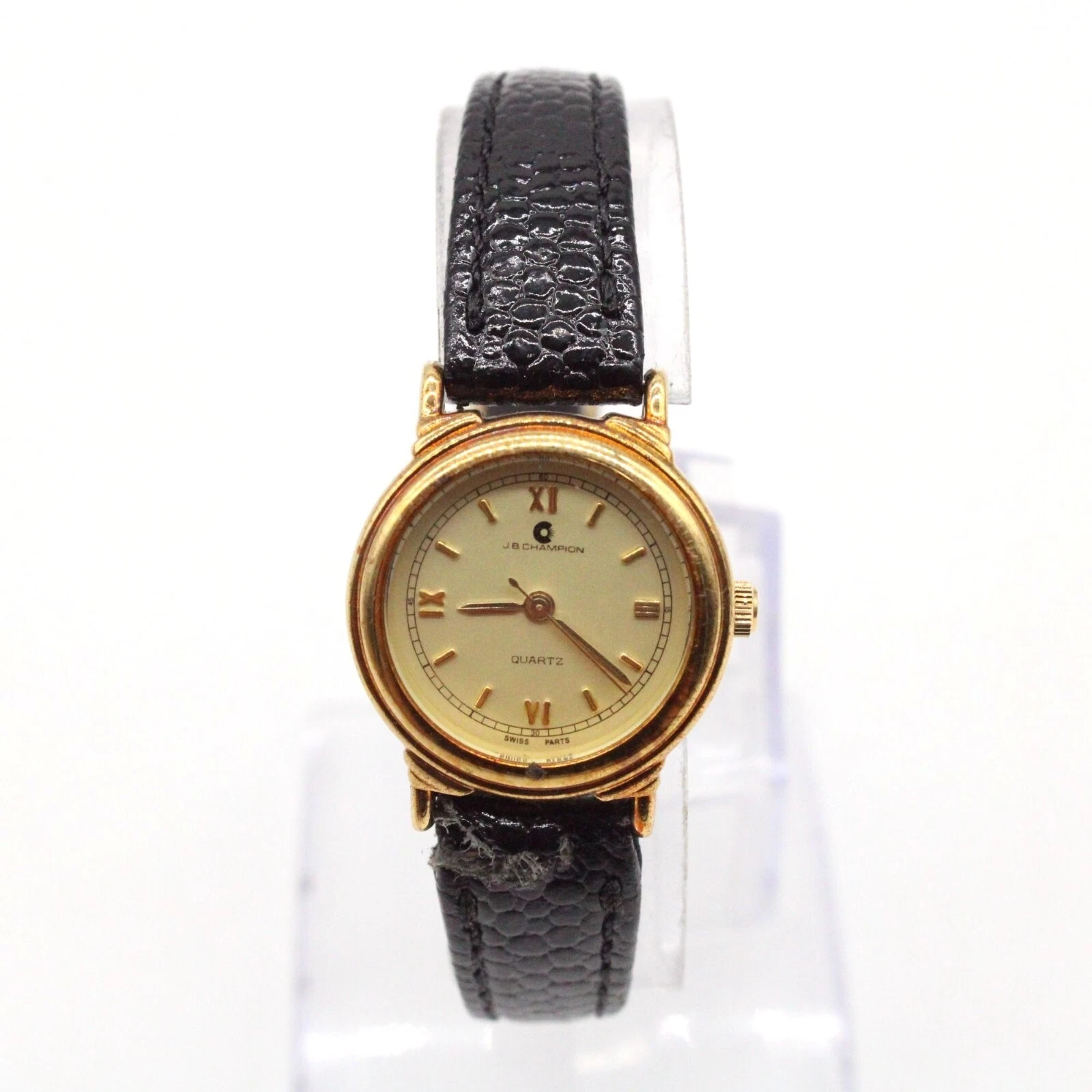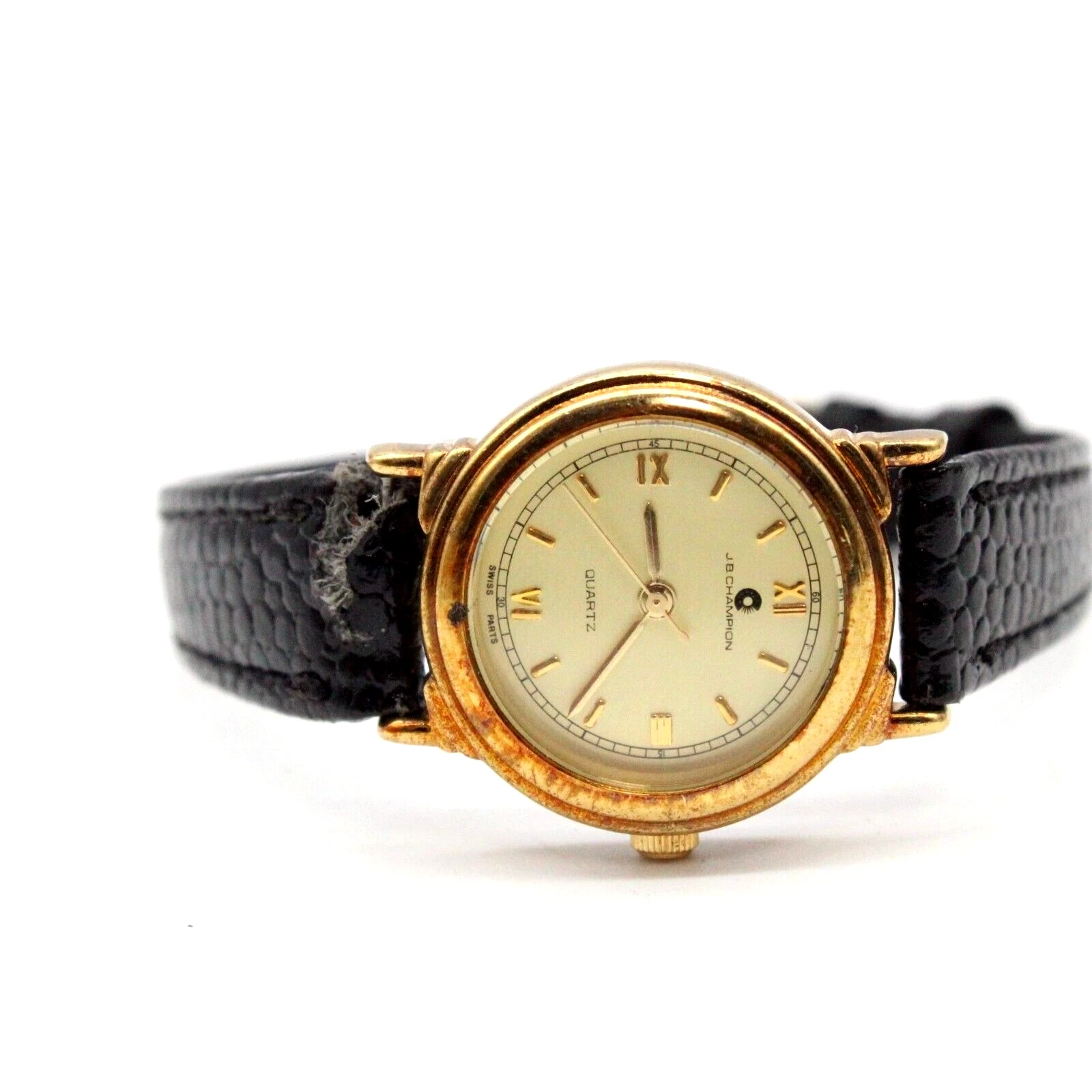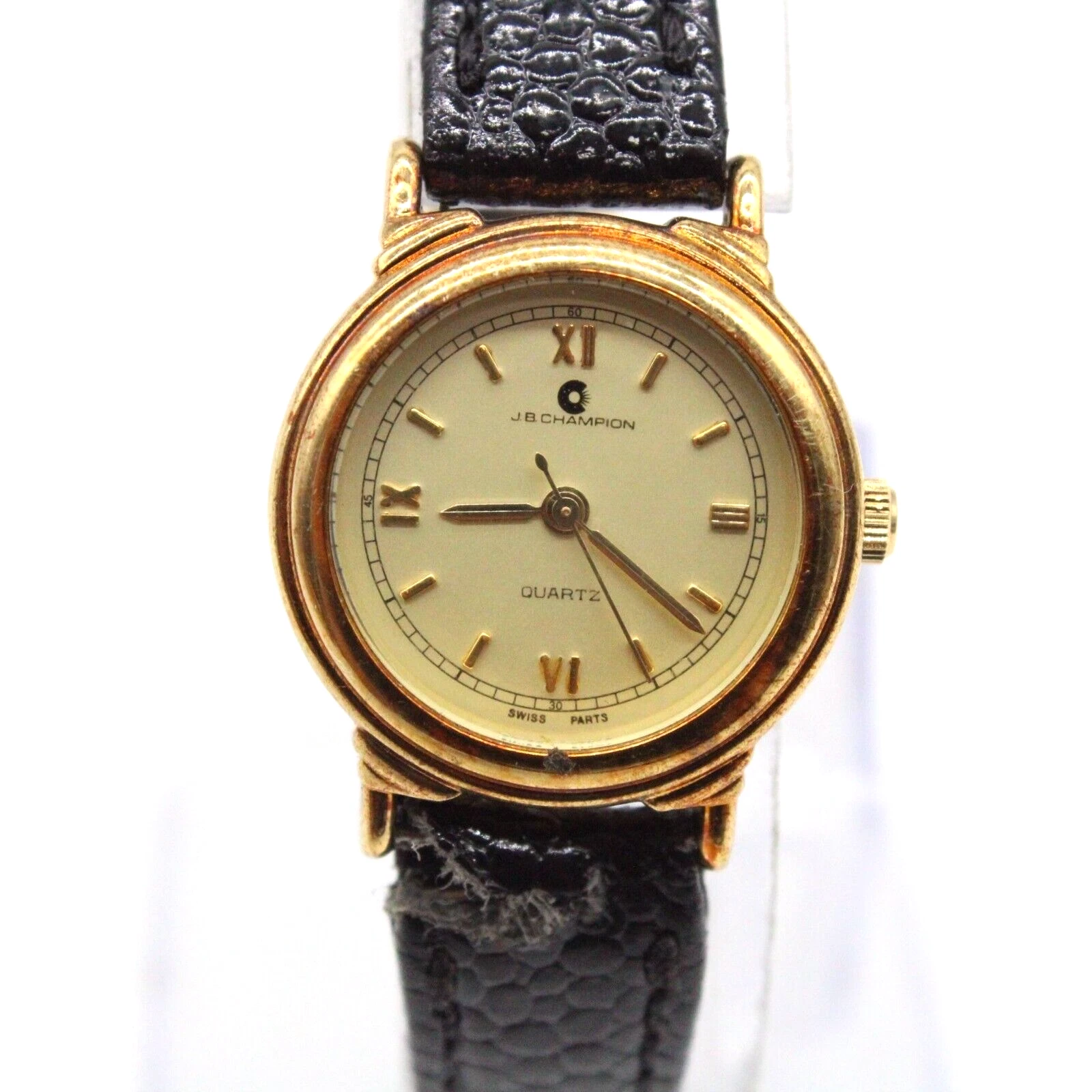 J.B Champion Watch Womens Gold Tone Stainless Steel Real Leather Band Gold Dial