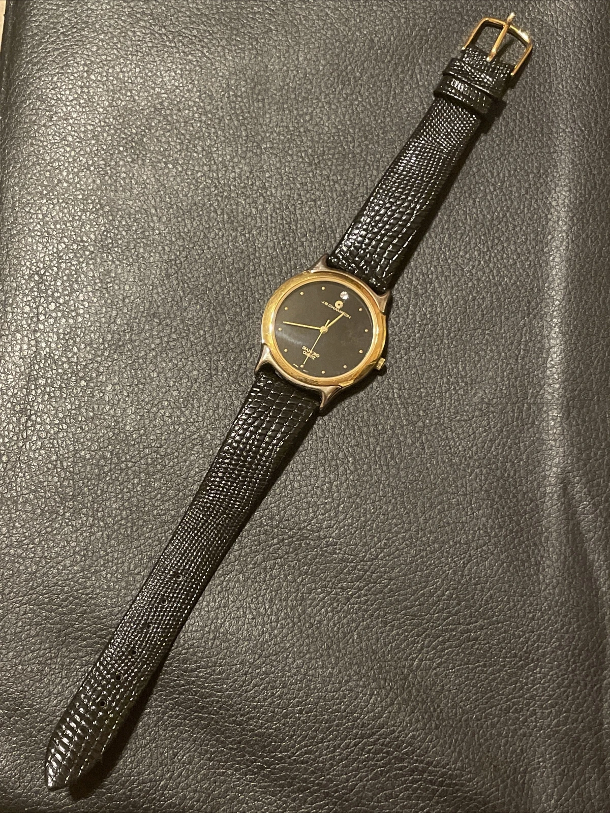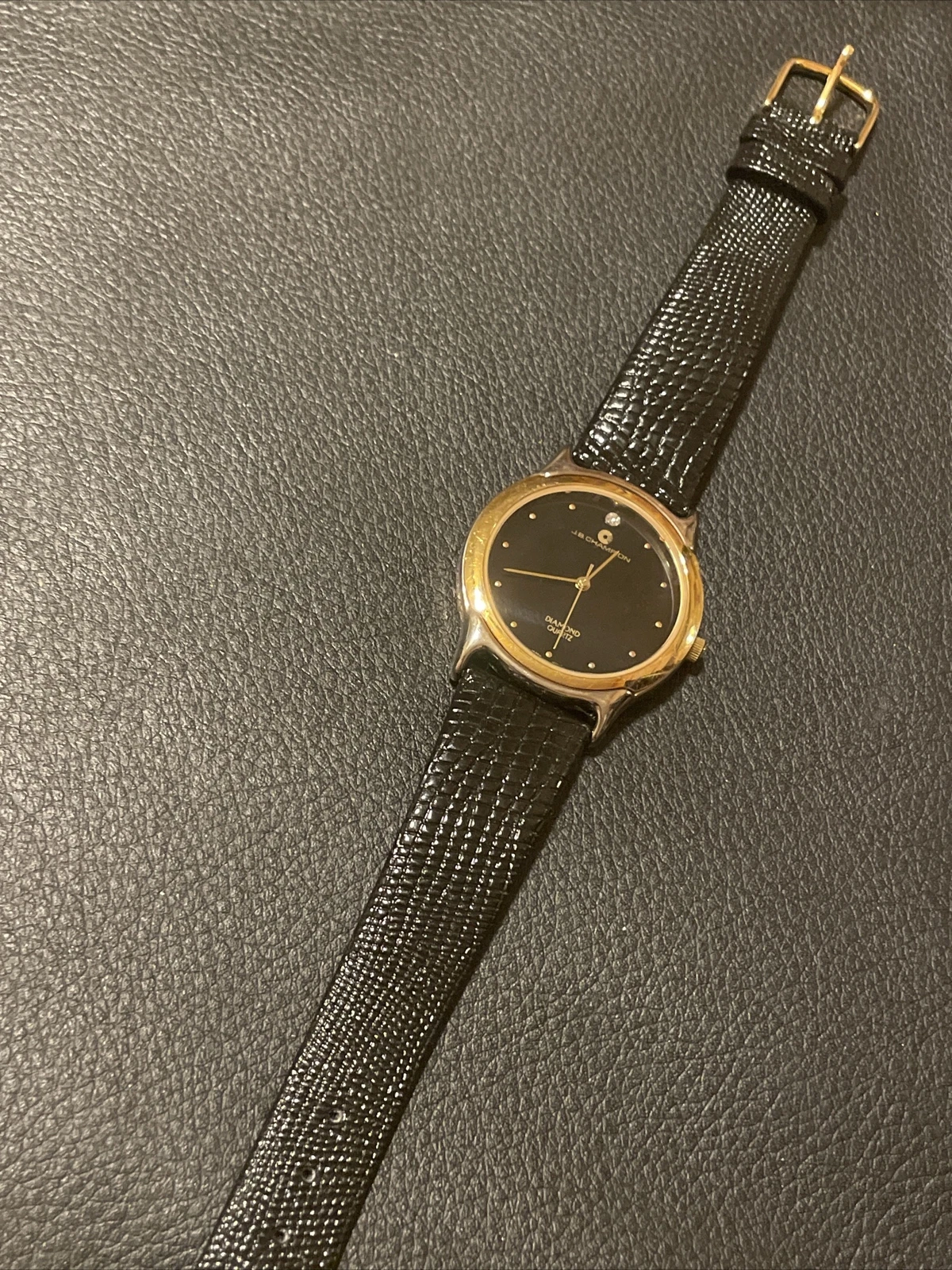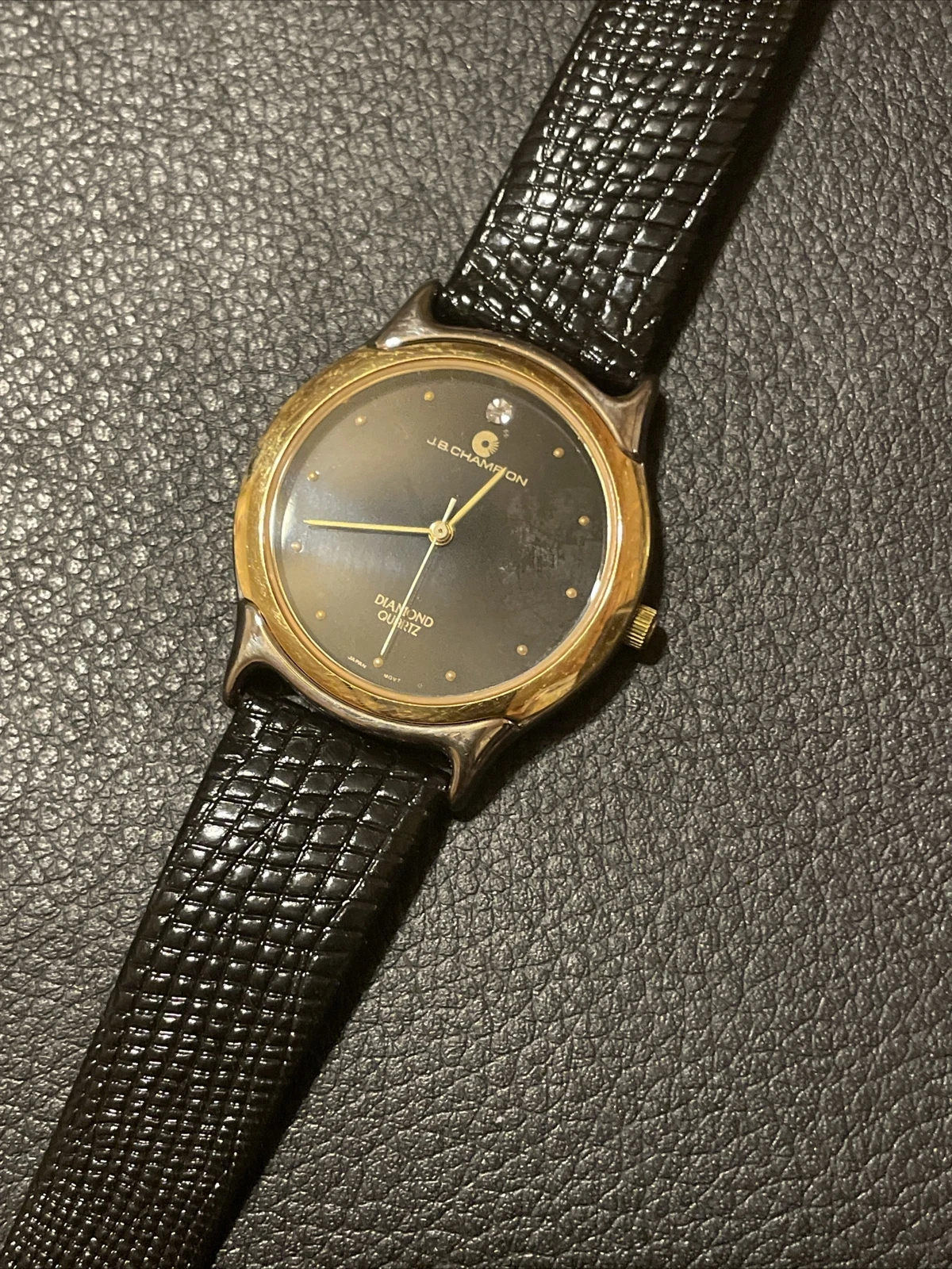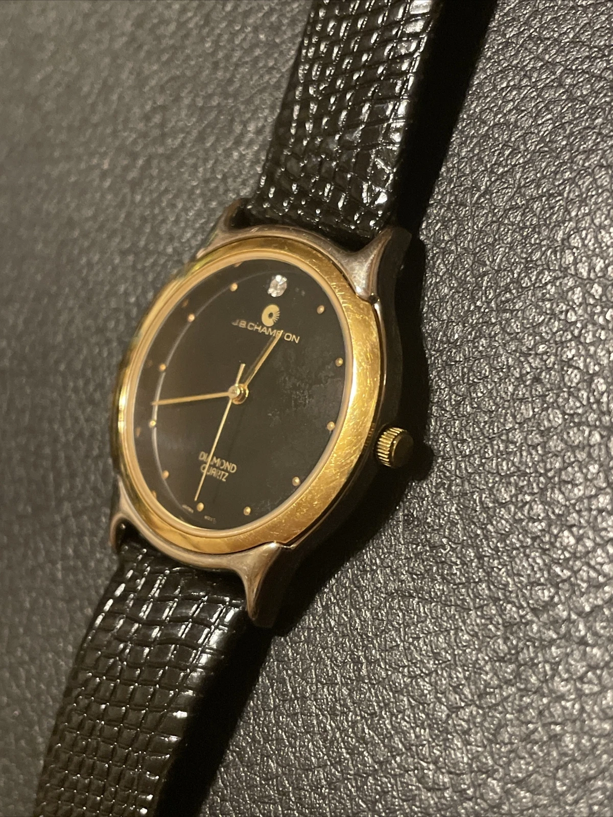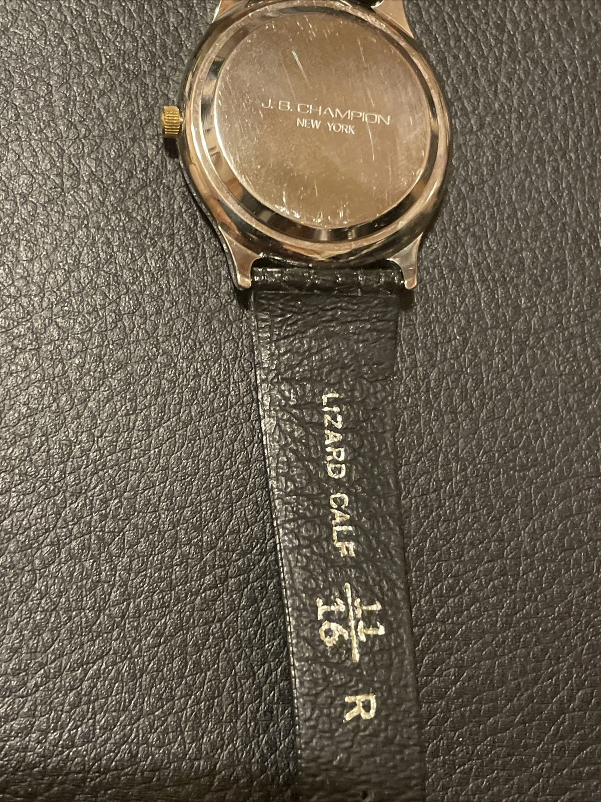 JB Champion Watch 33mm Gold Case Black Leather Strap NOS Needs Battery