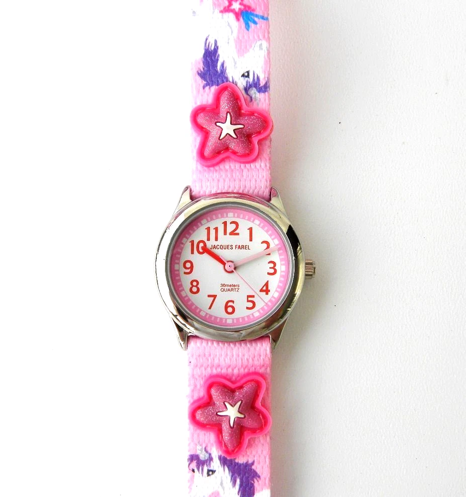 Jacques Farel HCC3134 Einhorn Uhr Mädchen Kinderuhr Textil bunt