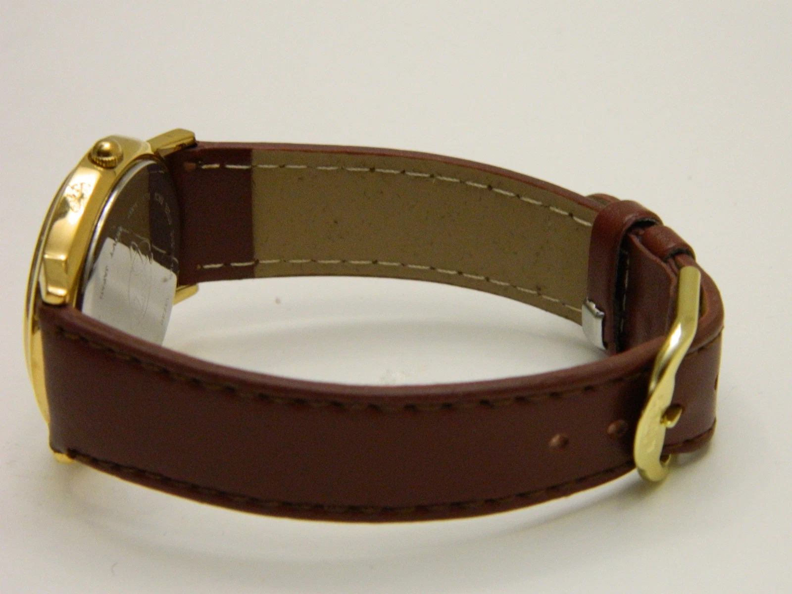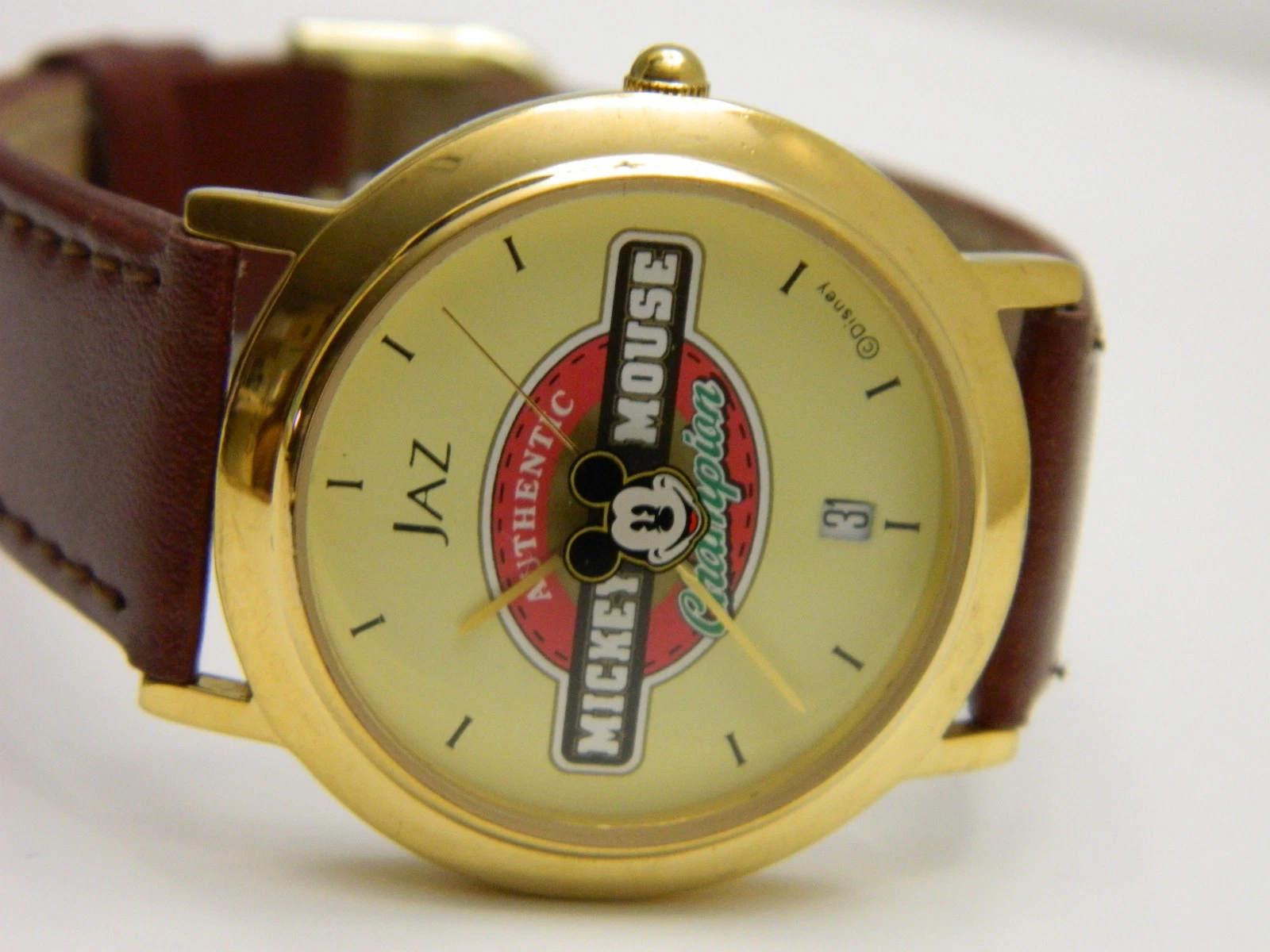 NEW MICKEY CHAMPION WATCH / DATE /NEW BATTERY/ GOLD TONE CASE/LEATHER BAND