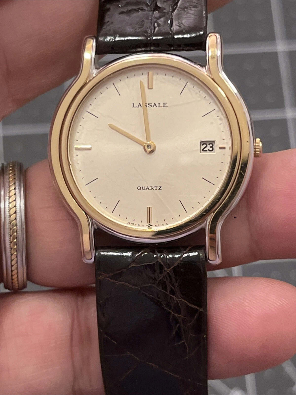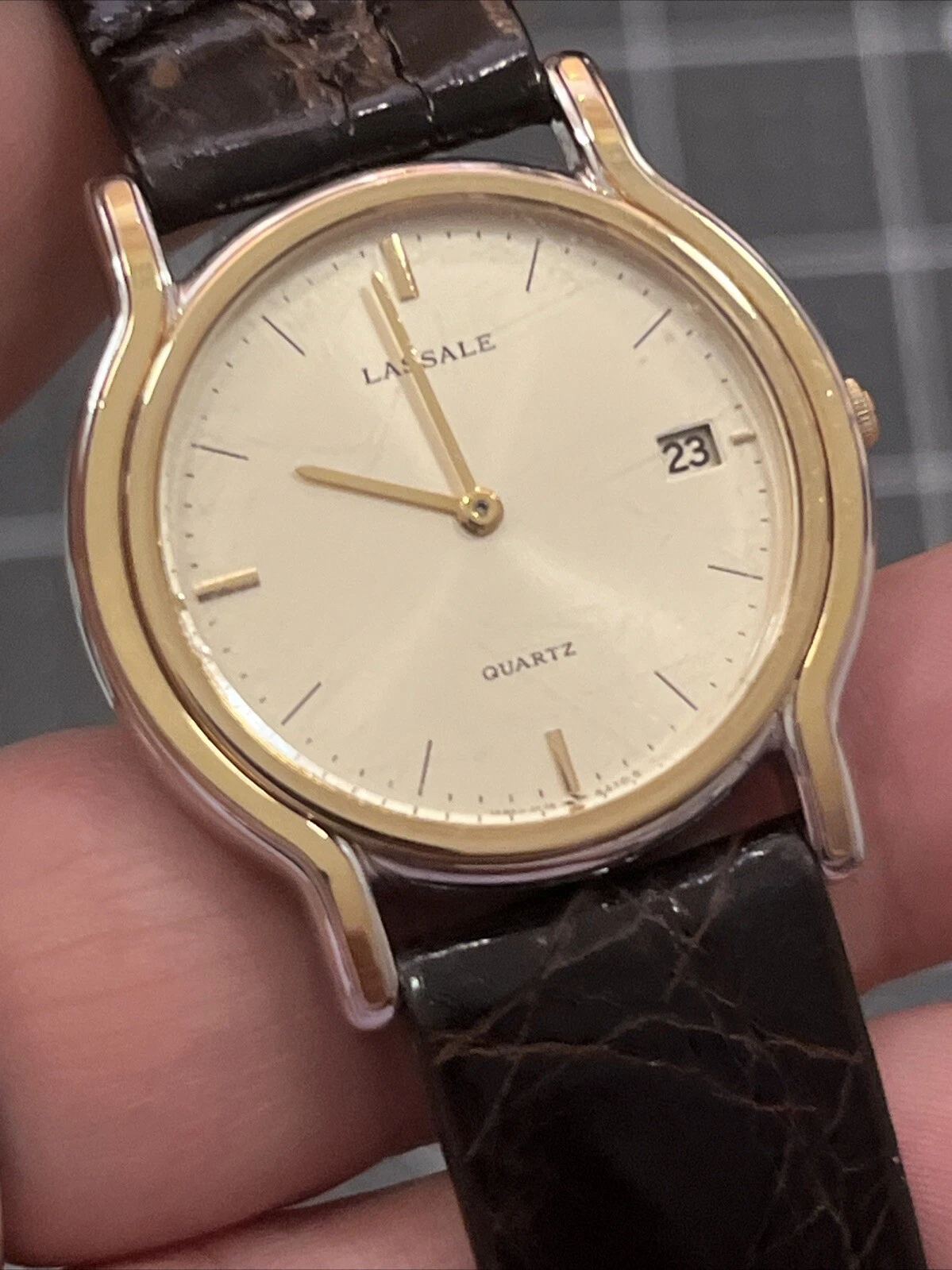 Lassale by Seiko Two-Tone Men’s Ladies 5L14-6A10 Leather Watch New Battery