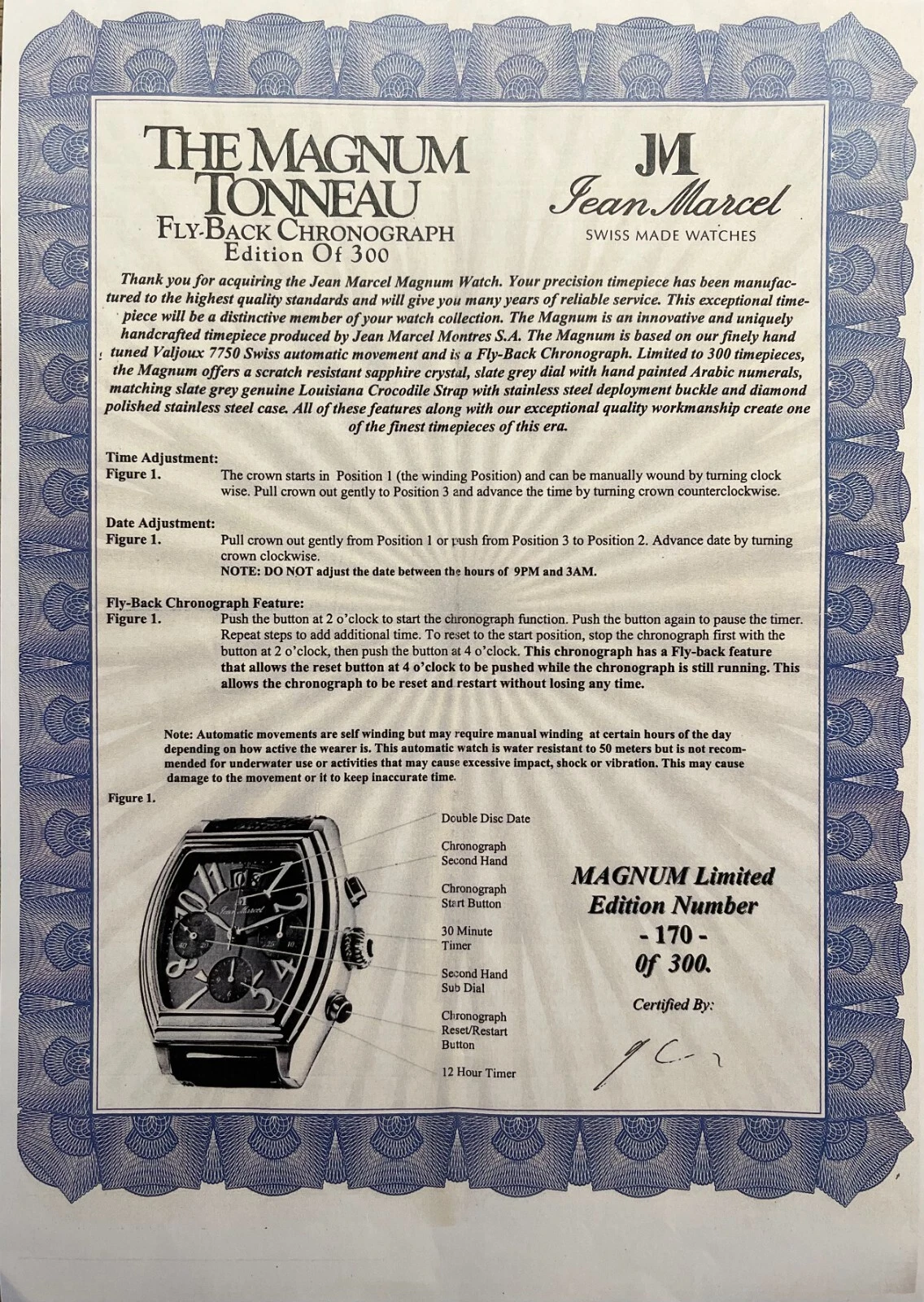 Watch Men Jean Marcel Magnum tonneau fly back chronograph limited edition