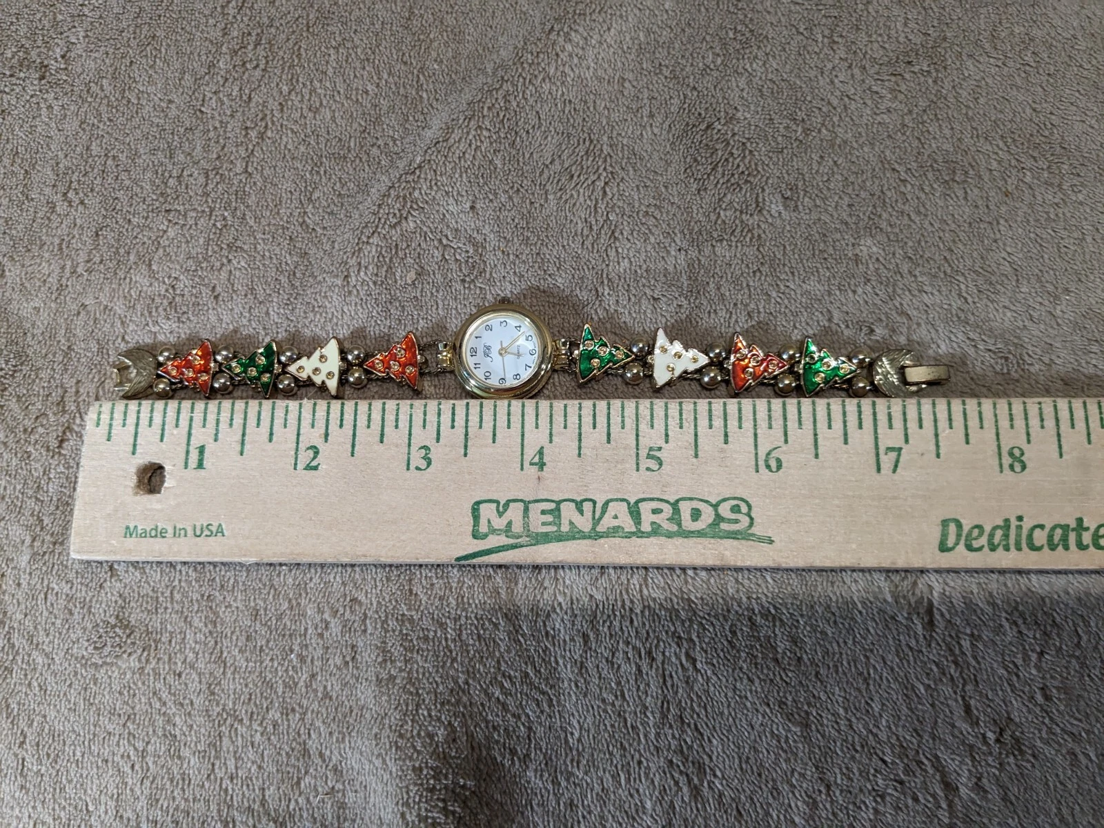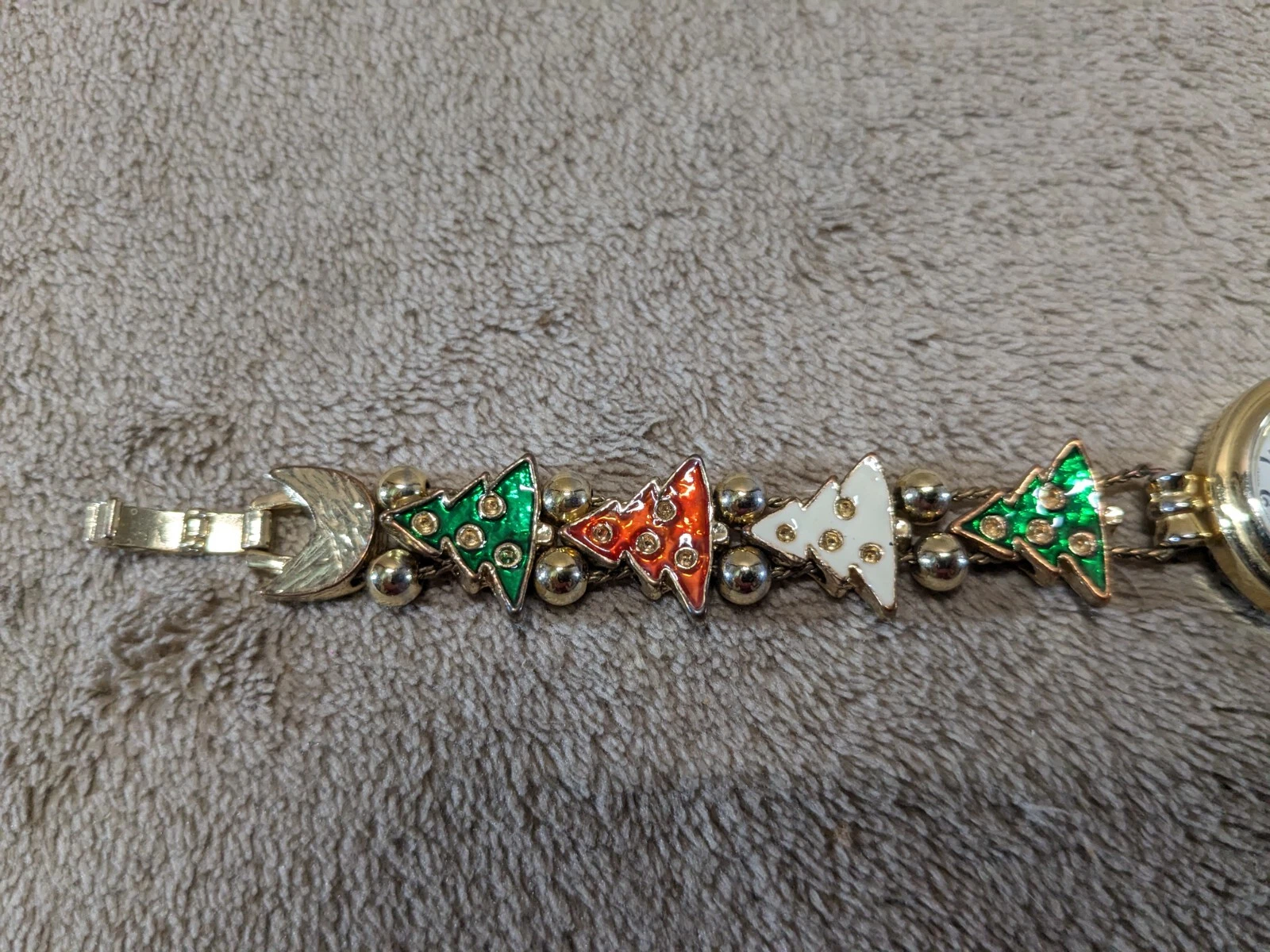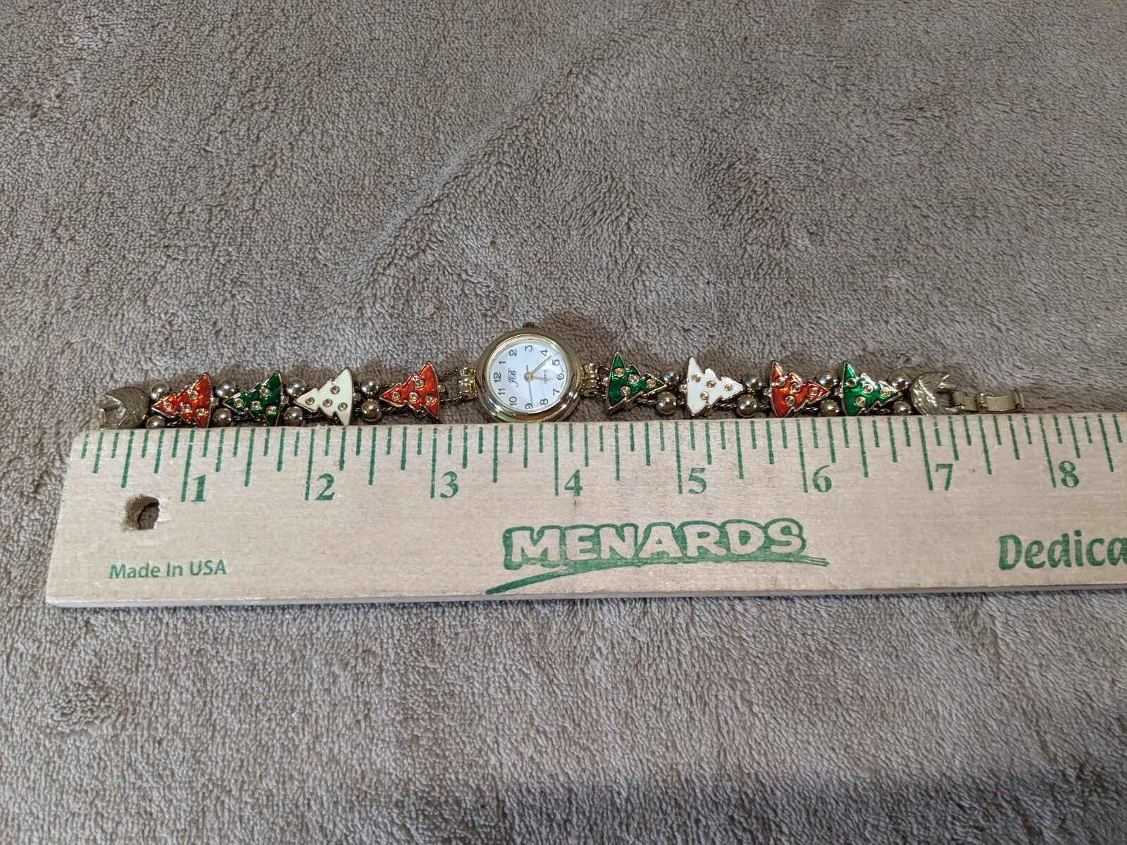 Jennie B Watch Women 24mm Christmas Tree Slide Charm Bracelet Green White Red