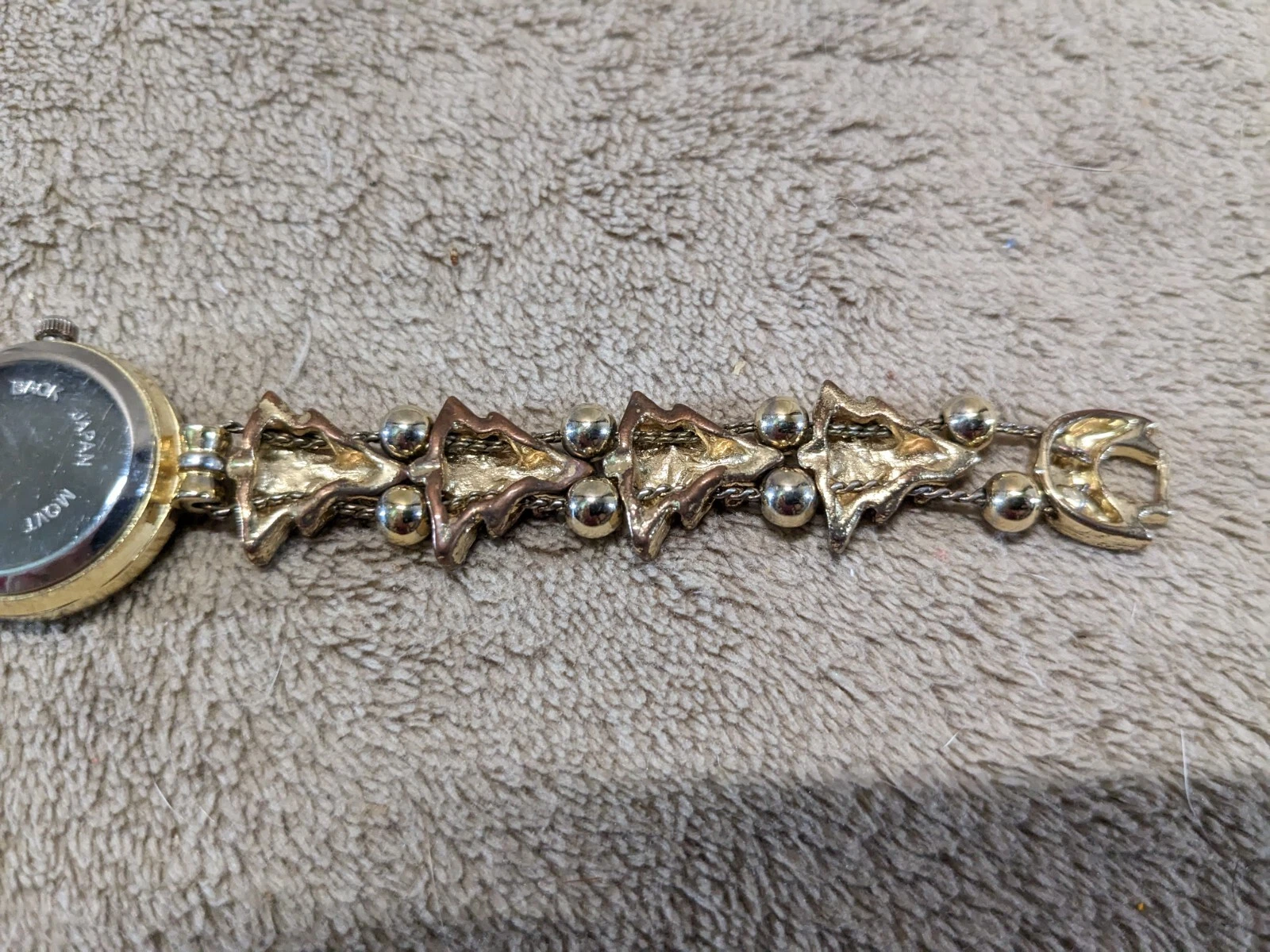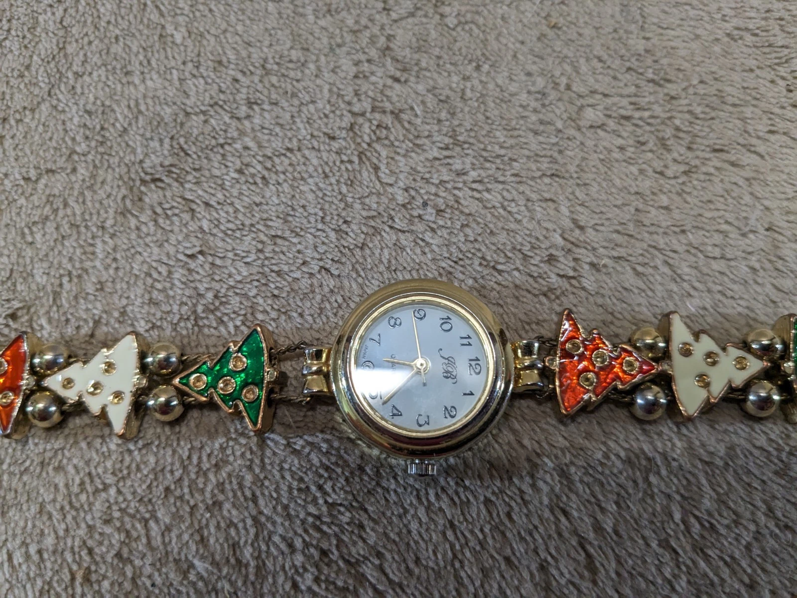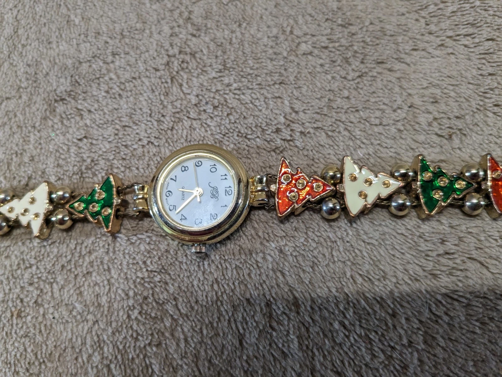 Jennie B Watch Women 24mm Christmas Tree Slide Charm Bracelet Green White Red