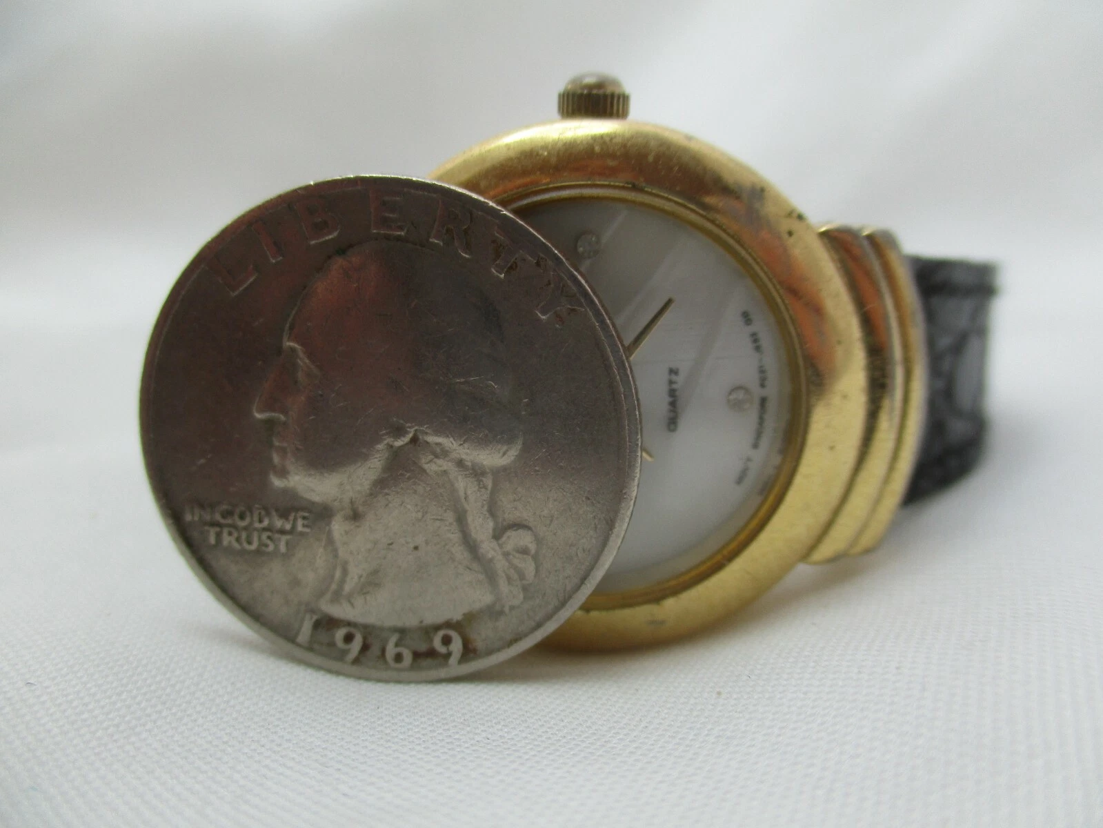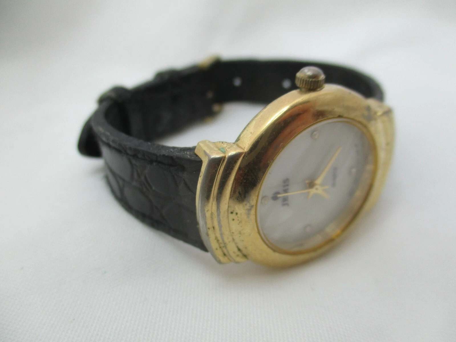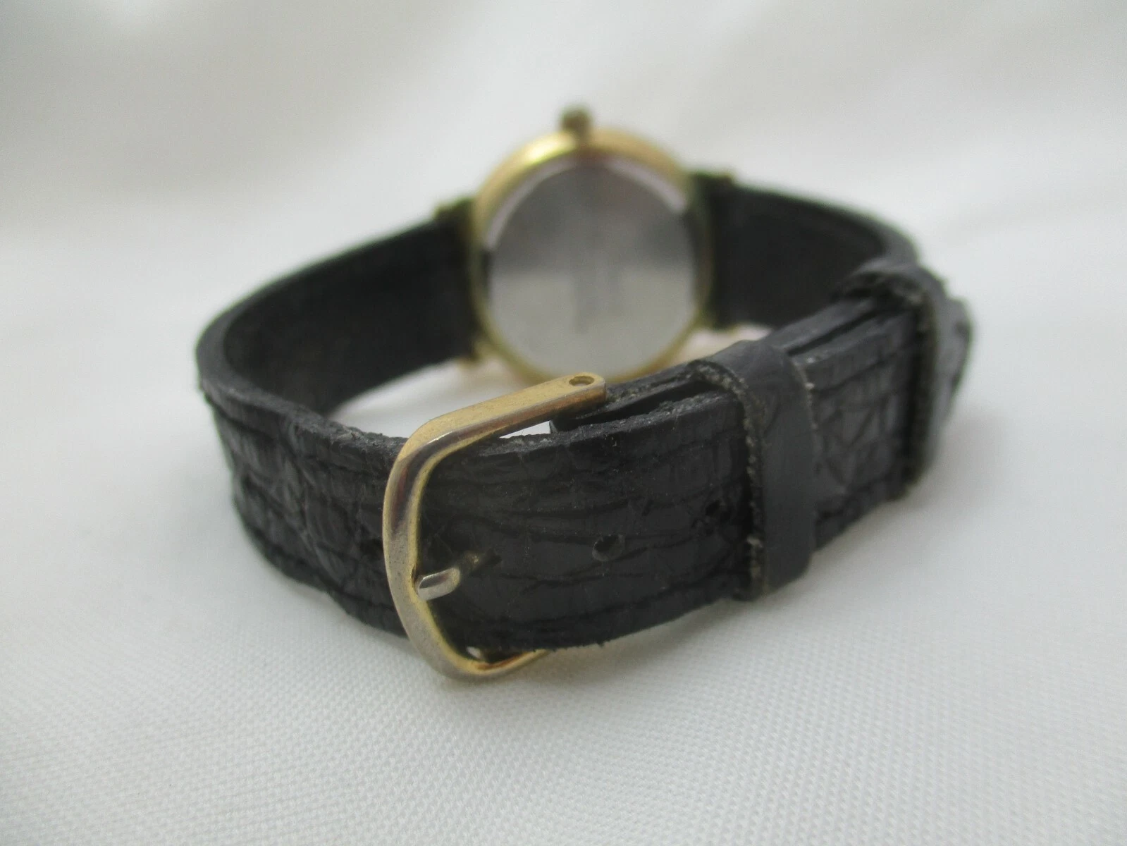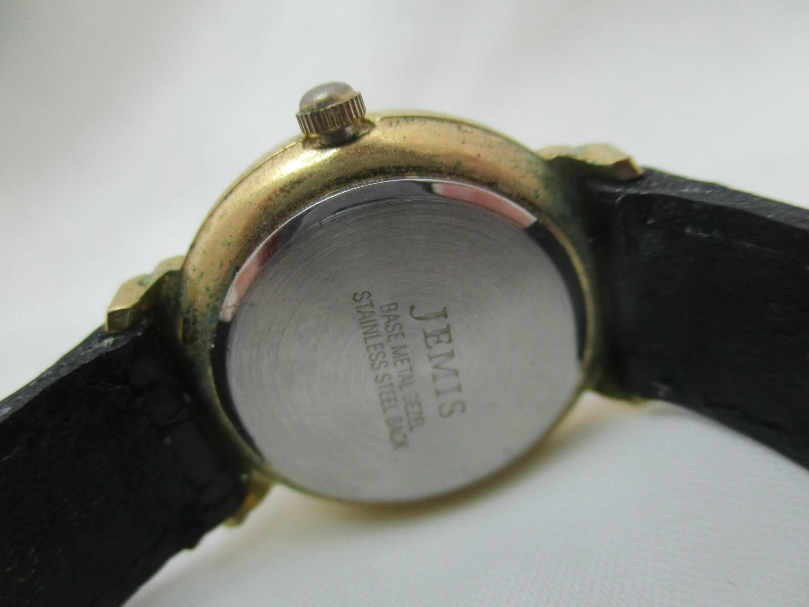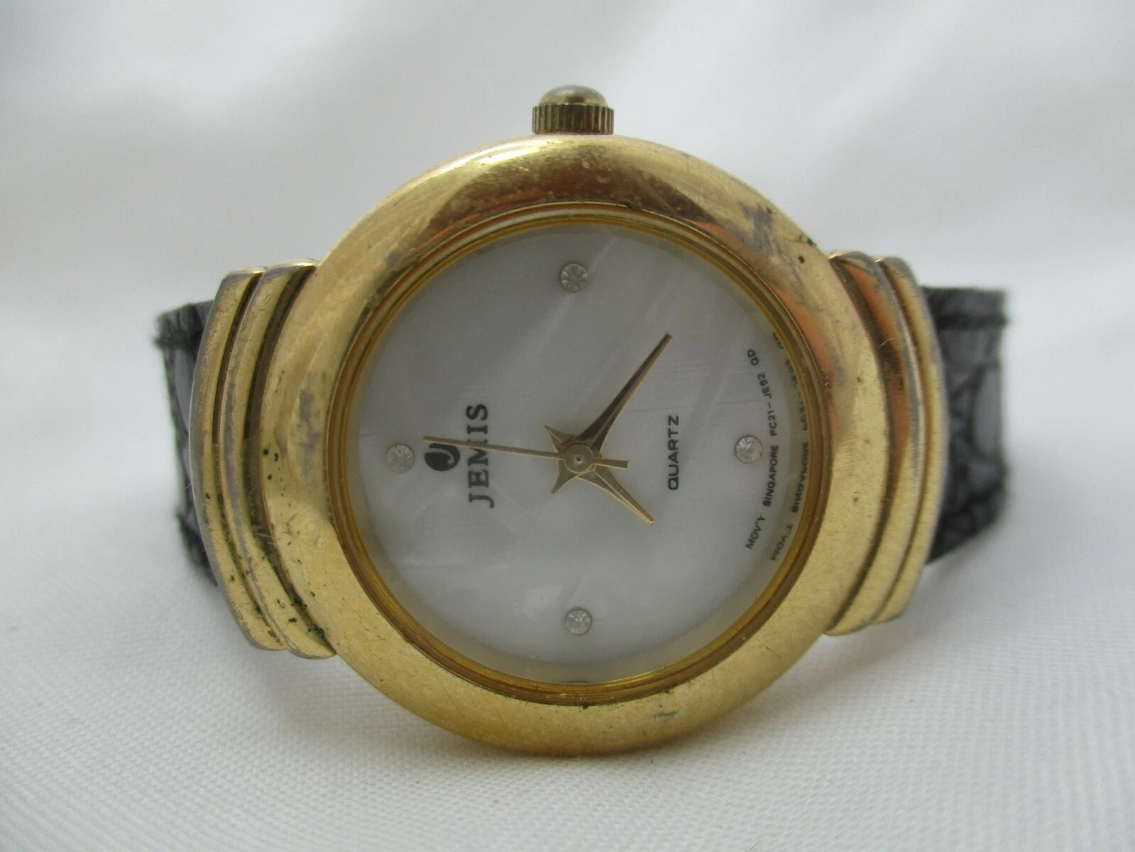 Jemis Analog Wristwatch Black Buckle Band Gold Tone Round White Face