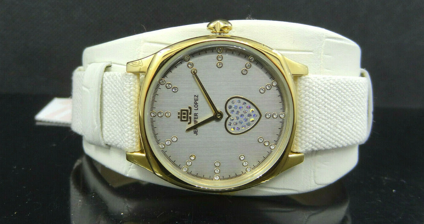 Jennifer Lopez JL/2416SVWT White Band Crystal Accented Dial Women's Watch $95