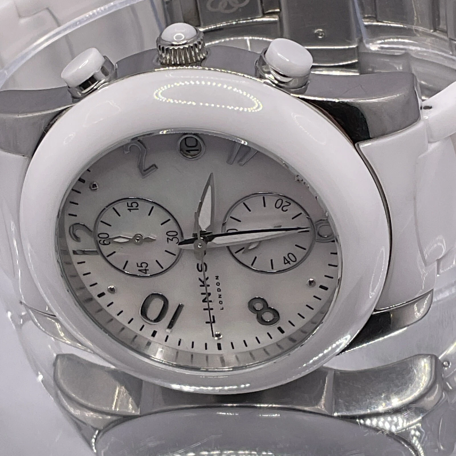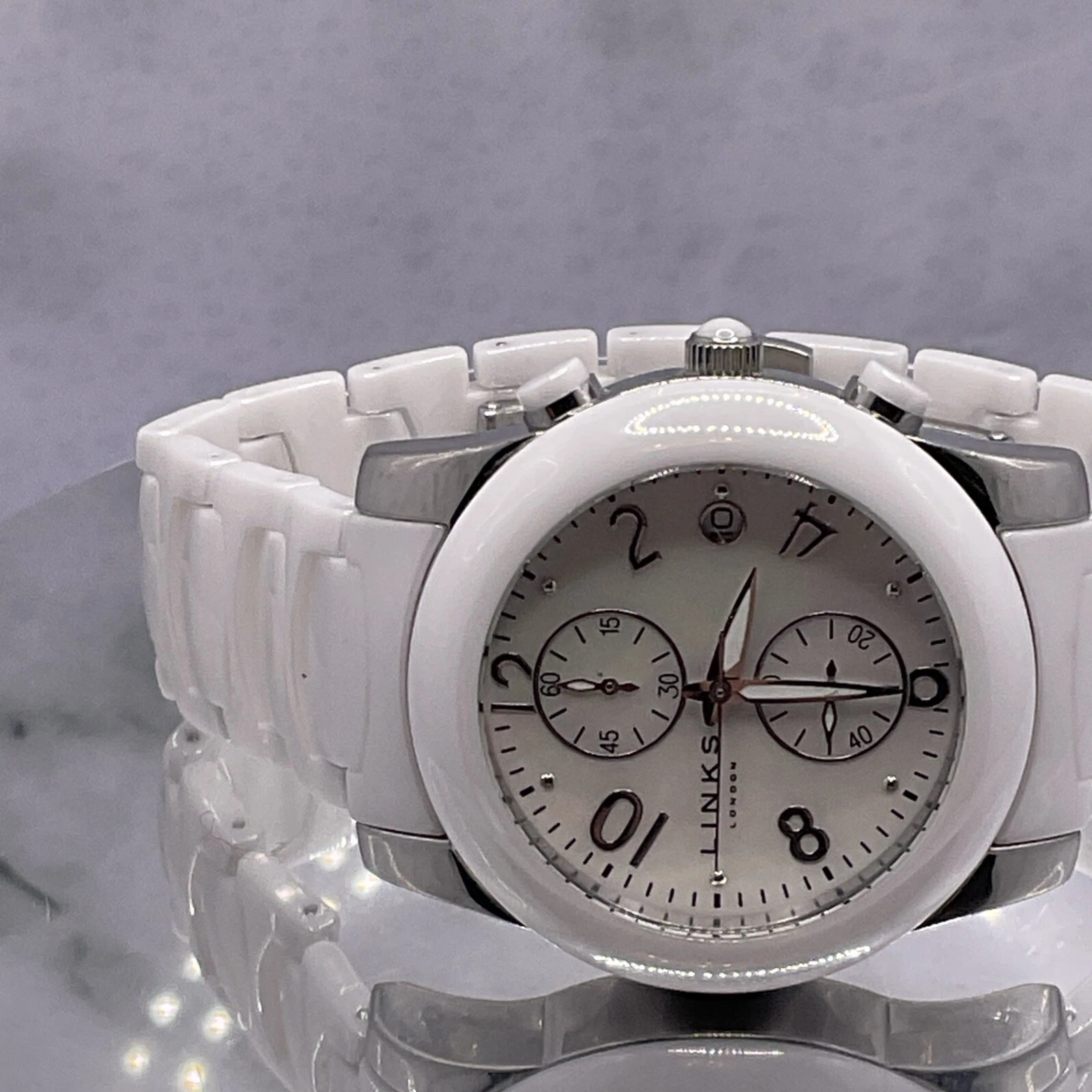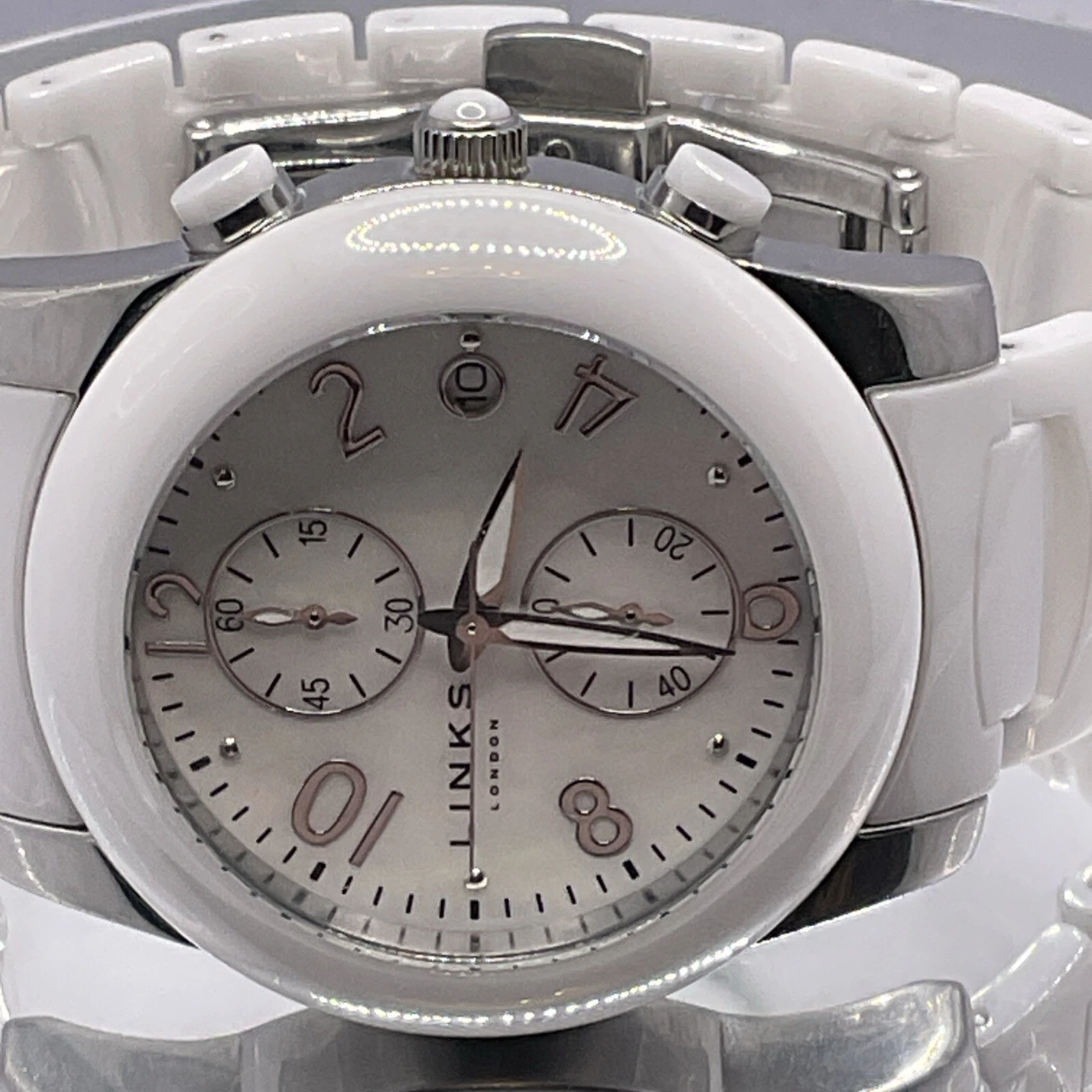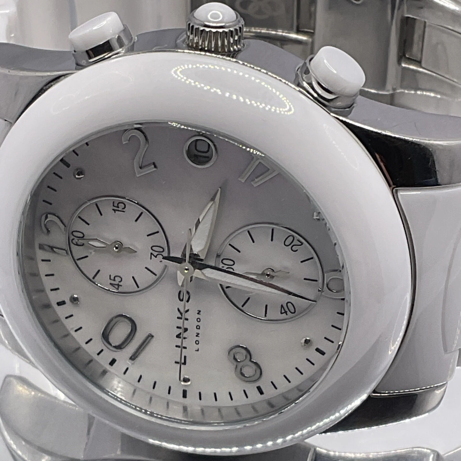 Links of London White Chronograph Ceramic Watch 6030.0382, Unisex. New Battery.