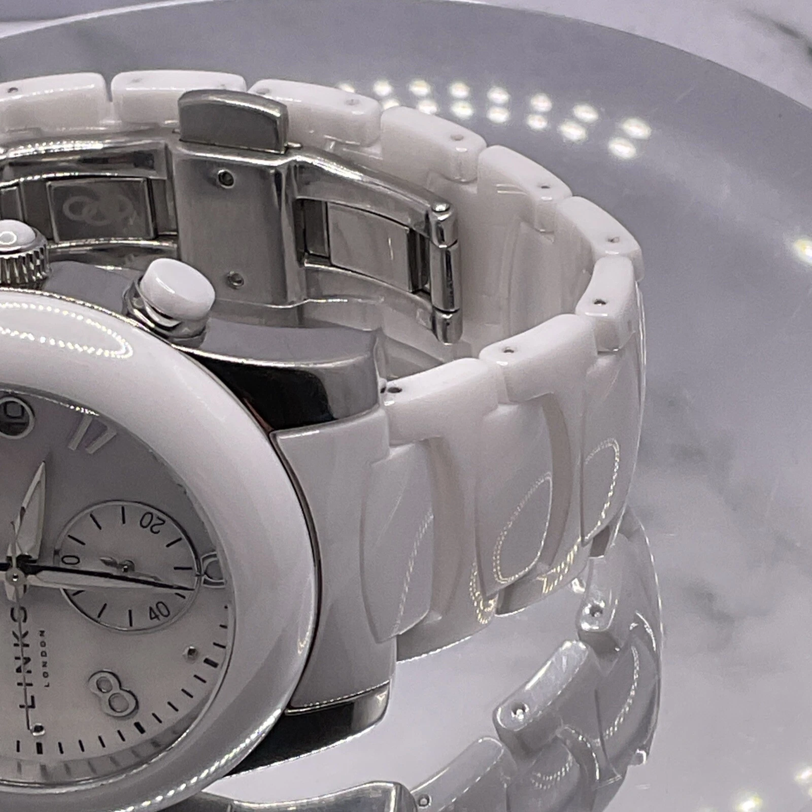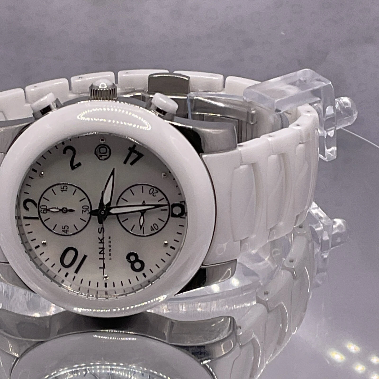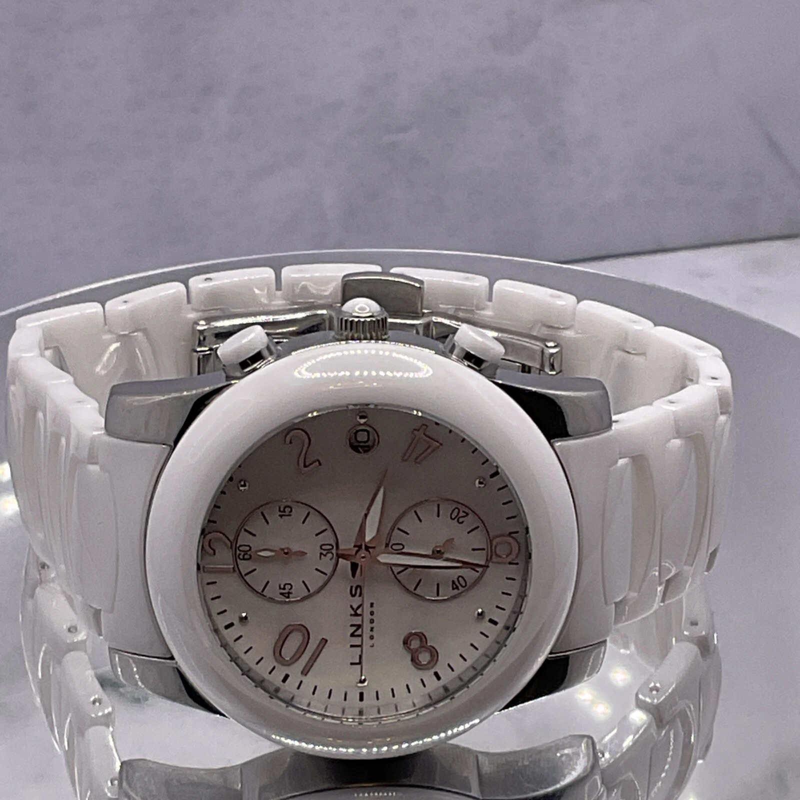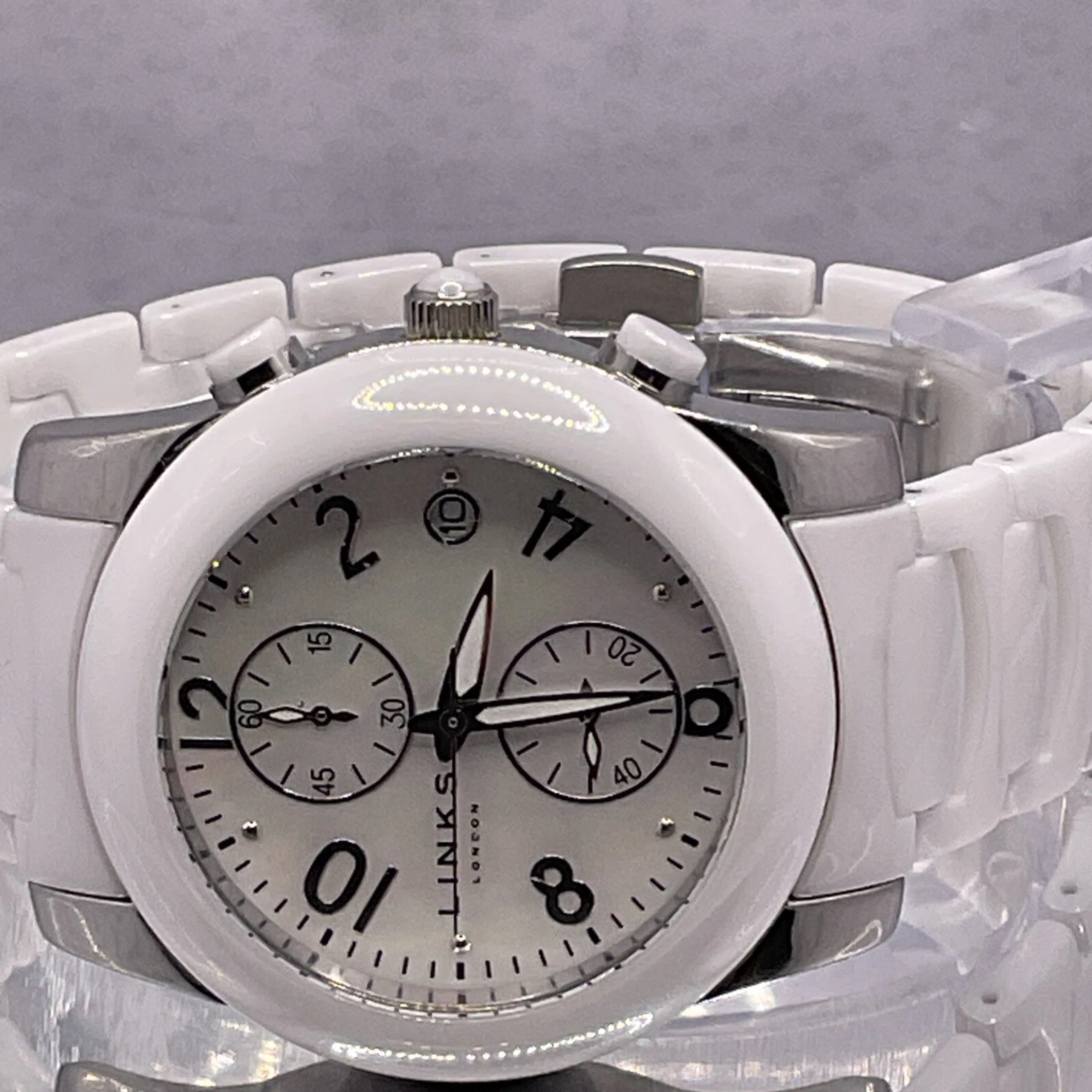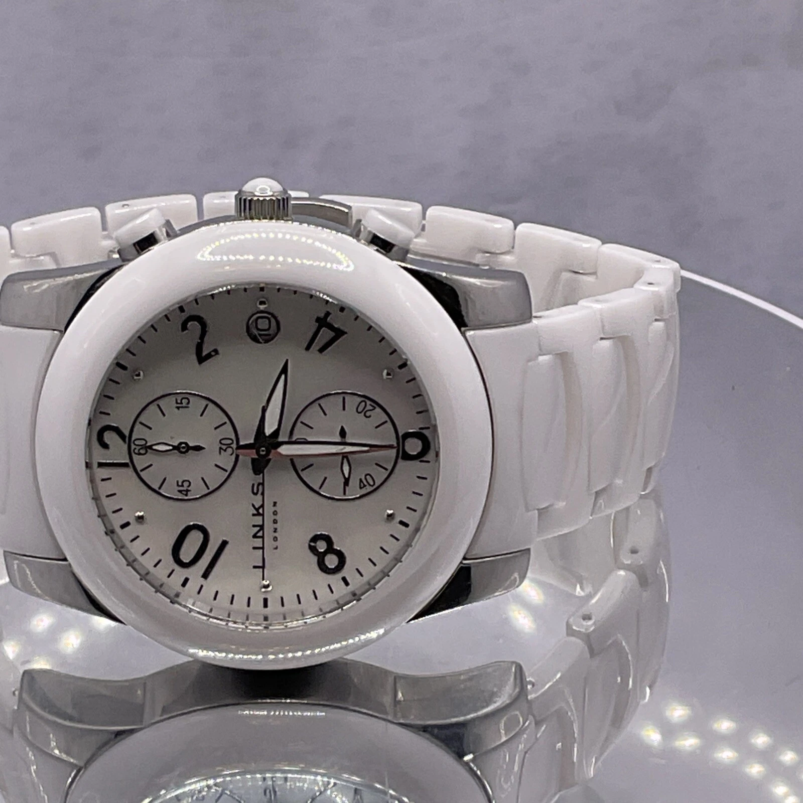 Links of London White Chronograph Ceramic Watch 6030.0382, Unisex. New Battery.