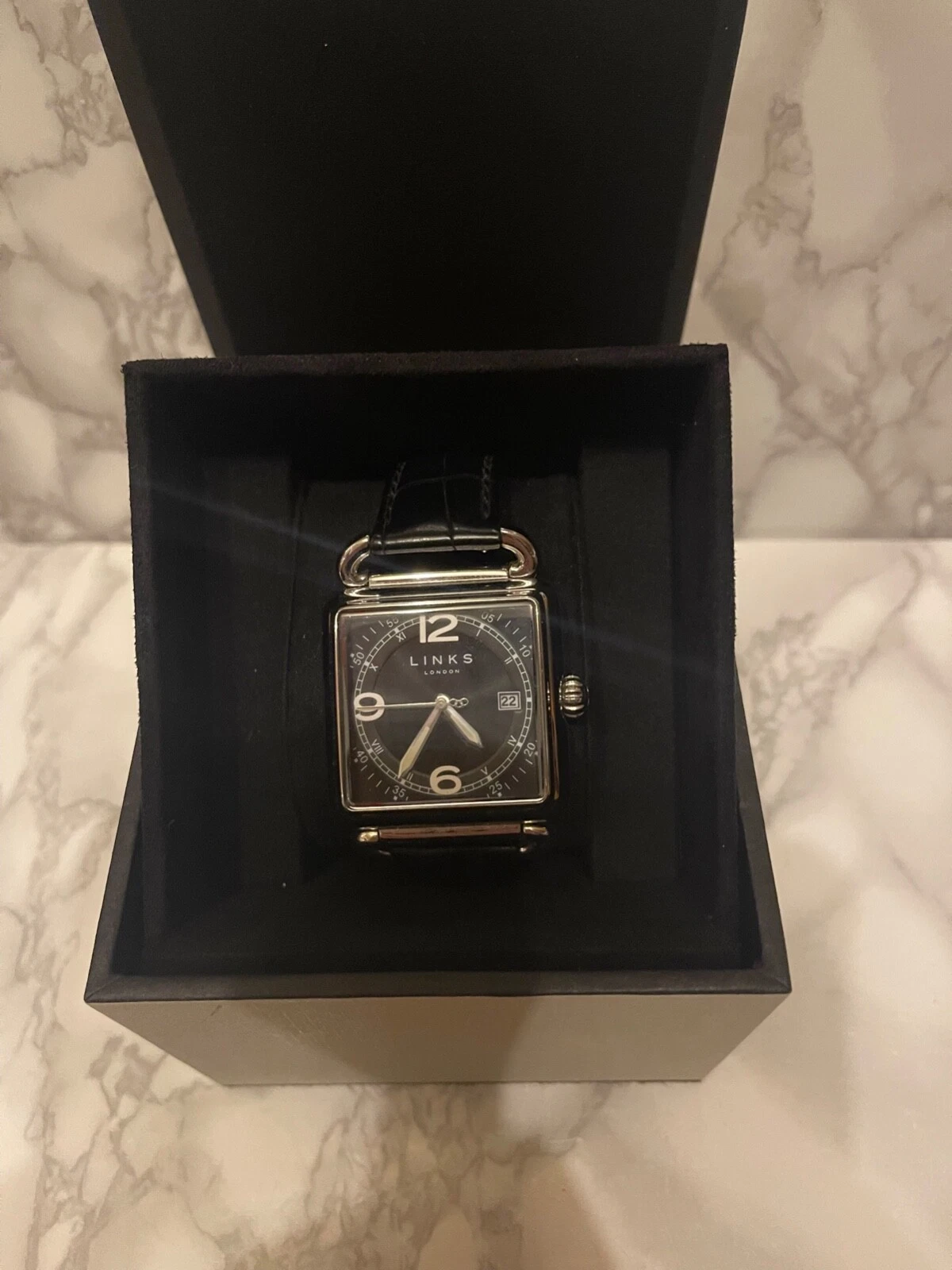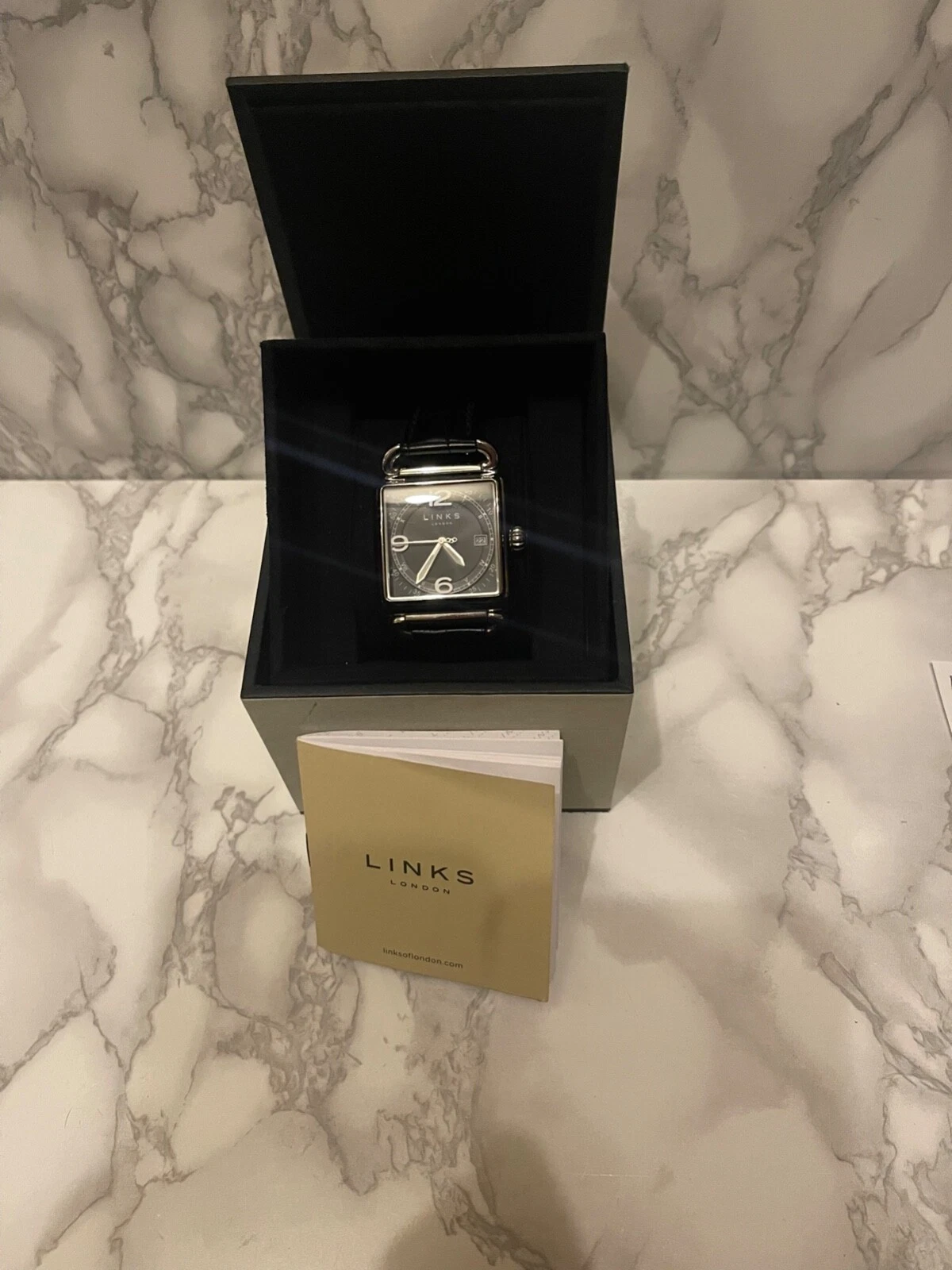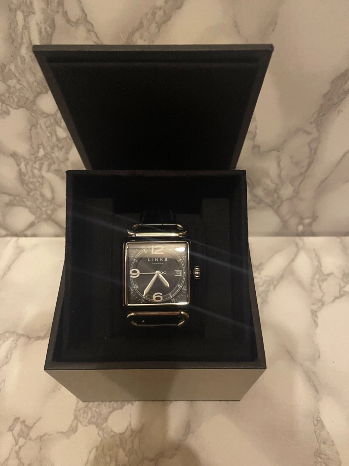 Links Of London Mens Driver Square Stainless Steel Leather Strap Watch