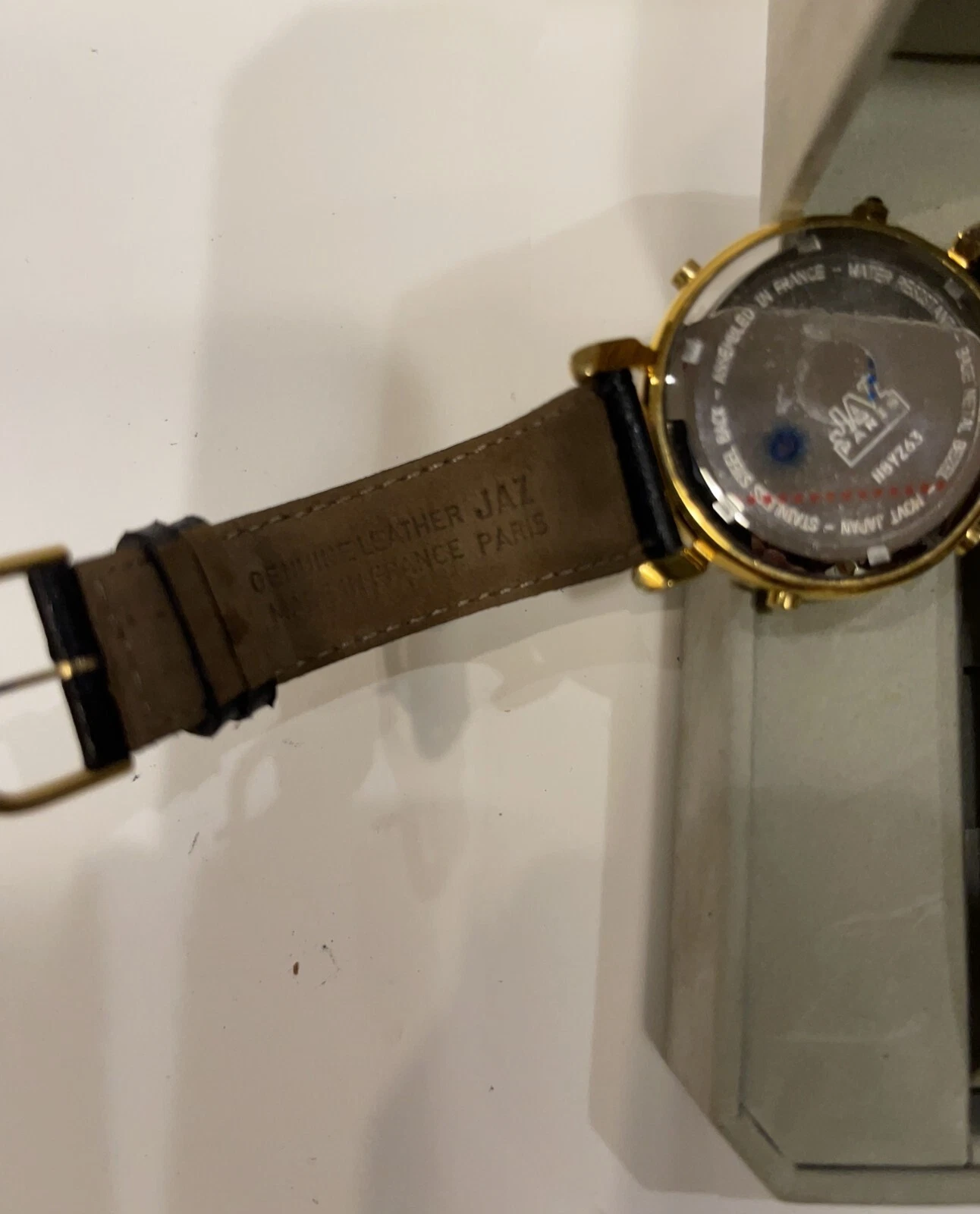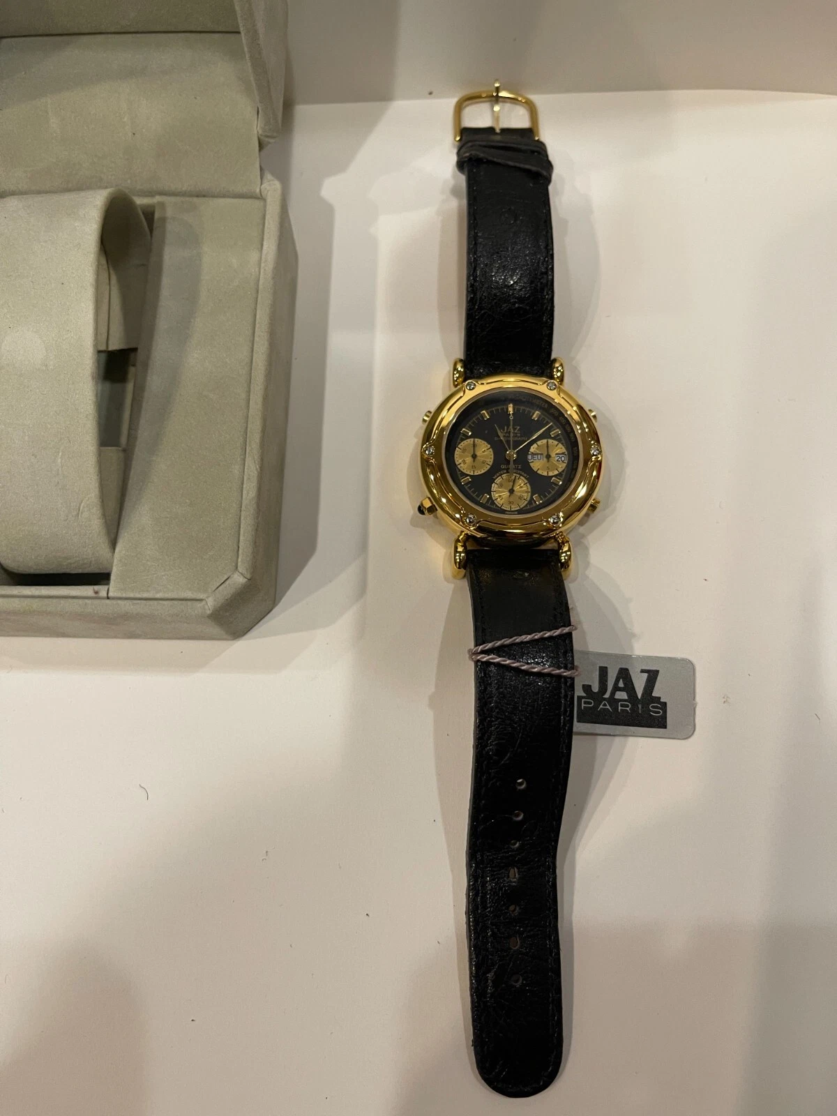 Jaz Paris France Mens Watch Gold Tone Case Analog Black Leather Band Watch