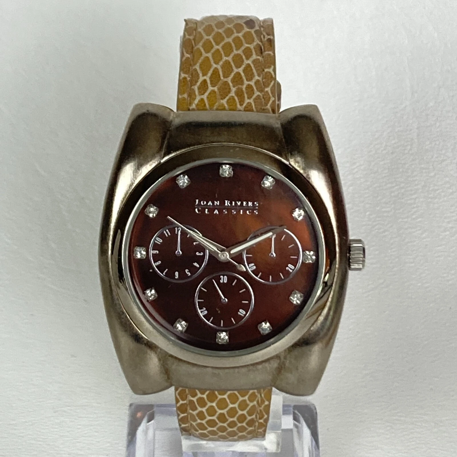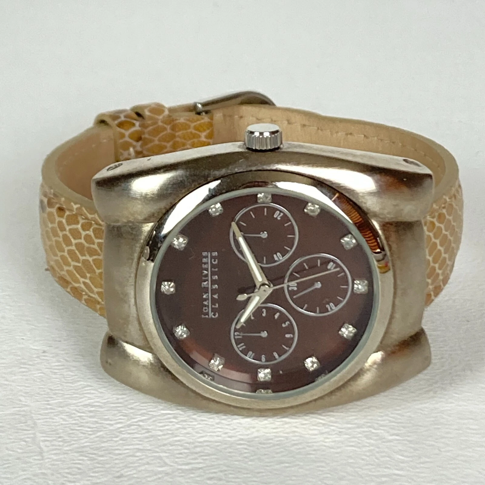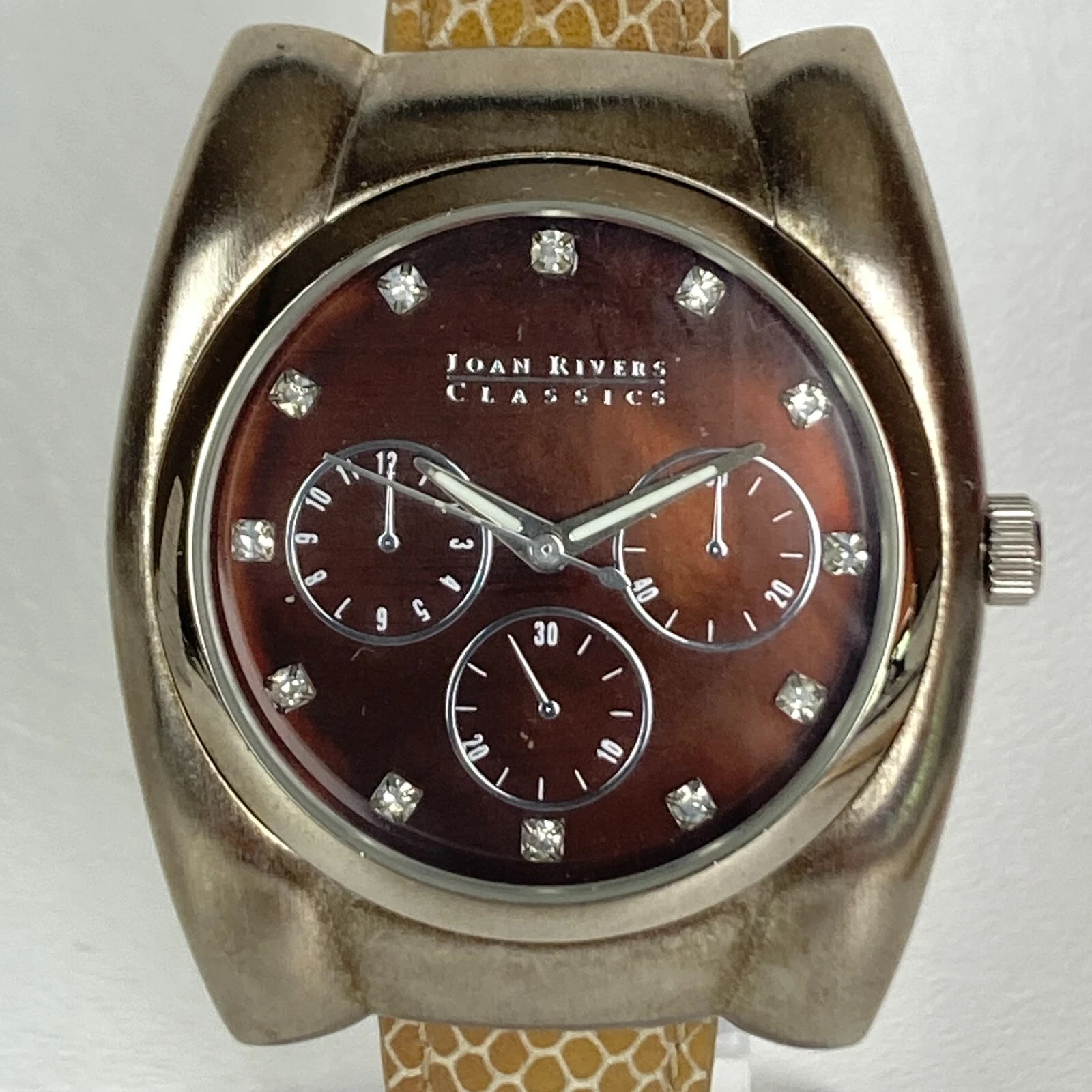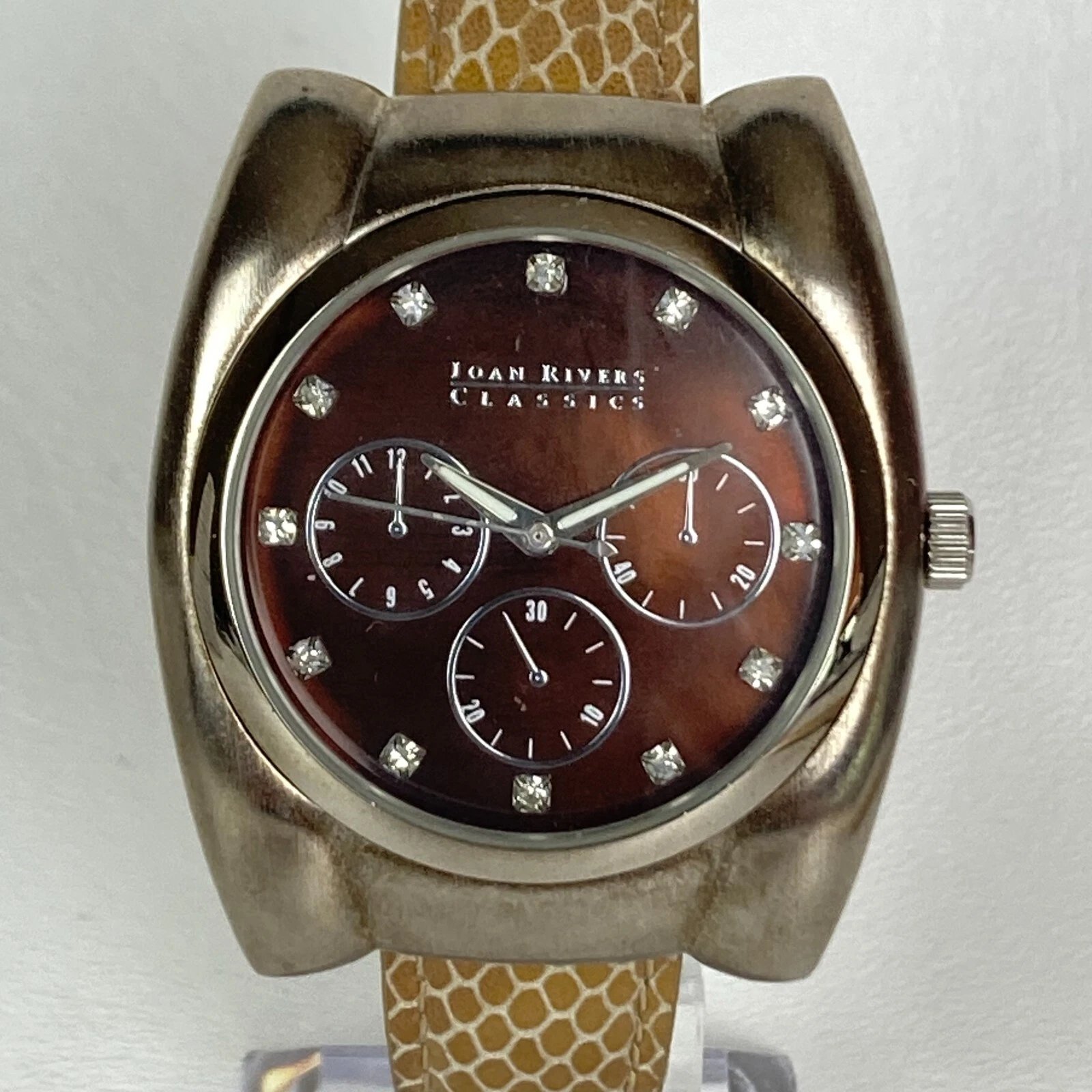 Joan Rivers Classics Watch Women 38mm Silver Tone Brown Dial New Battery 8.5"