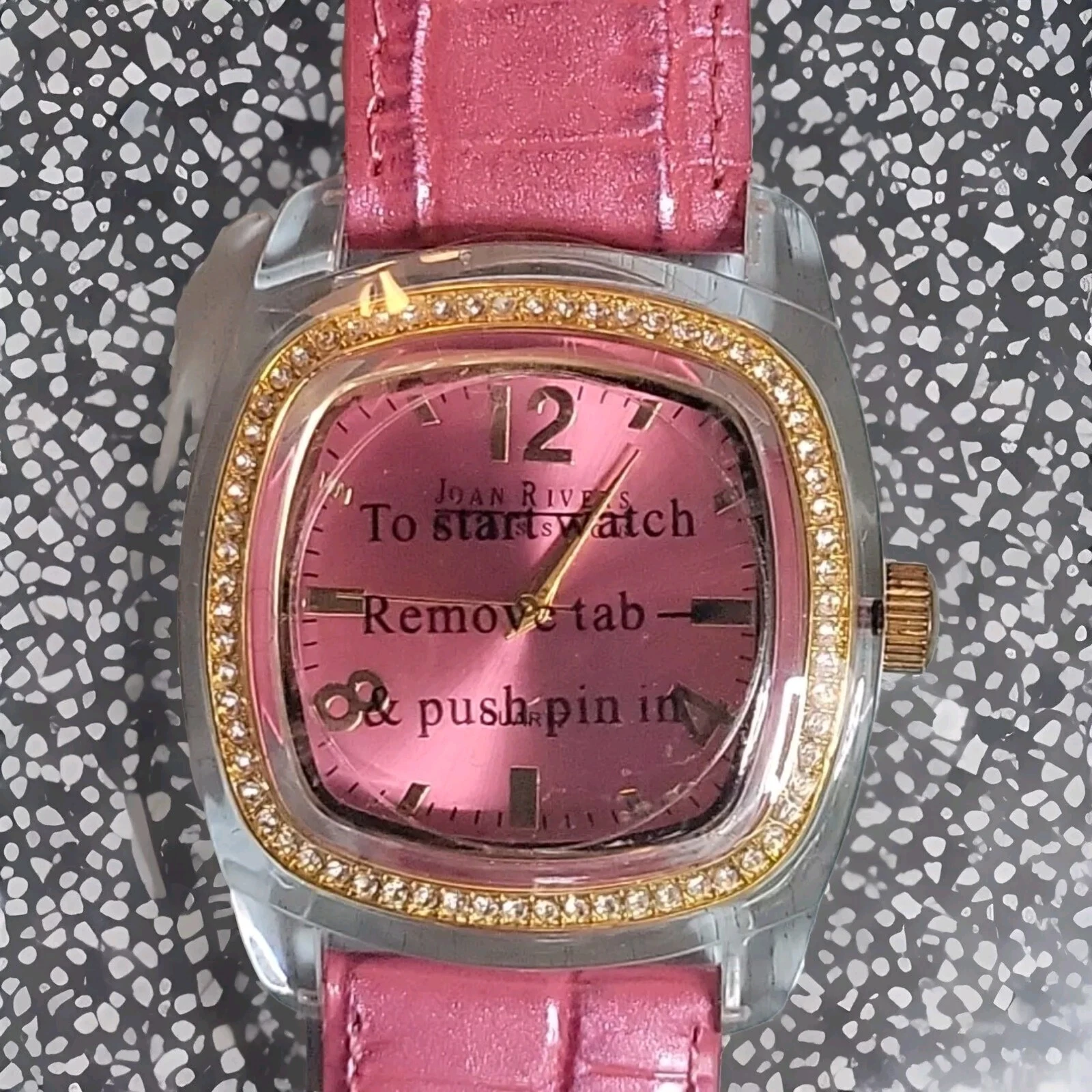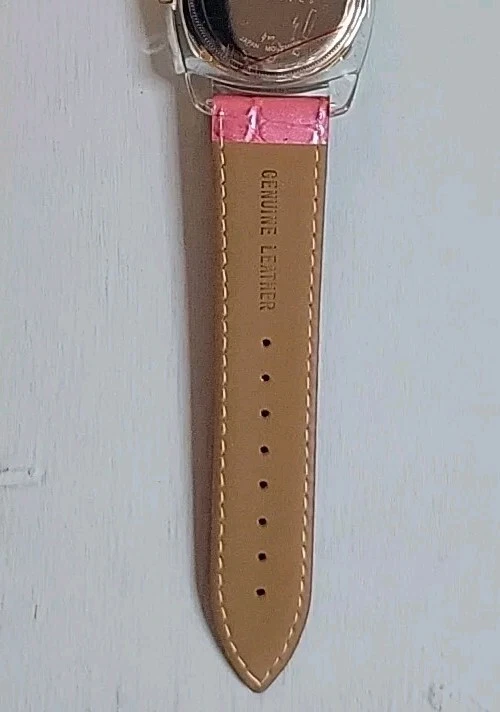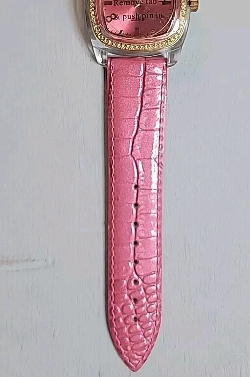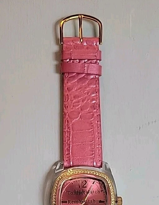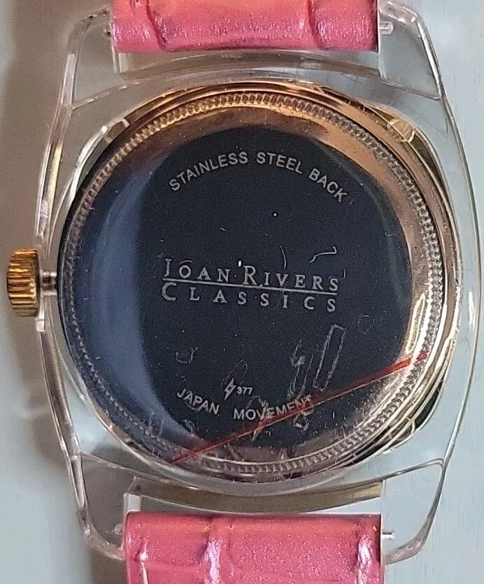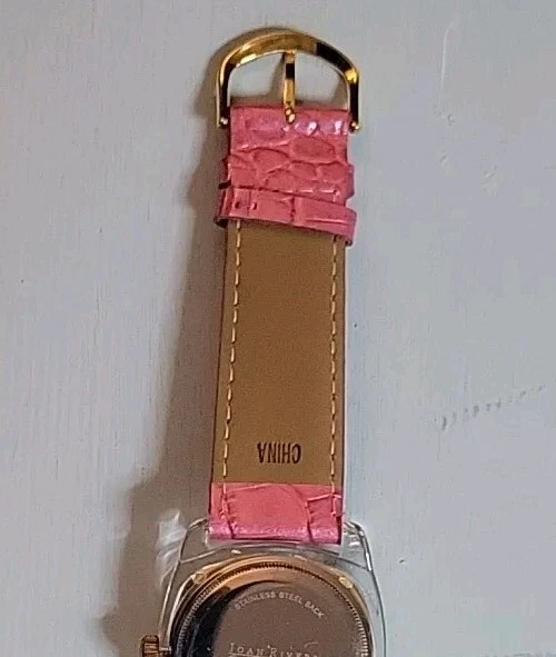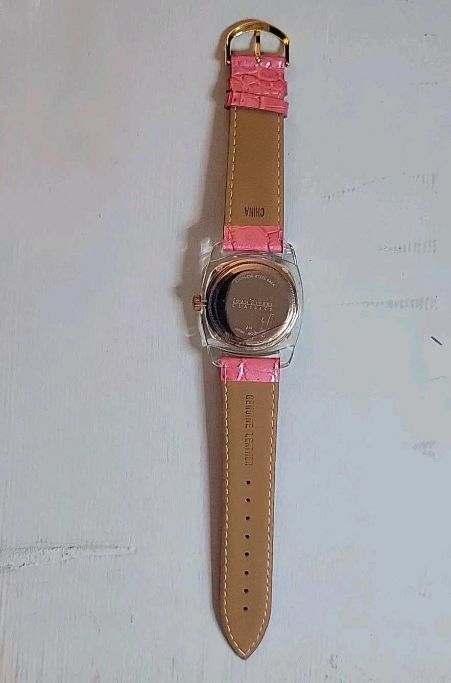 New Joan Rivers Classics Gold Tone Pink Clear Case Crystal Accent Watch Leather