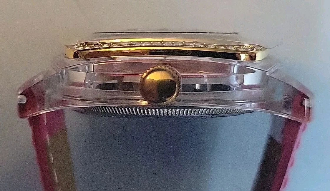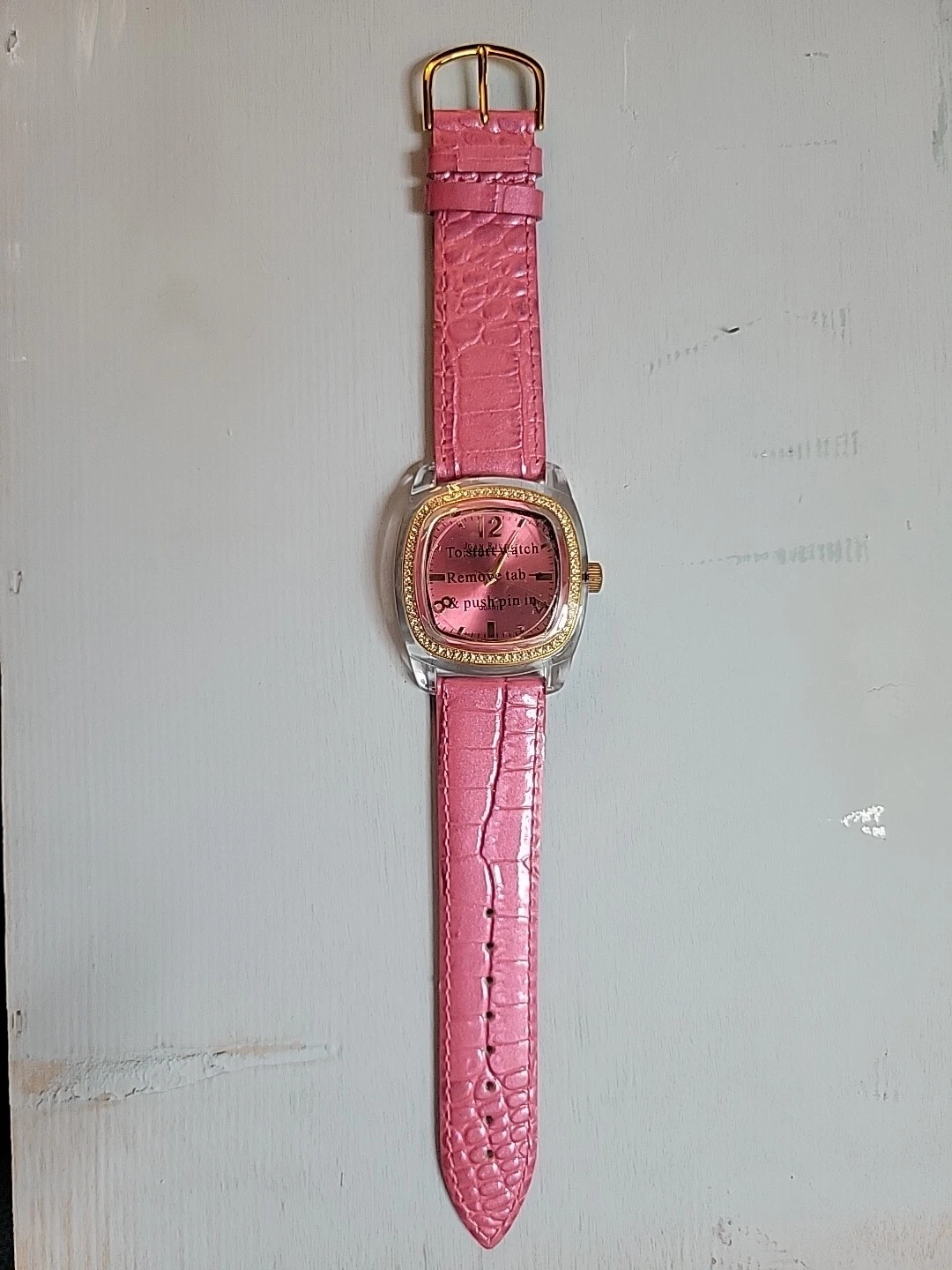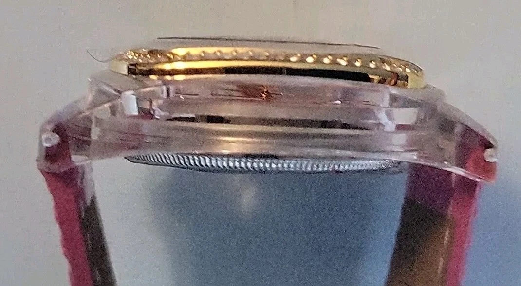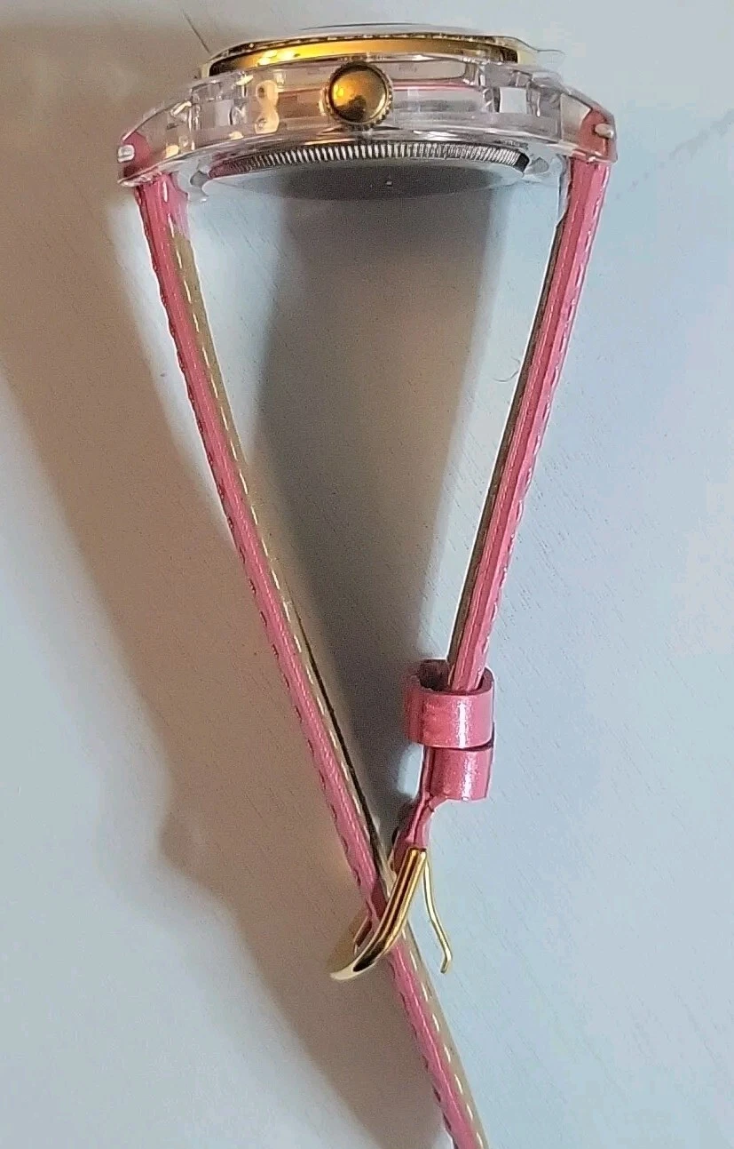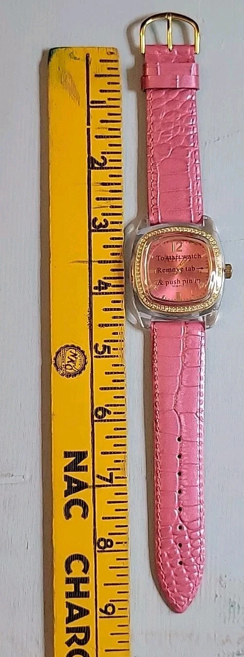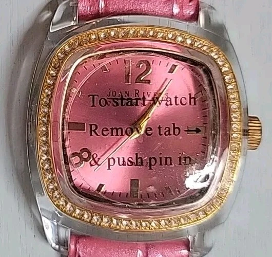 New Joan Rivers Classics Gold Tone Pink Clear Case Crystal Accent Watch Leather