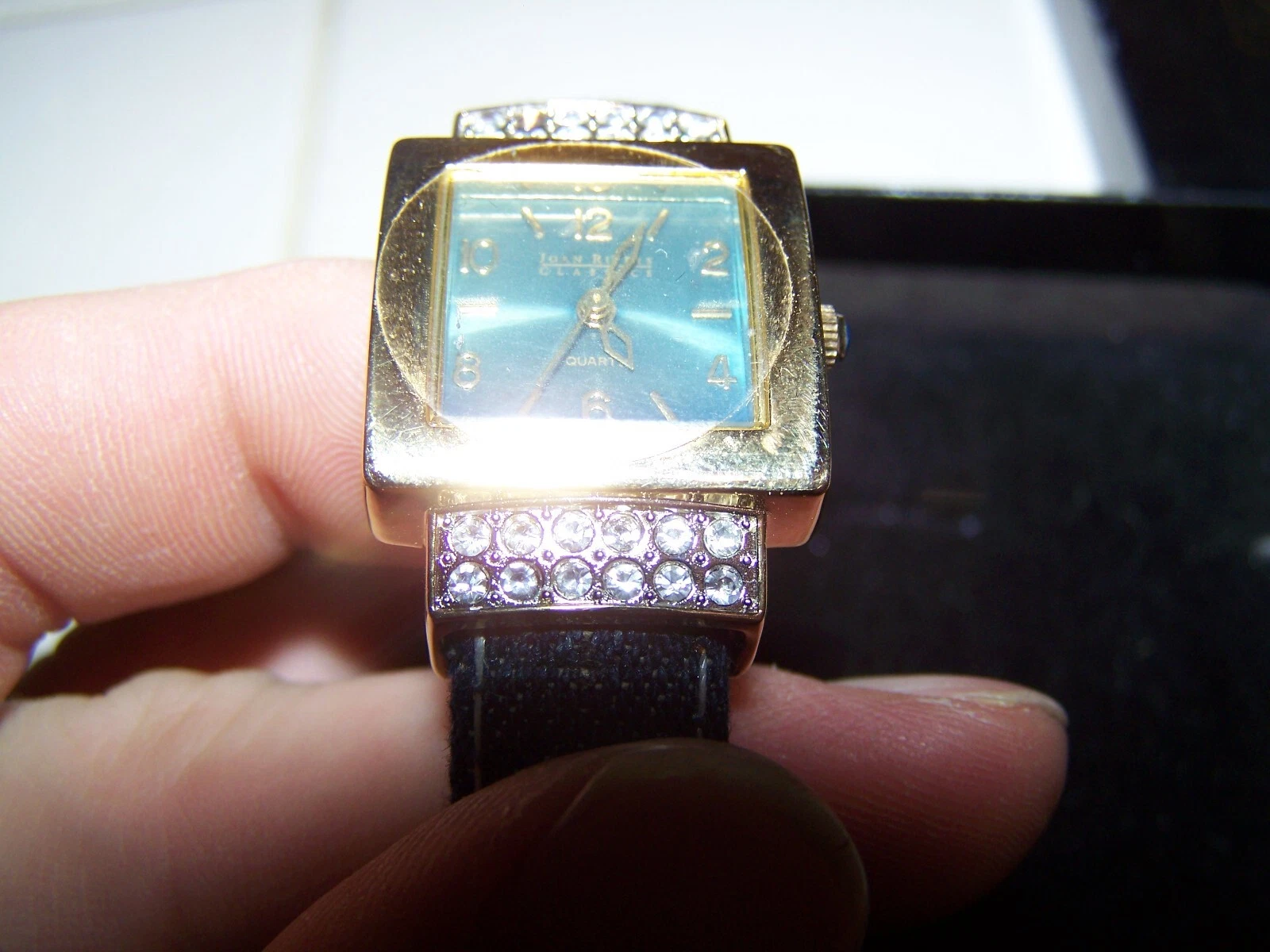 Joan Rivers Cuff Watch Dark Blue Band With Gold And Diamond Tone Accents