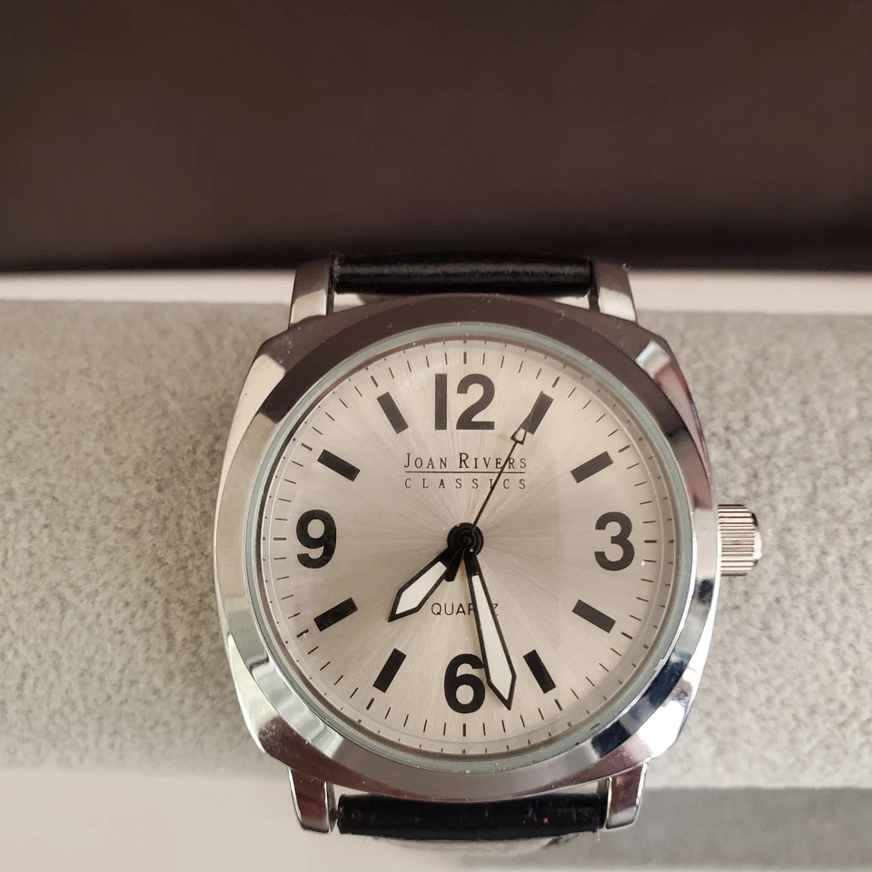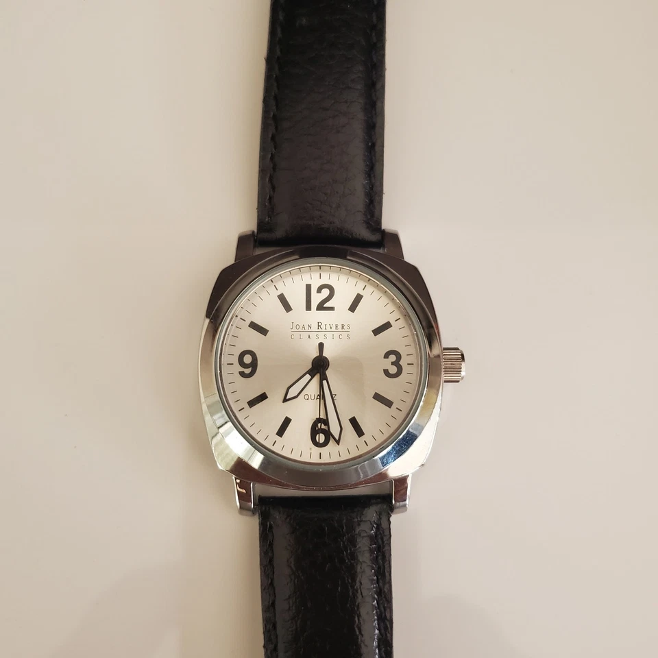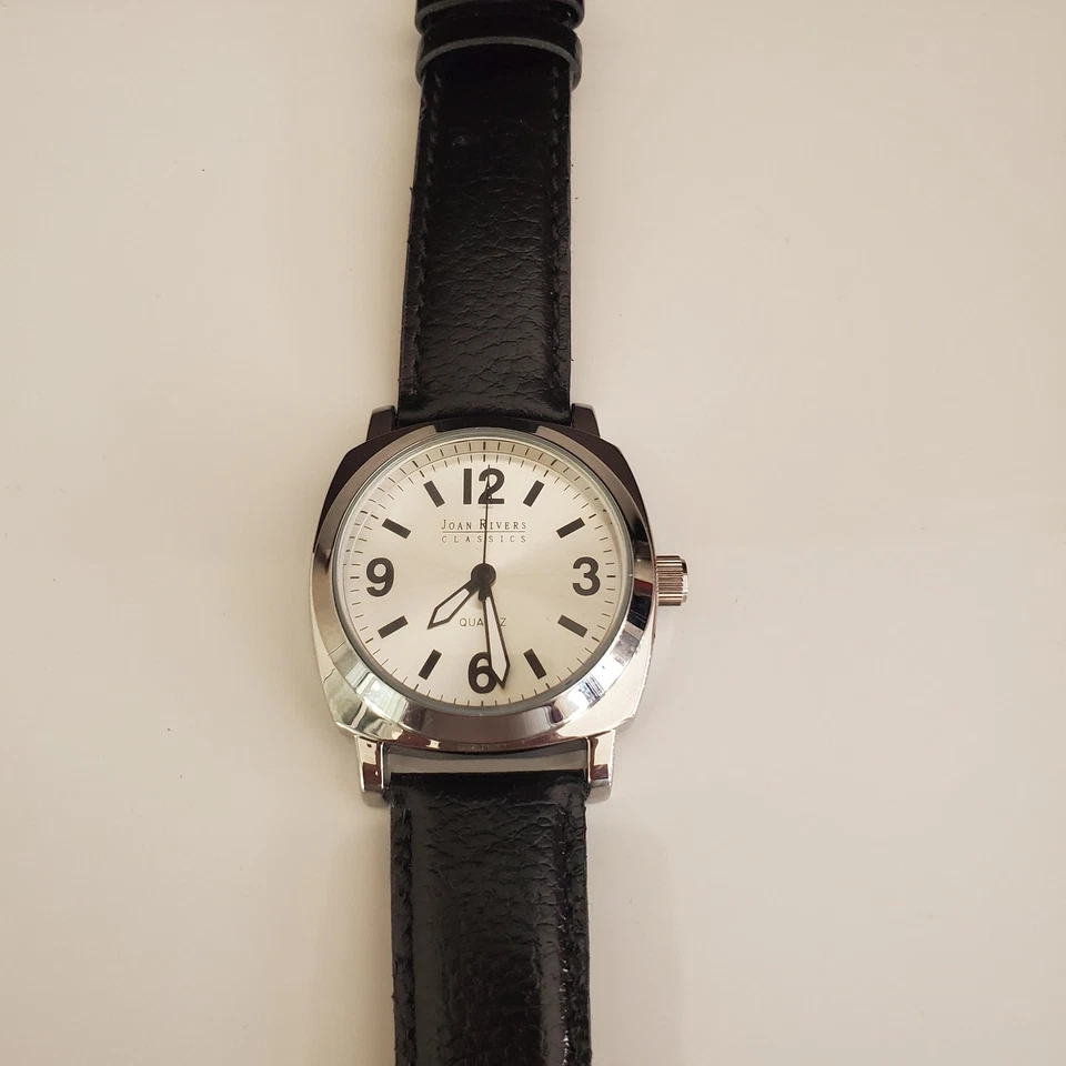 Joan Rivers Classic Women's Watch Silver Tone Black Leather Band Running 40mm