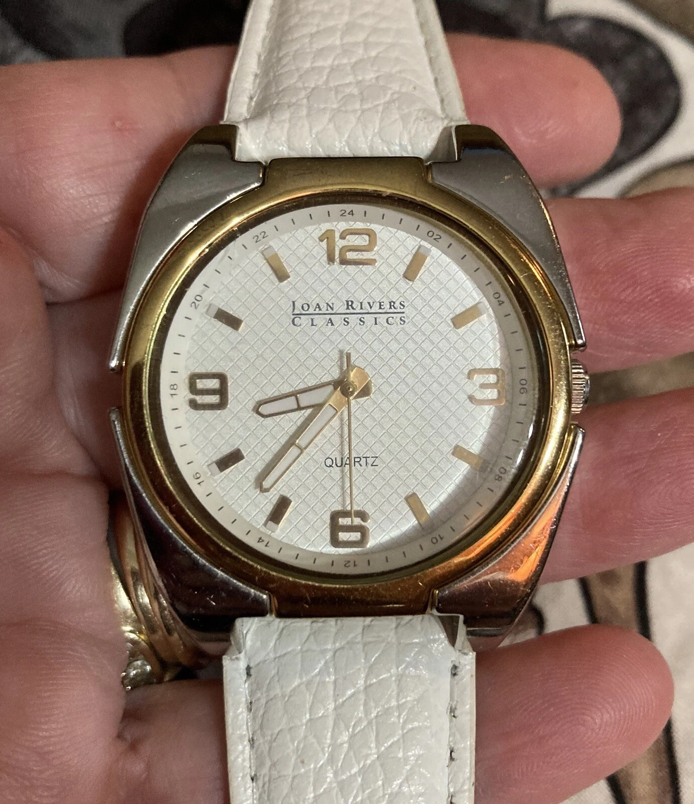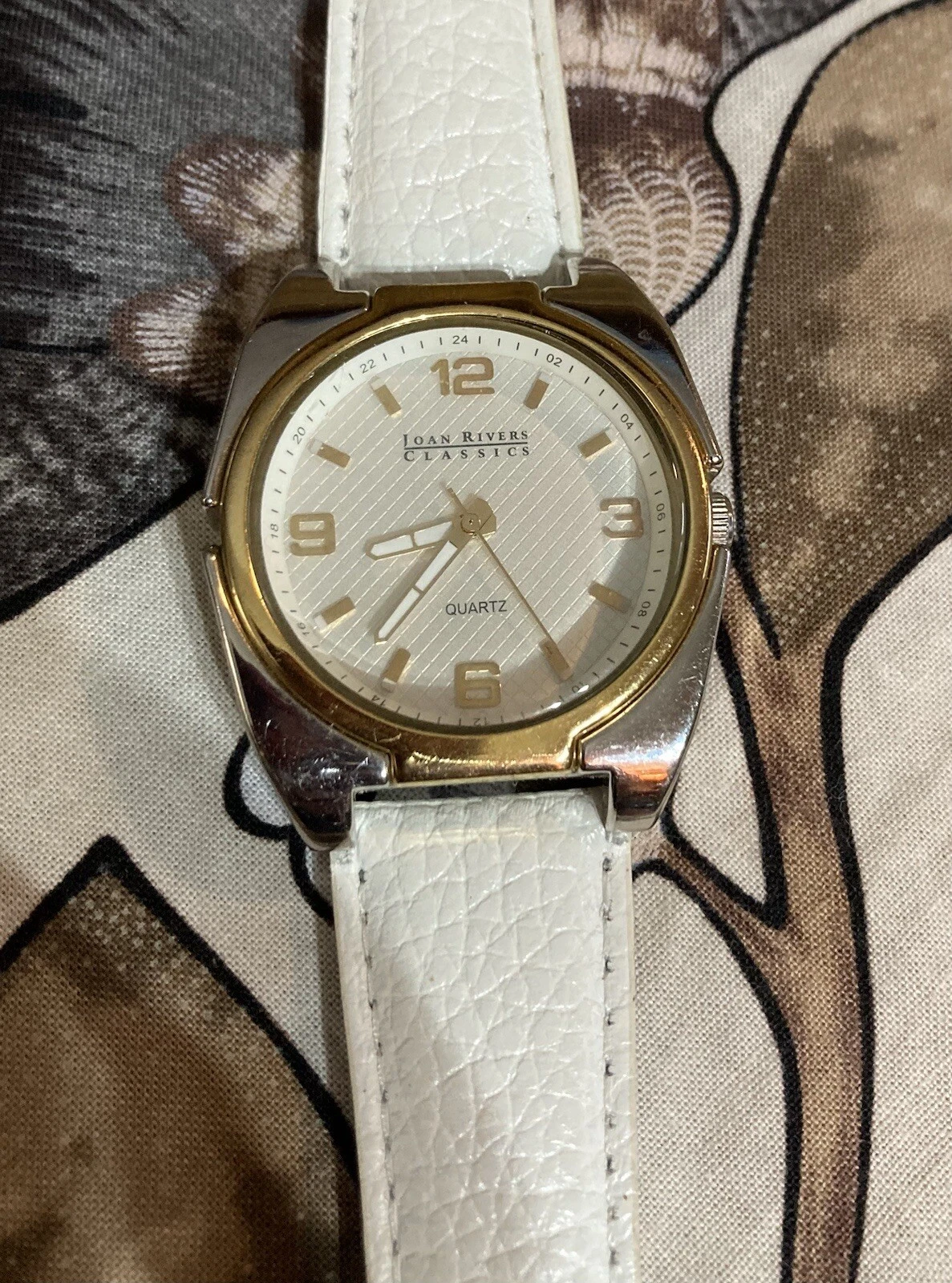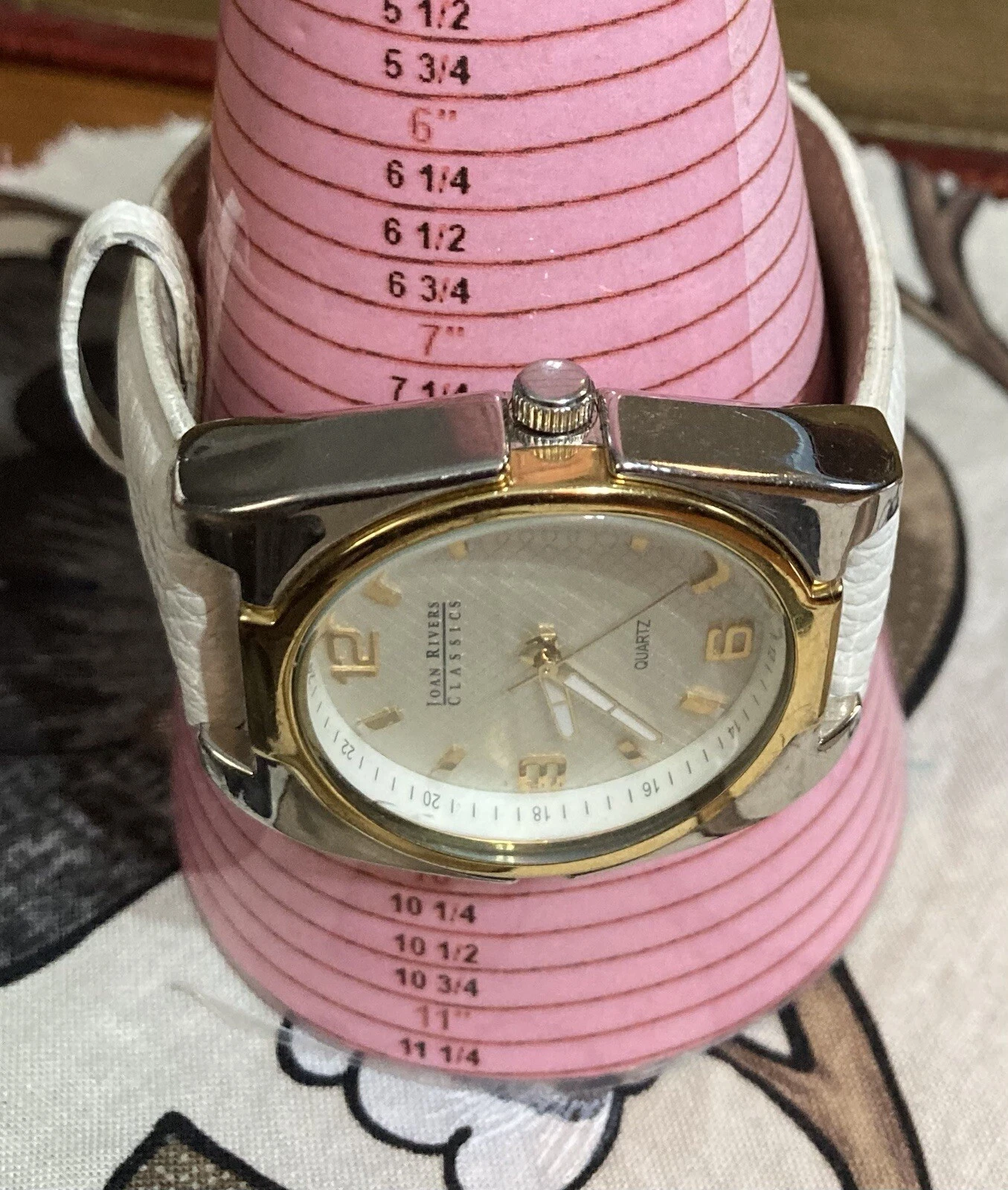 JOAN RIVERS V377 Classic Collection QUARTZ WATCH 2Tone Ivory Band 8” 40mm RUNS!