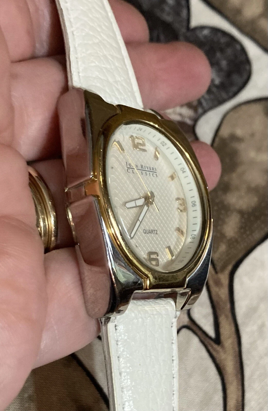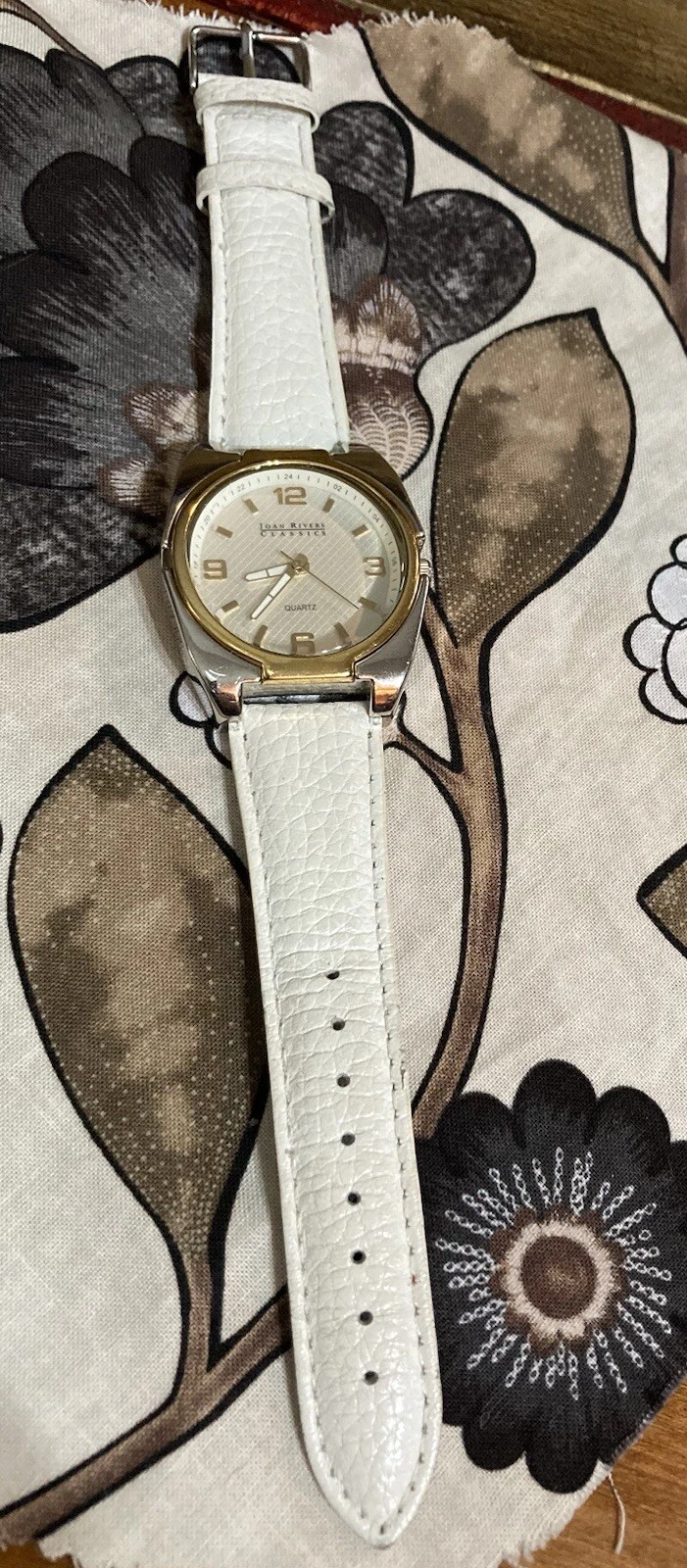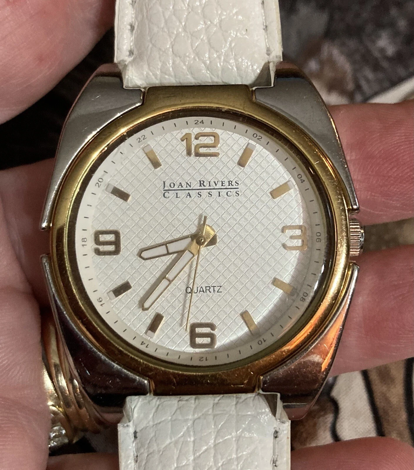 JOAN RIVERS V377 Classic Collection QUARTZ WATCH 2Tone Ivory Band 8” 40mm RUNS!