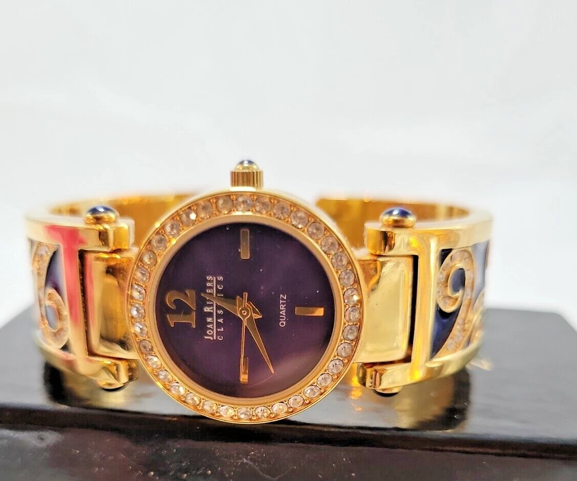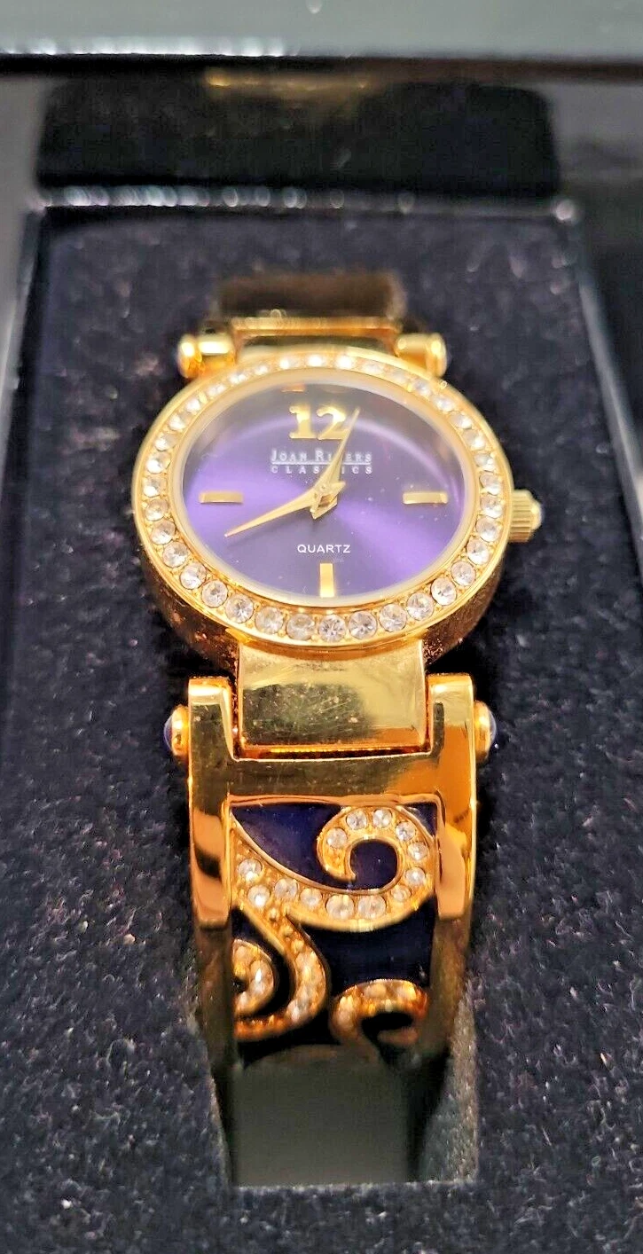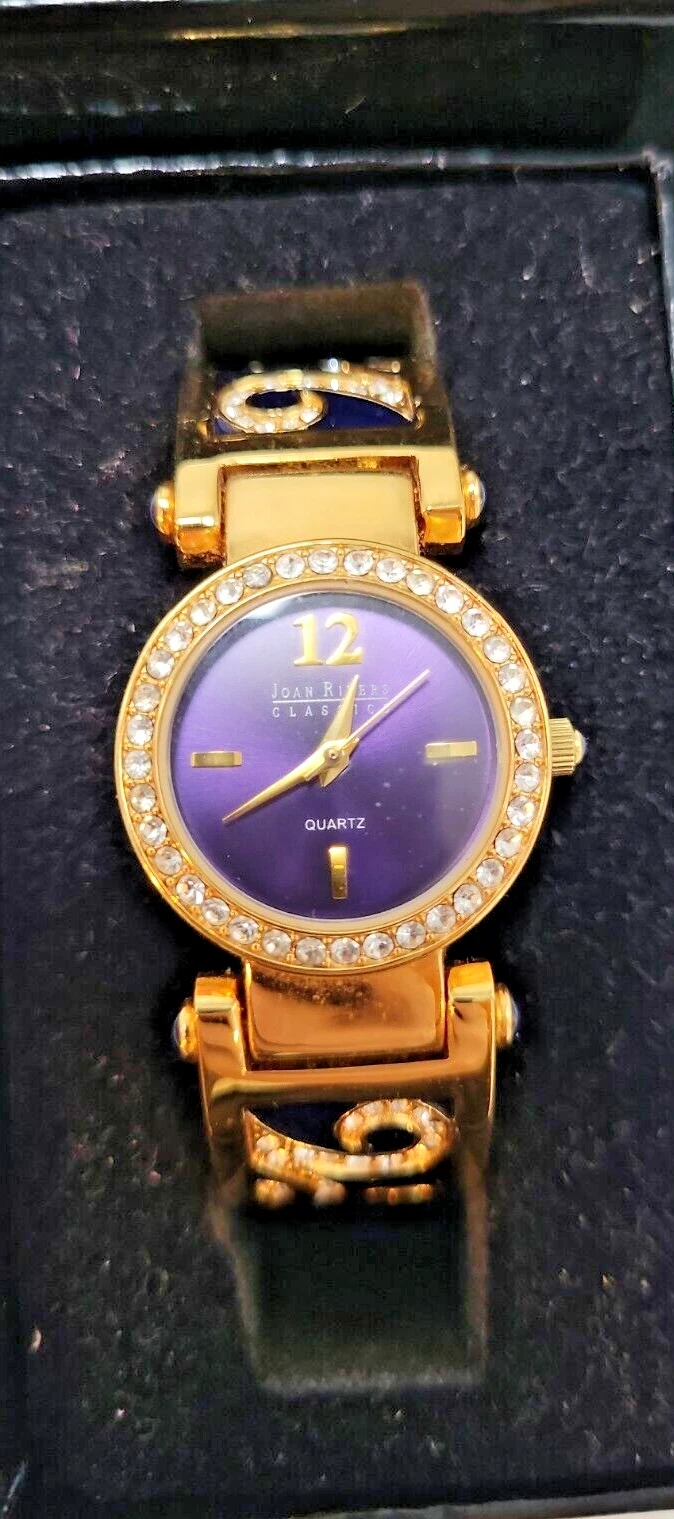 Vintage Joan Rivers Cuff Watch, Classics Collection new blue gold violet crystal