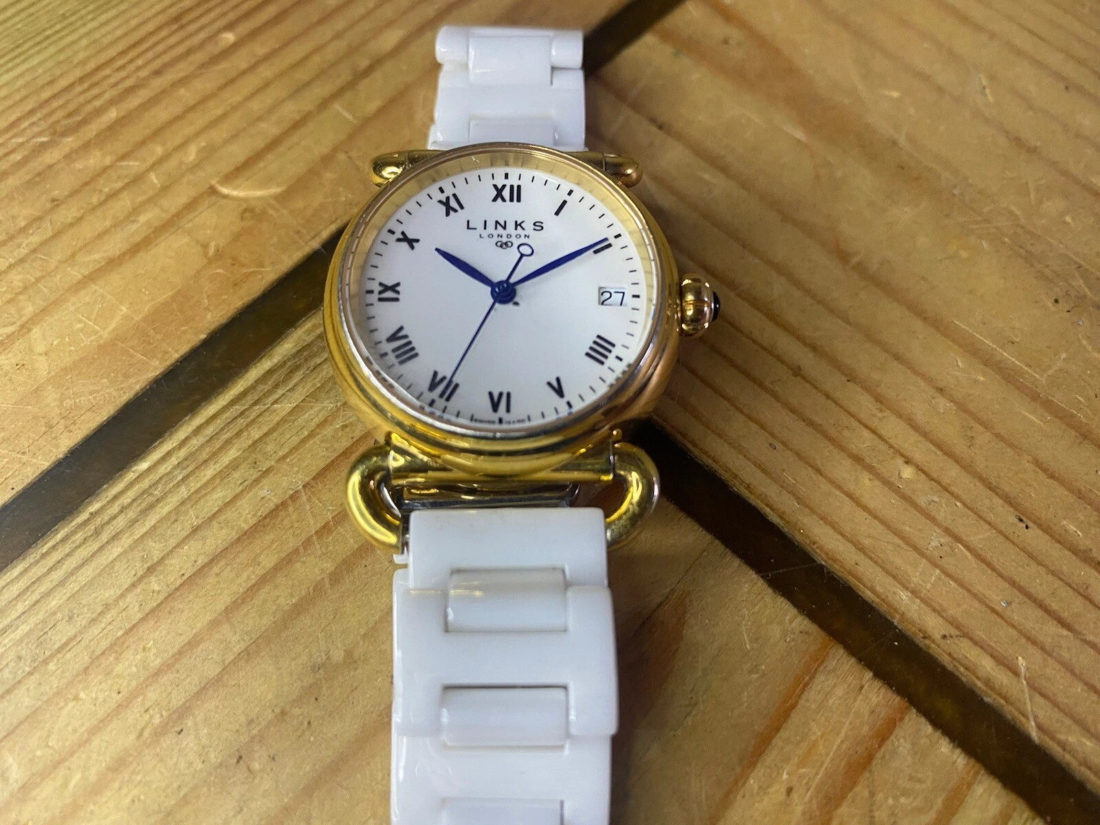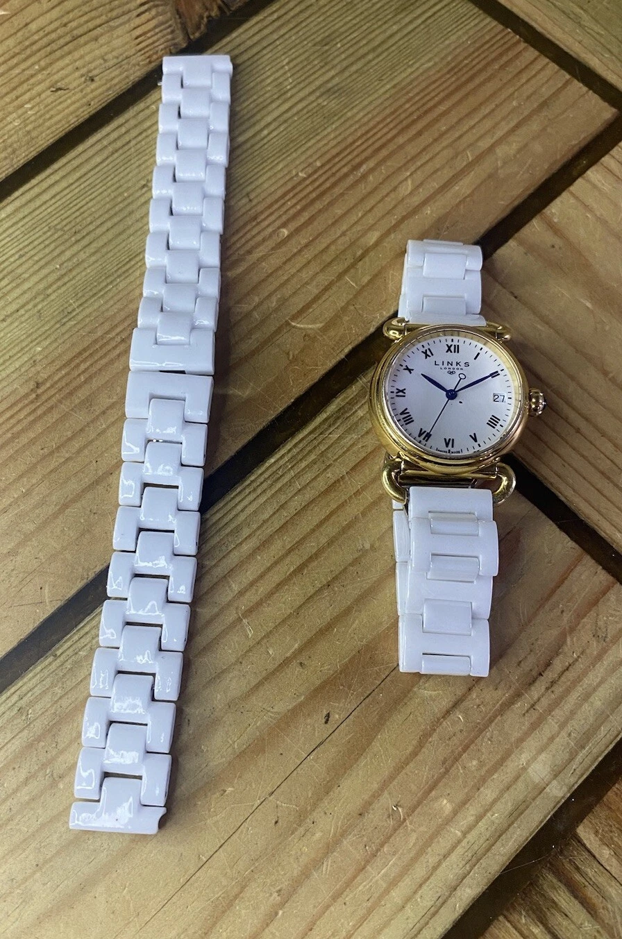 Ladies Genuine Links Of London Stainless Steel Gold Tone Watch White Metal Strap