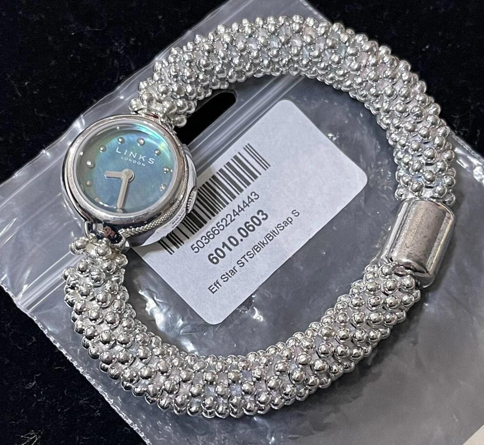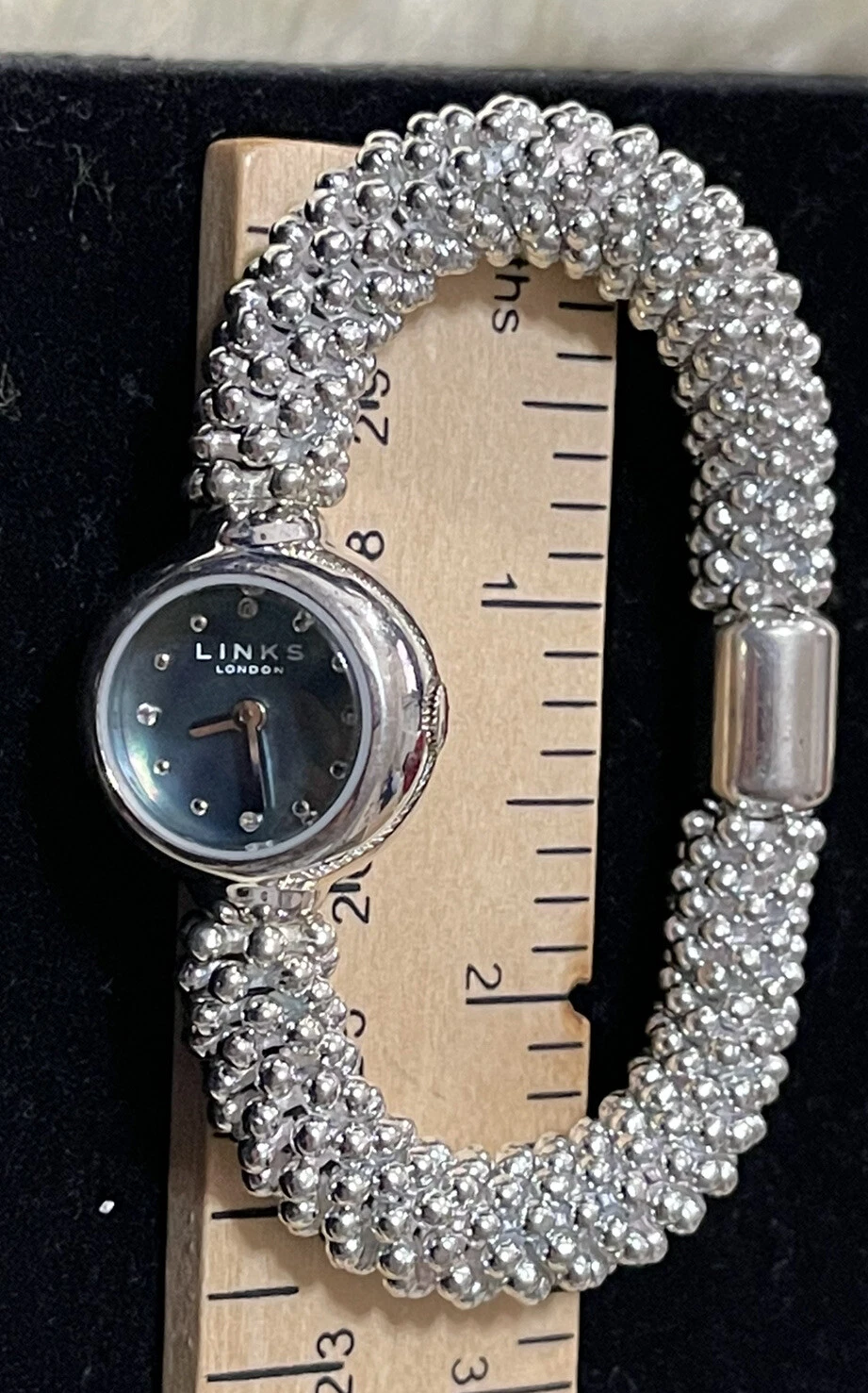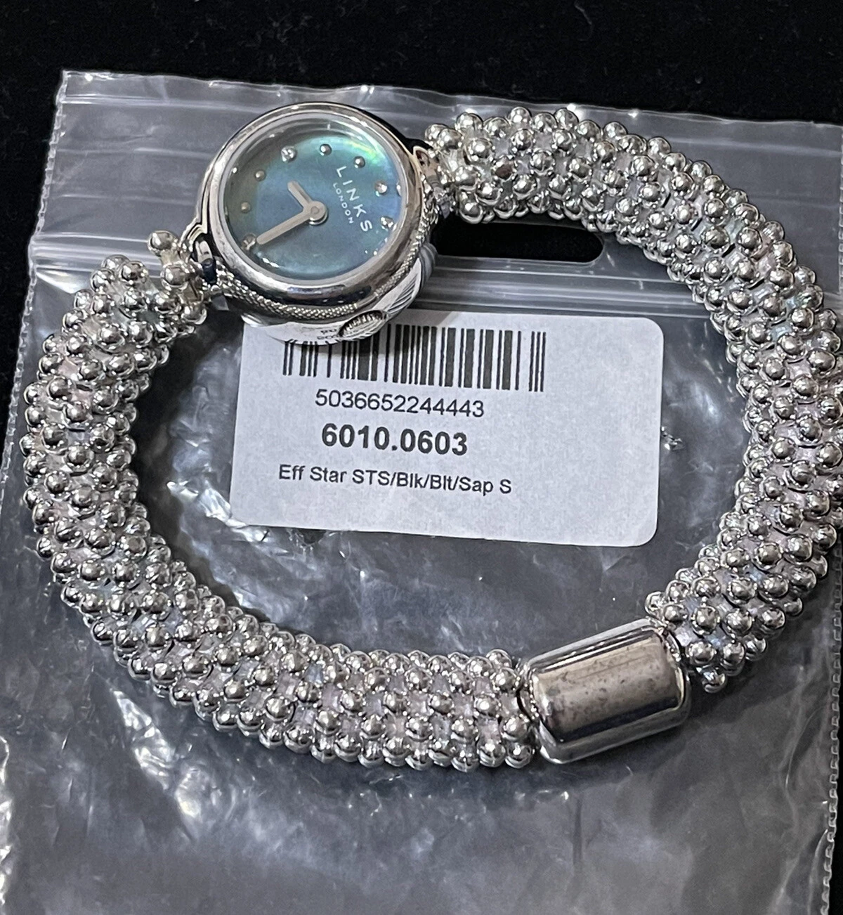 Genuine Links of London Effervescence Star Sapphire Silver  BLk Blt Men Watch S