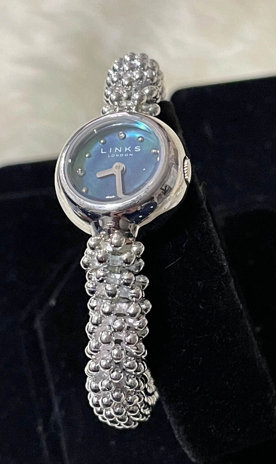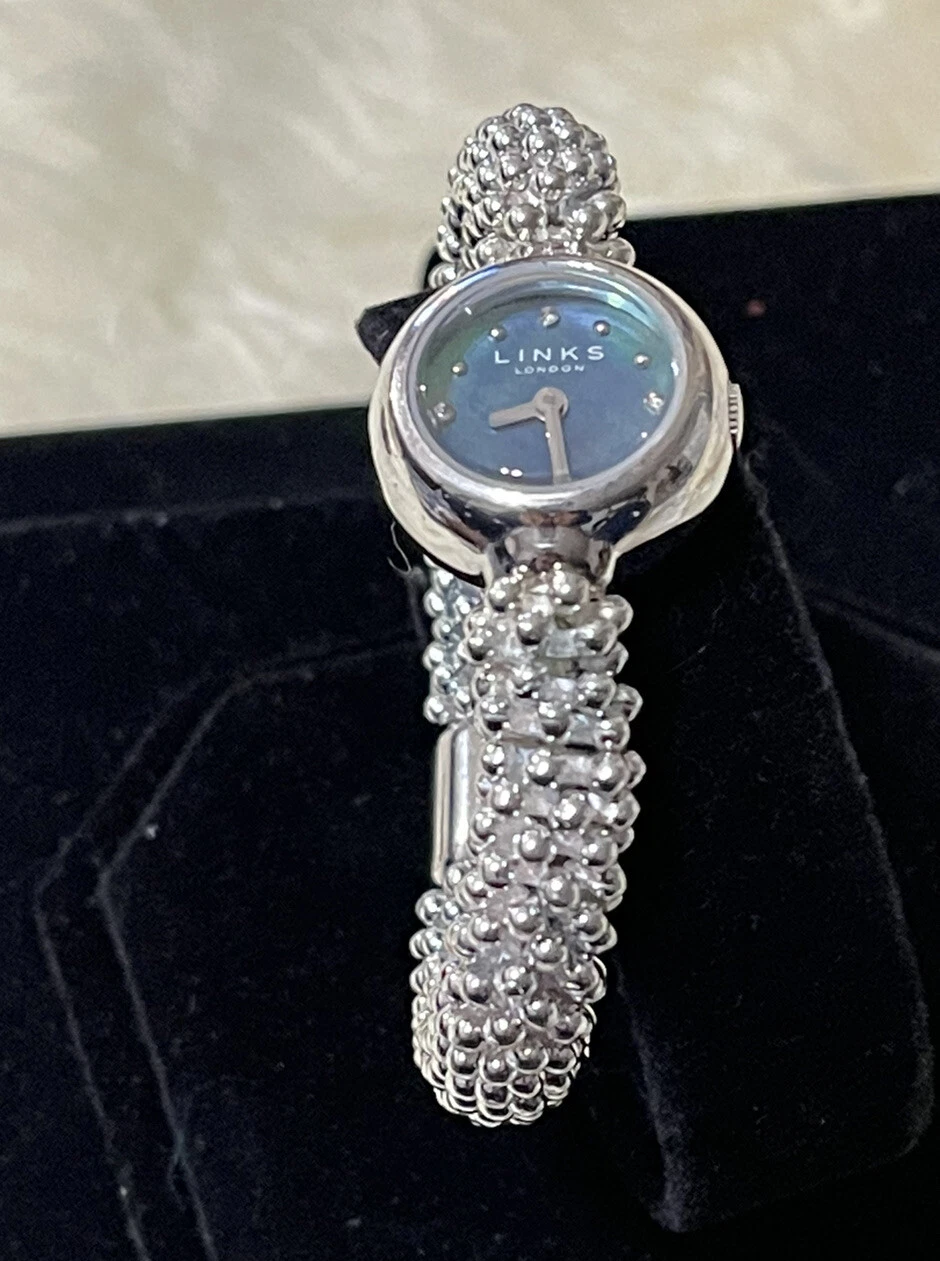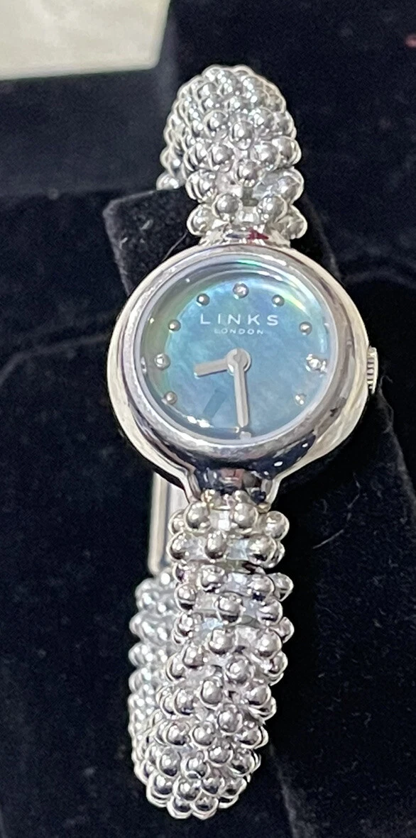 Genuine Links of London Effervescence Star Sapphire Silver  BLk Blt Men Watch S
